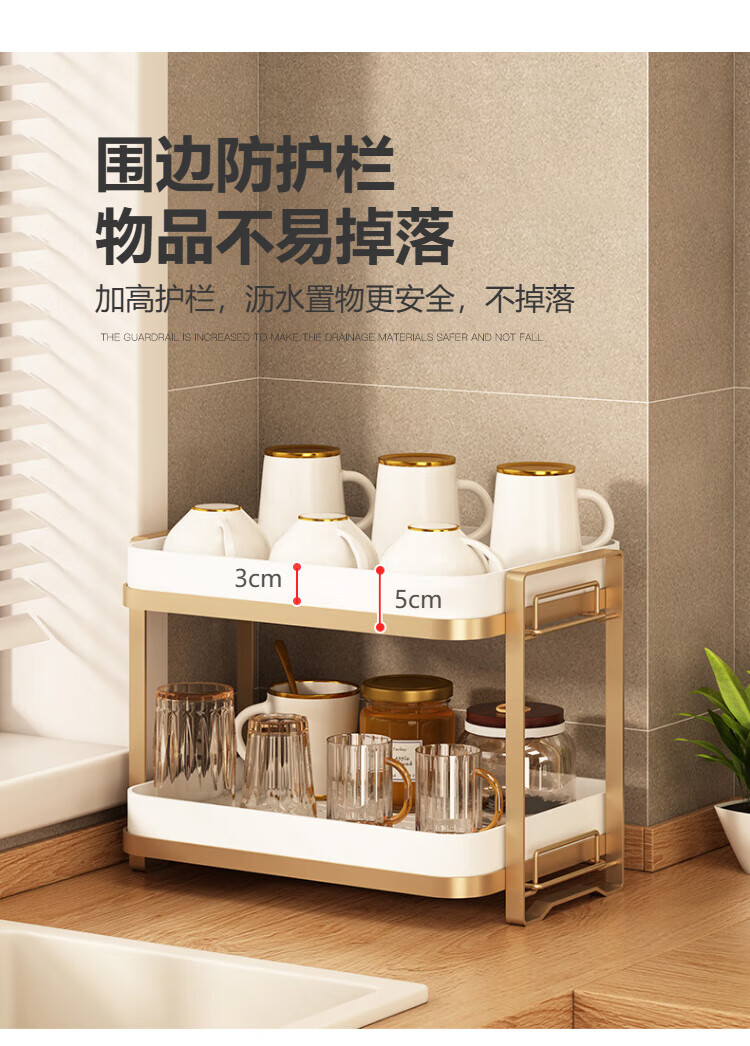 Yupin kitchen rack drain cup rack storage rack living room glass tea cup drain tray ZW107 double layer