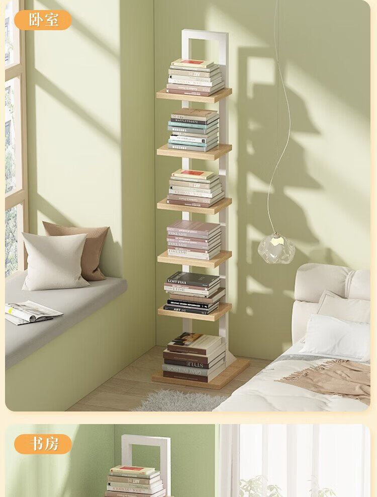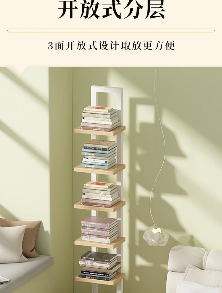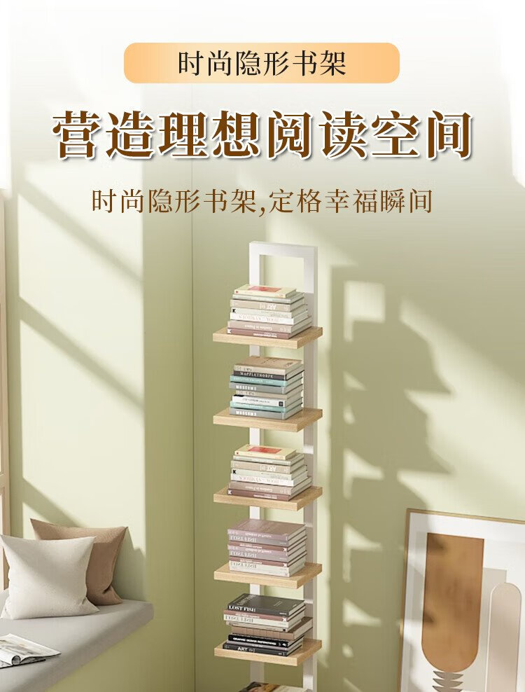 Anya invisible bookshelf floor-to-ceiling wall-mounted living room corner shelf sandwich small narrow book storage rack 6 layers