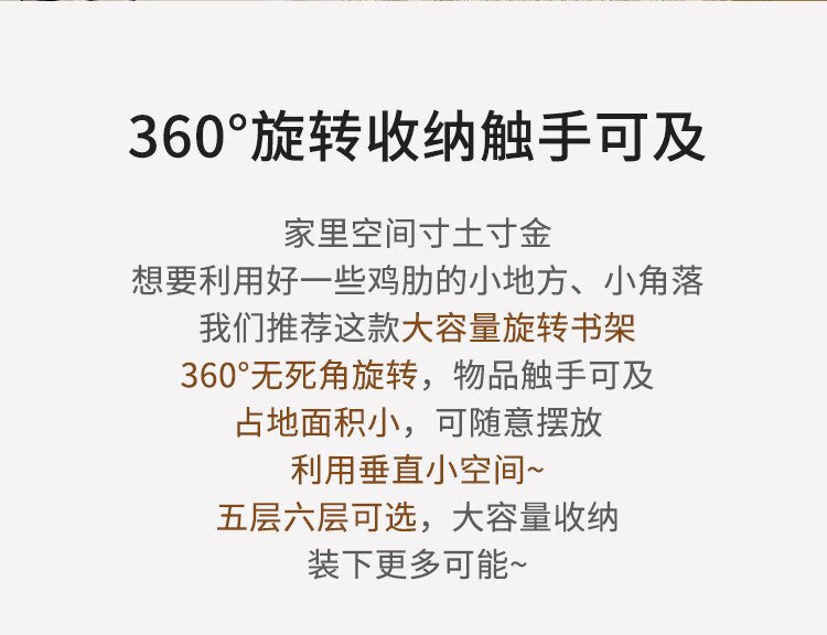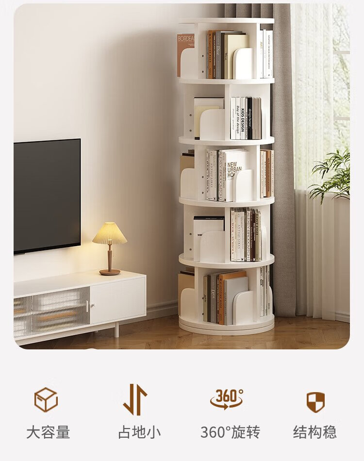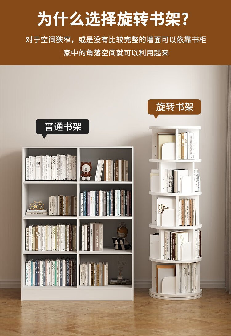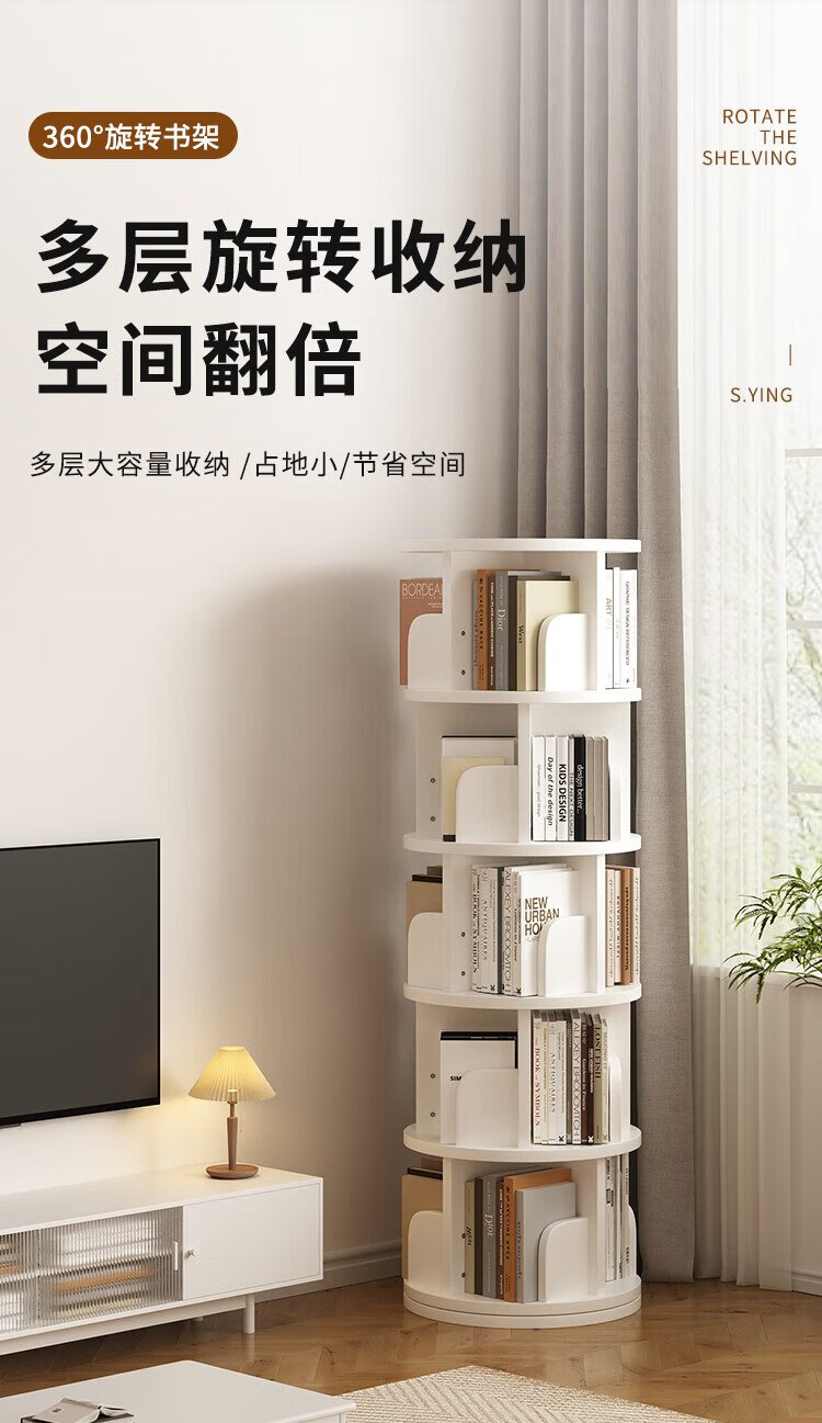 Xiaojiangcai bookshelf 360-degree rotating floor-standing vertical simple bookcase integrated home living room storage multi-layer storage rack 5 layers