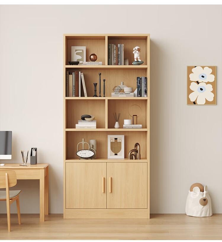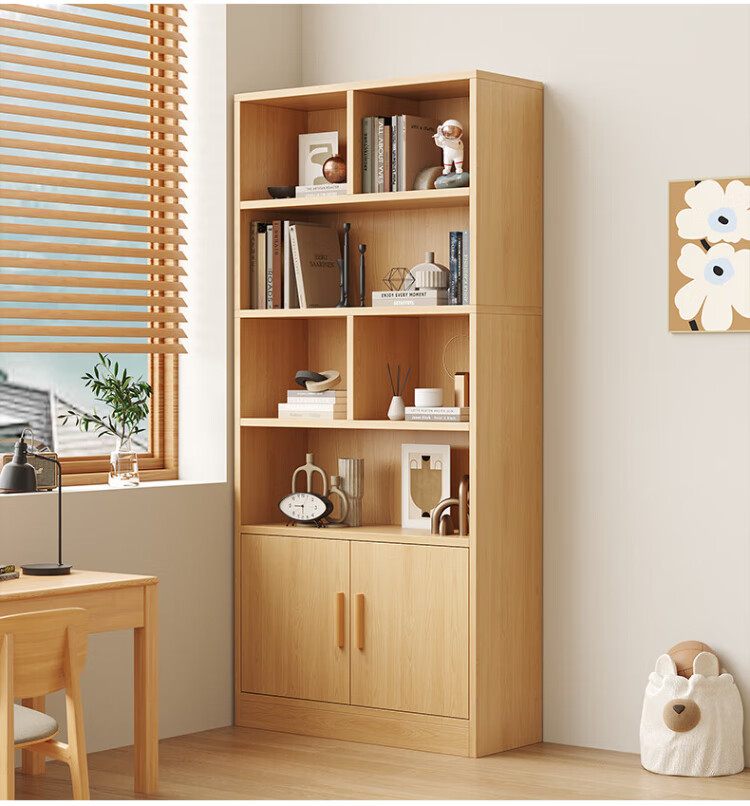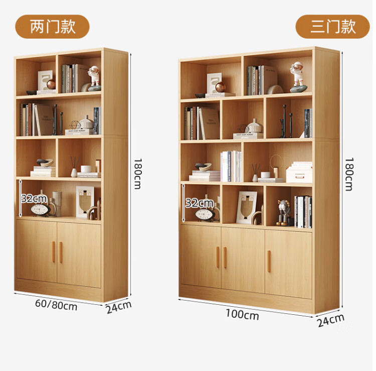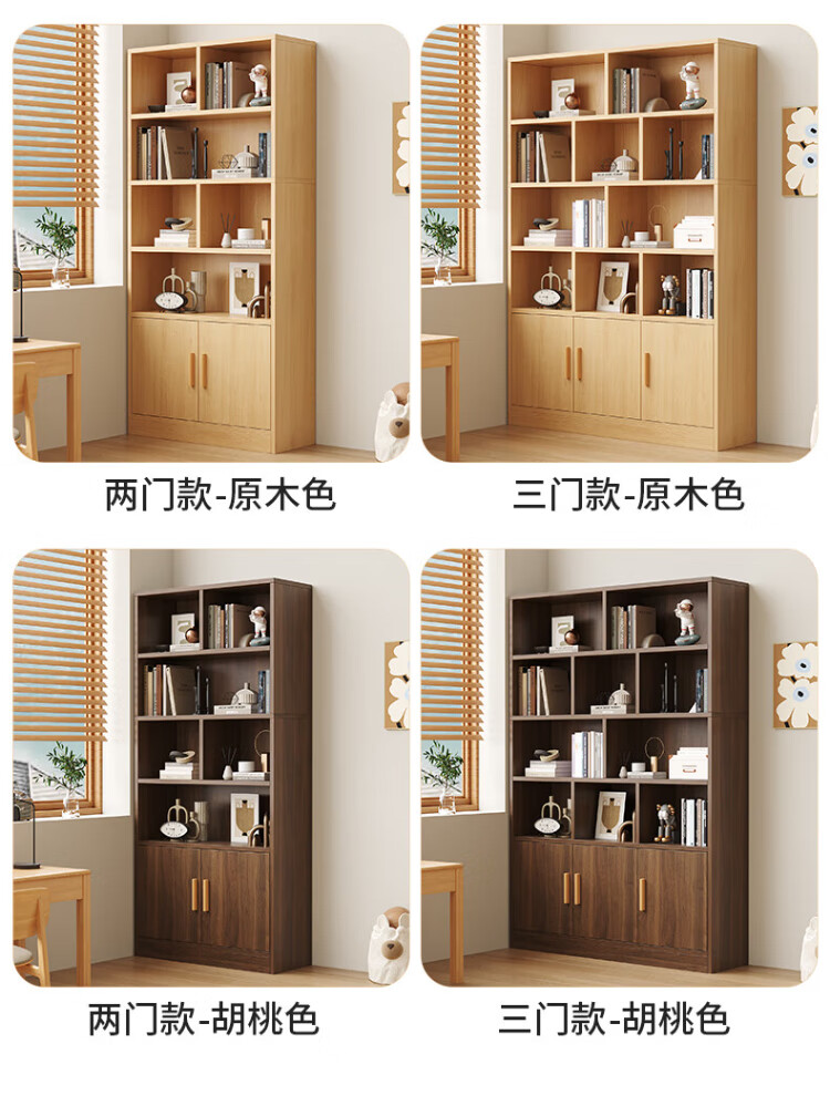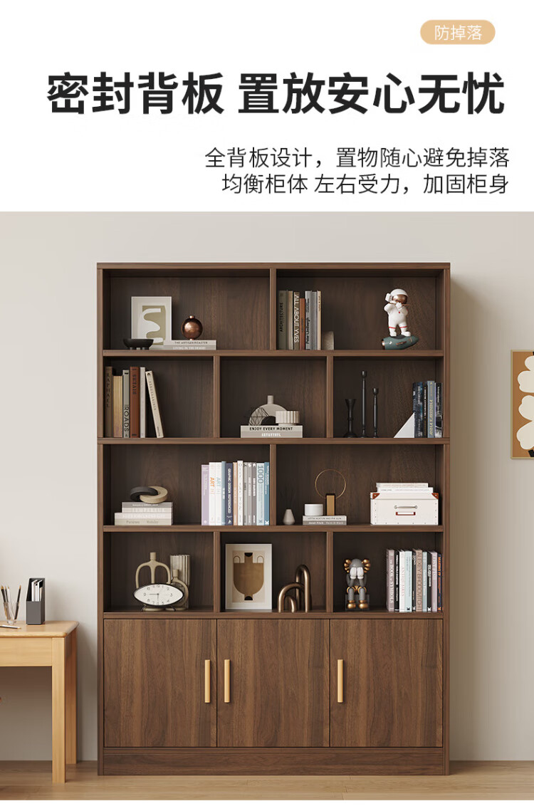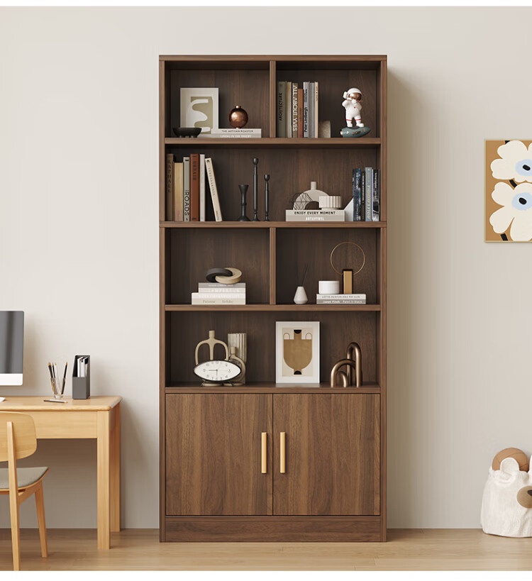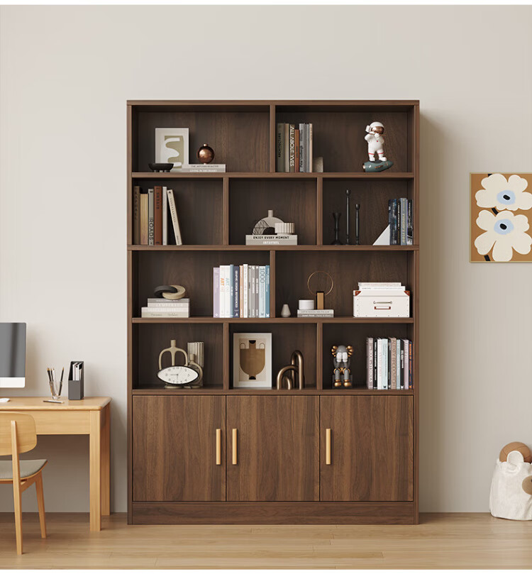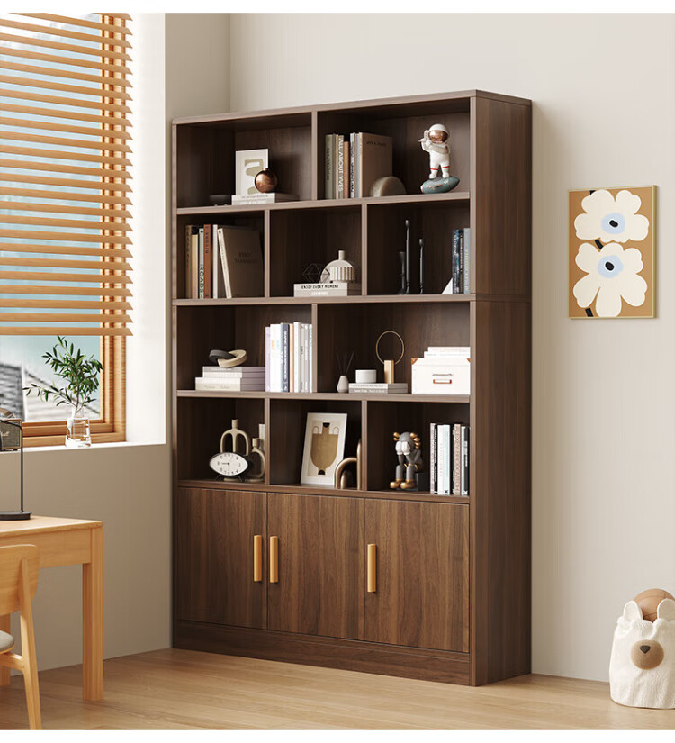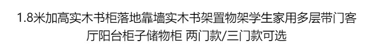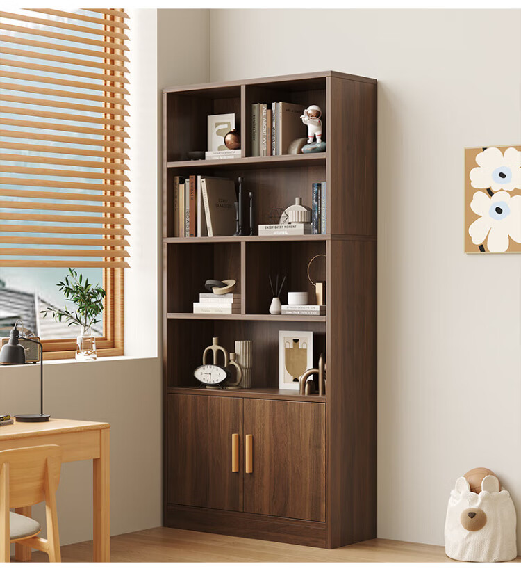 KULIN solid wood bookshelf bookcase floor-standing wall storage rack home living room with door 1.8 meters cabinet dark walnut color 100cm