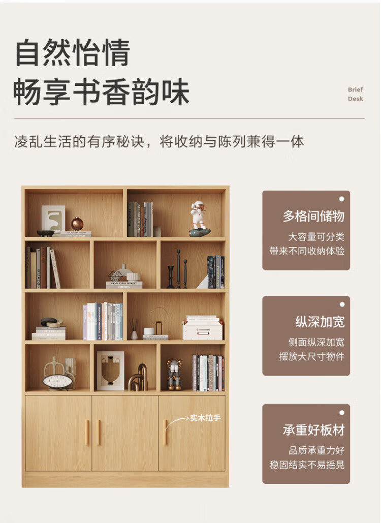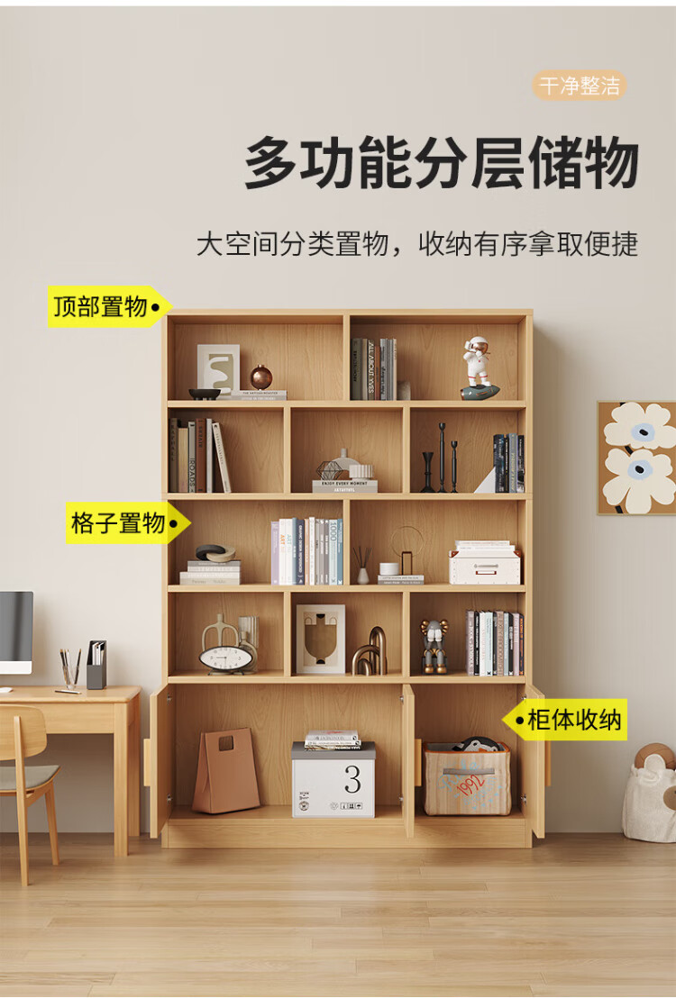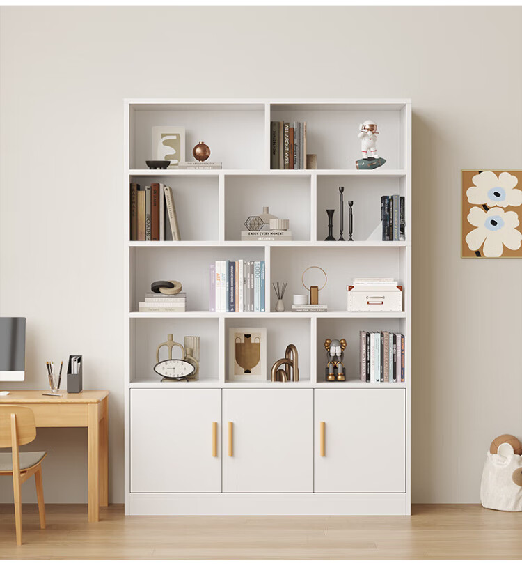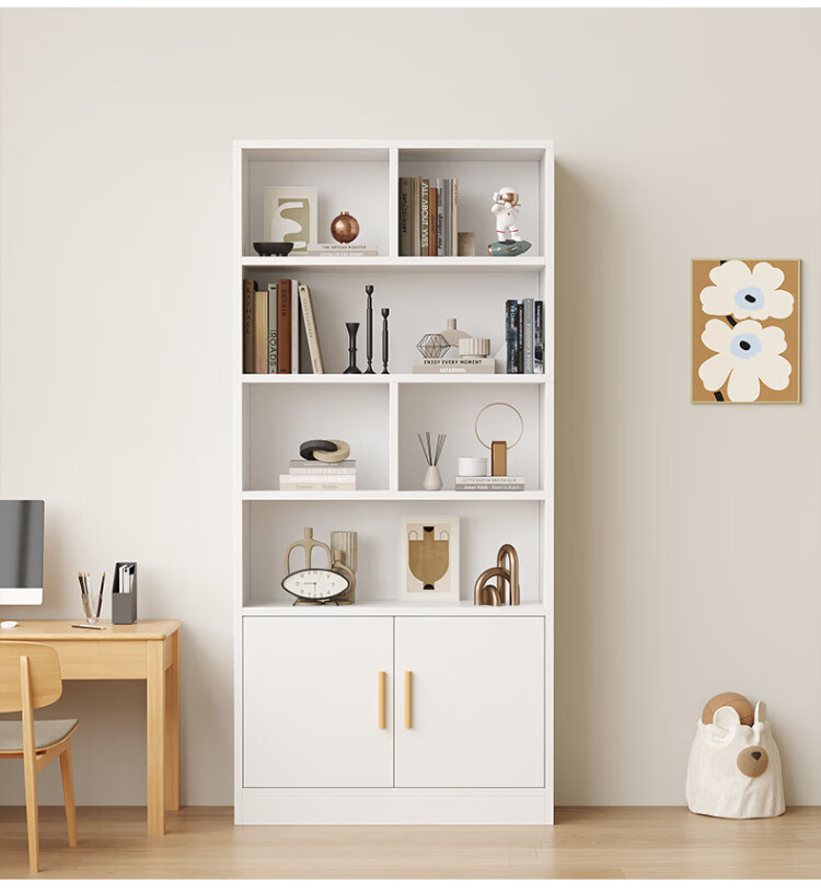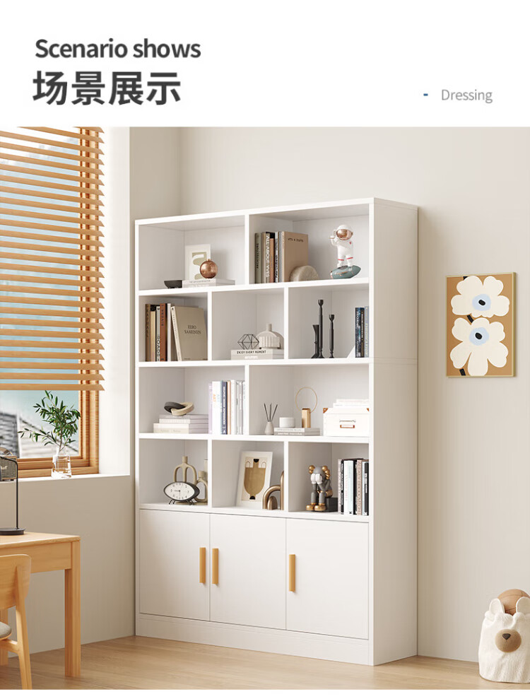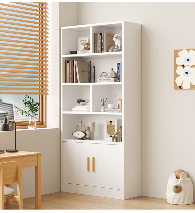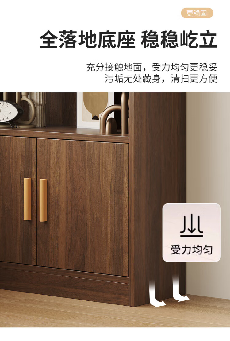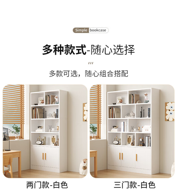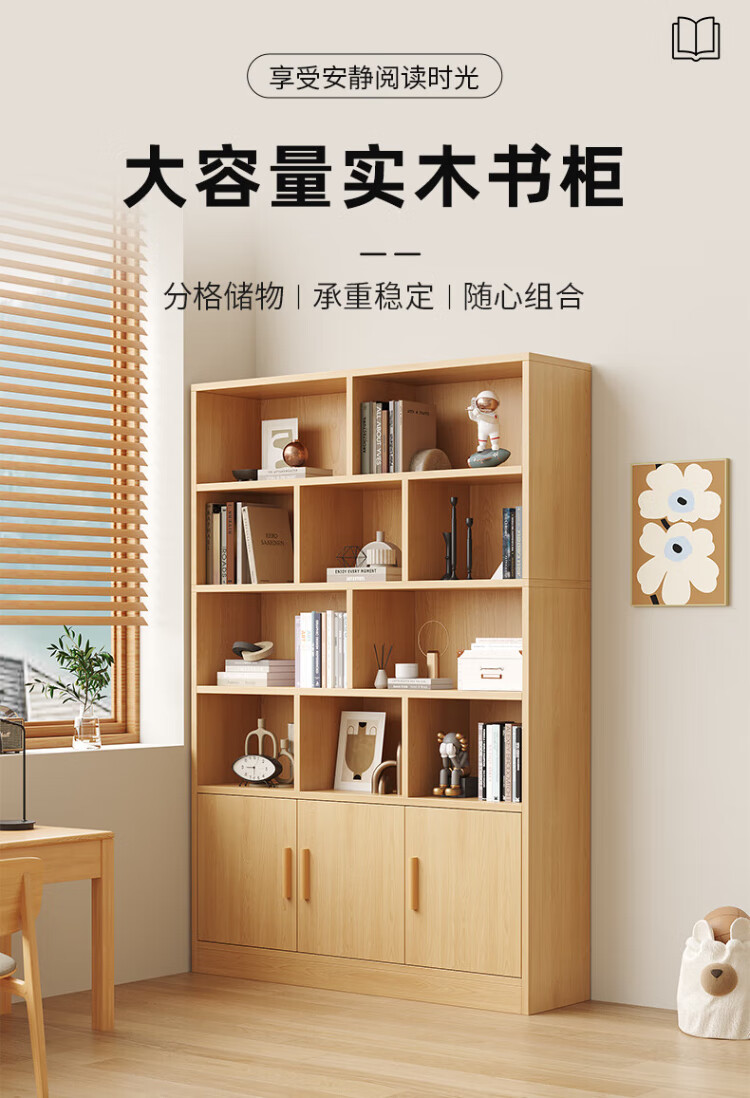 KULIN solid wood bookshelf bookcase floor-standing wall storage rack home living room with door 1.8 meters cabinet dark walnut color 100cm