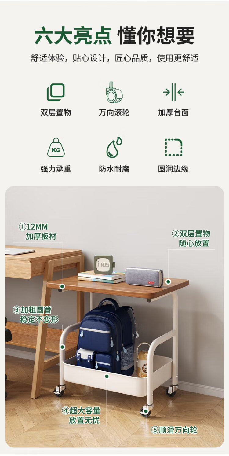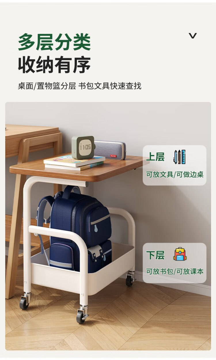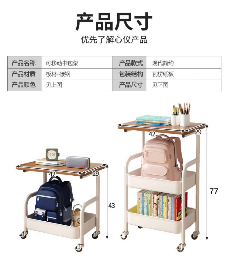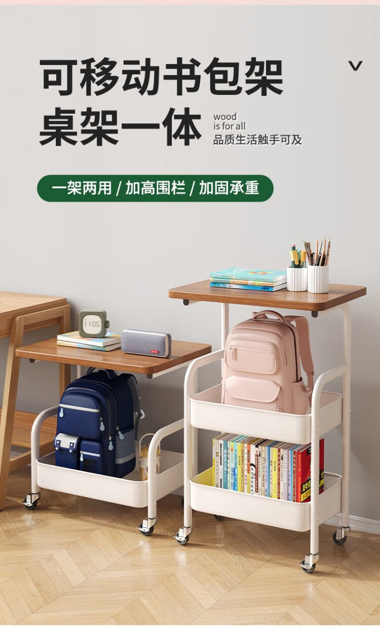 Shanshan Wood Art Mobile Bookshelf School Bag Storage Rack Under Desk Storage Rack Home Toy Trolley Office Bag Rack