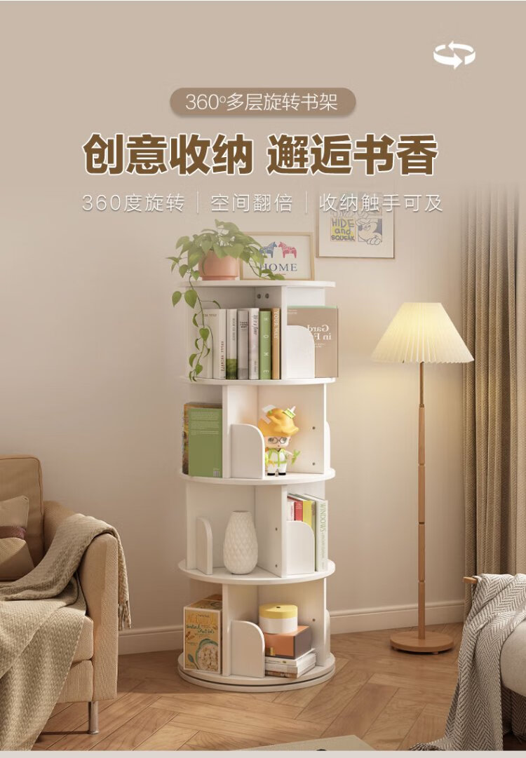 Quanpinwu rotating bookshelf floor-to-ceiling all-in-one wall storage rack simple storage children's living room picture book cabinet