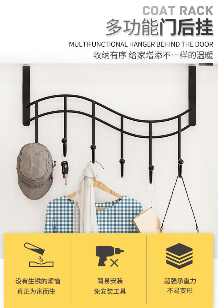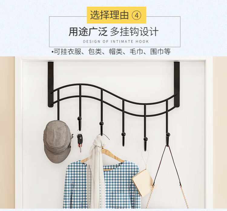 Hook behind the home door without punching holes on the door clothes rack storage rack clothes hook bedroom kitchen wall storage rack clothes hook