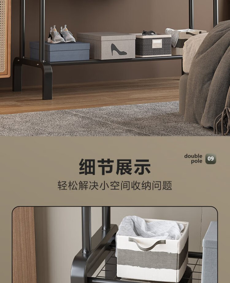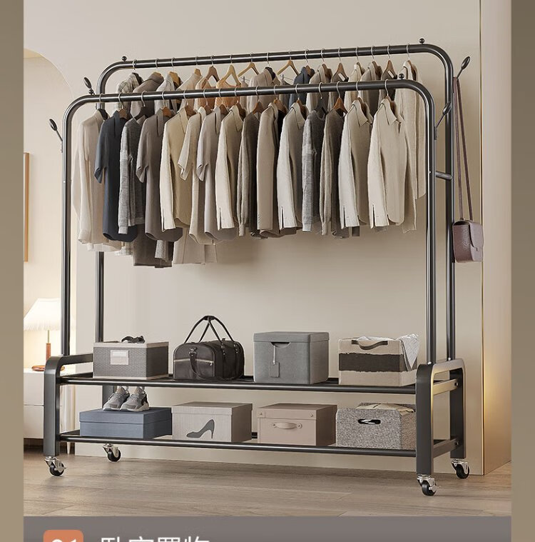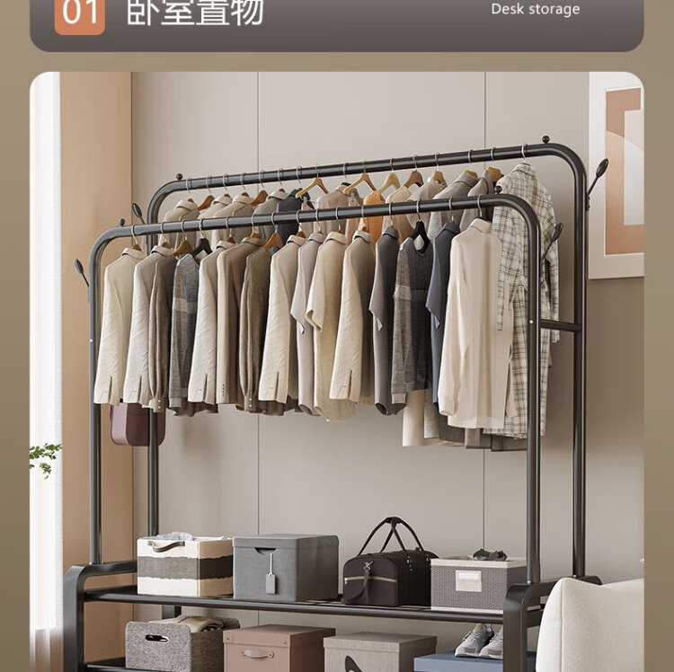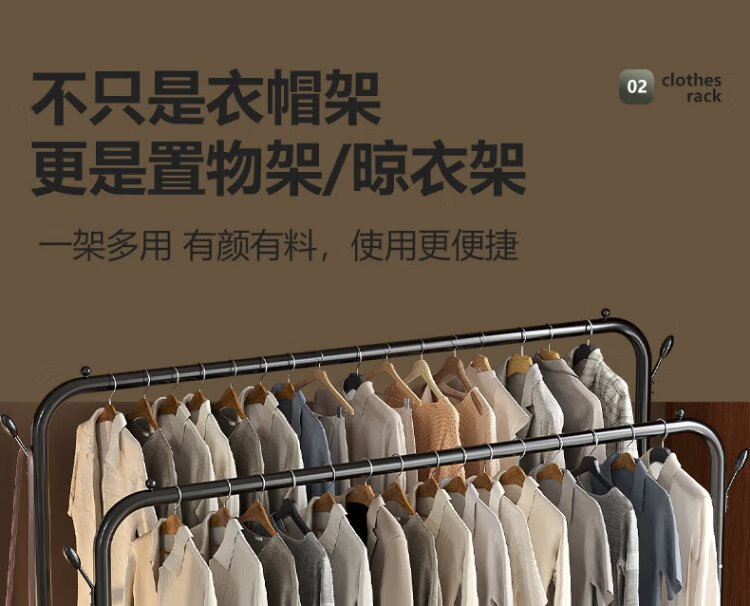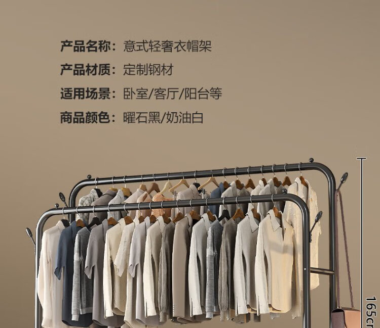 Yimo coat rack, floor-standing vertical dormitory clothes rack, bedroom-specific balcony clothes drying rack, seven-hook black