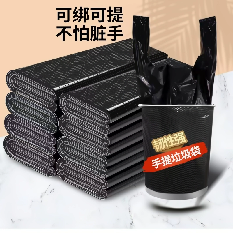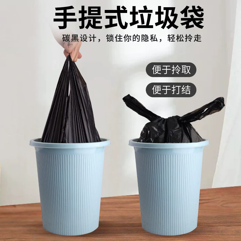 Garbage bag household portable thickened large black kitchen plastic bag affordable rack accessories Portable garbage bag-46*60-20 pieces/roll-black 3 rolls