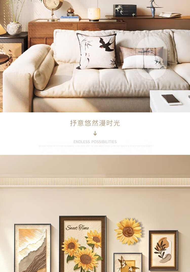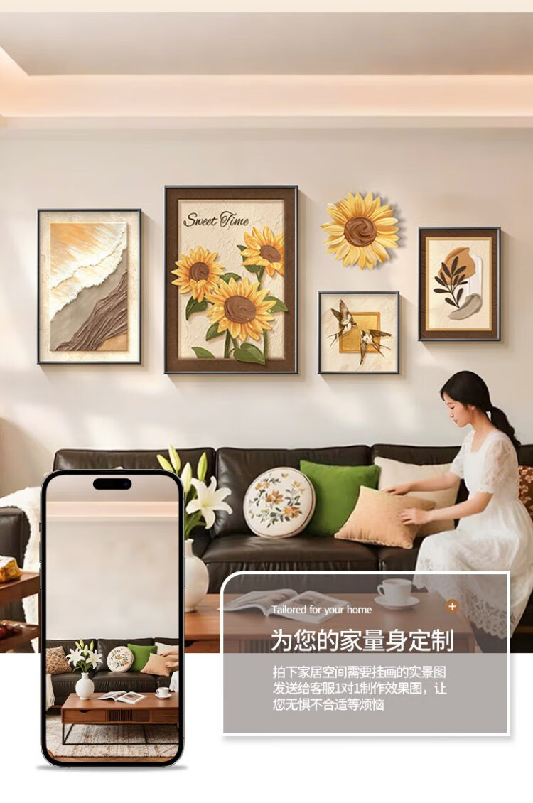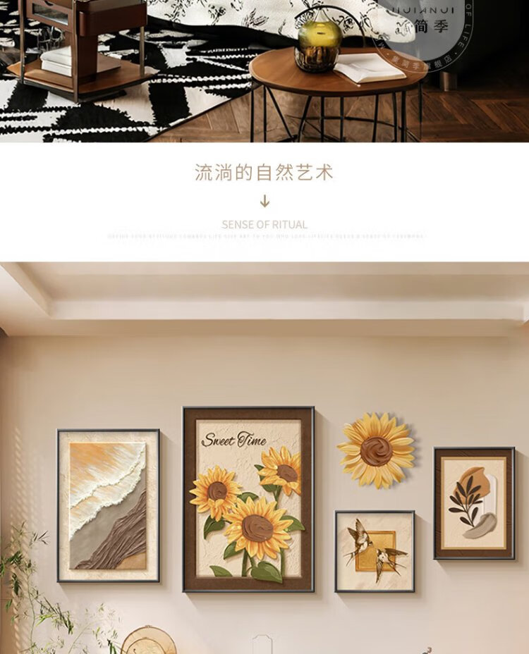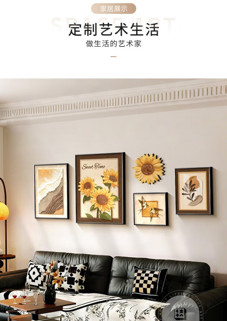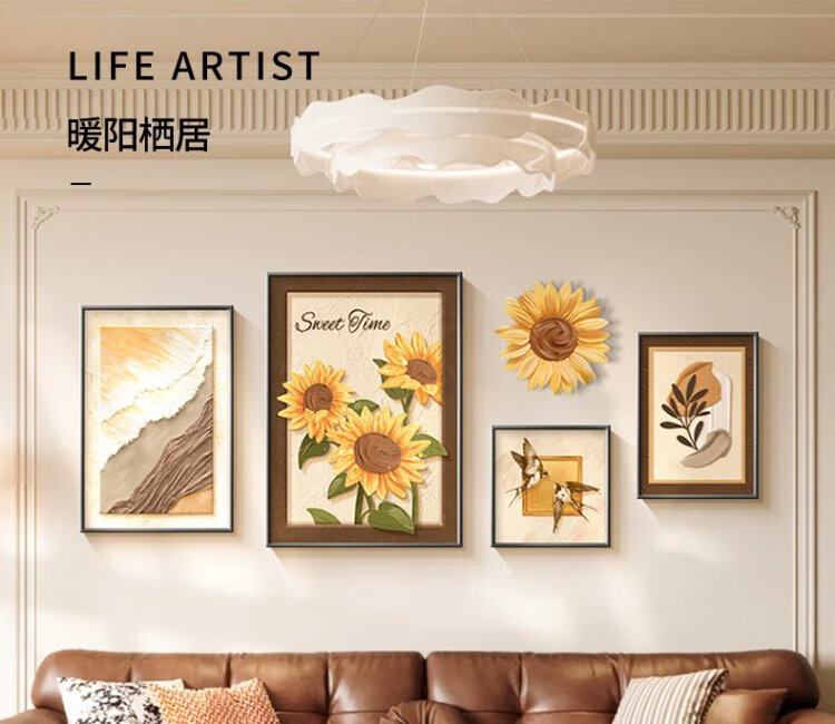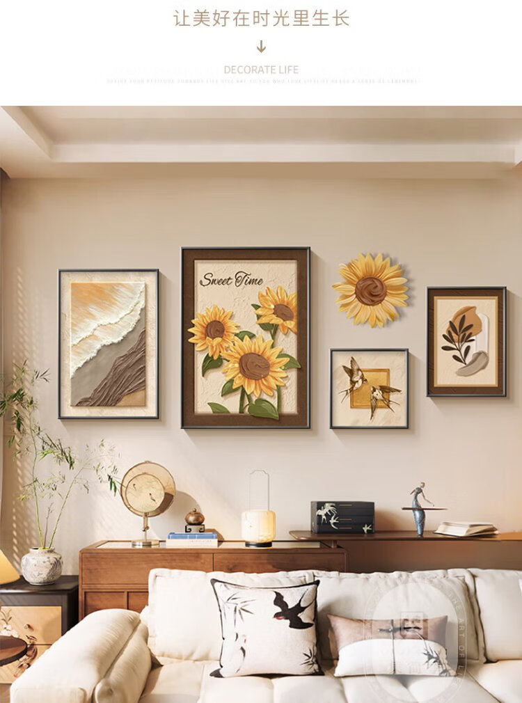 Collection of mid-season antique living room decoration paintings 2025 new sofa background wall hanging paintings French retro sunflower combination mural