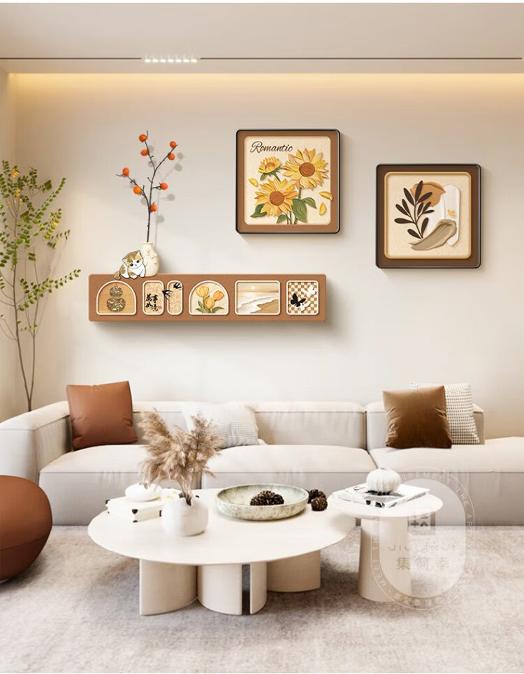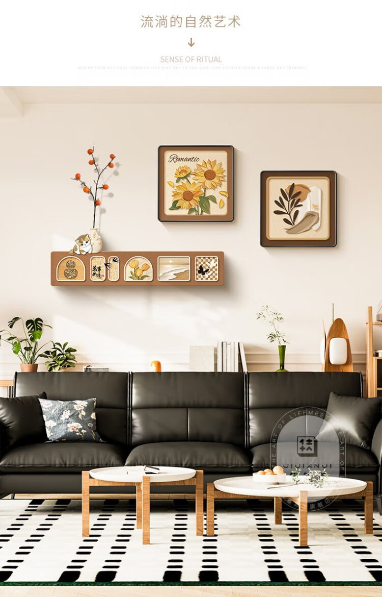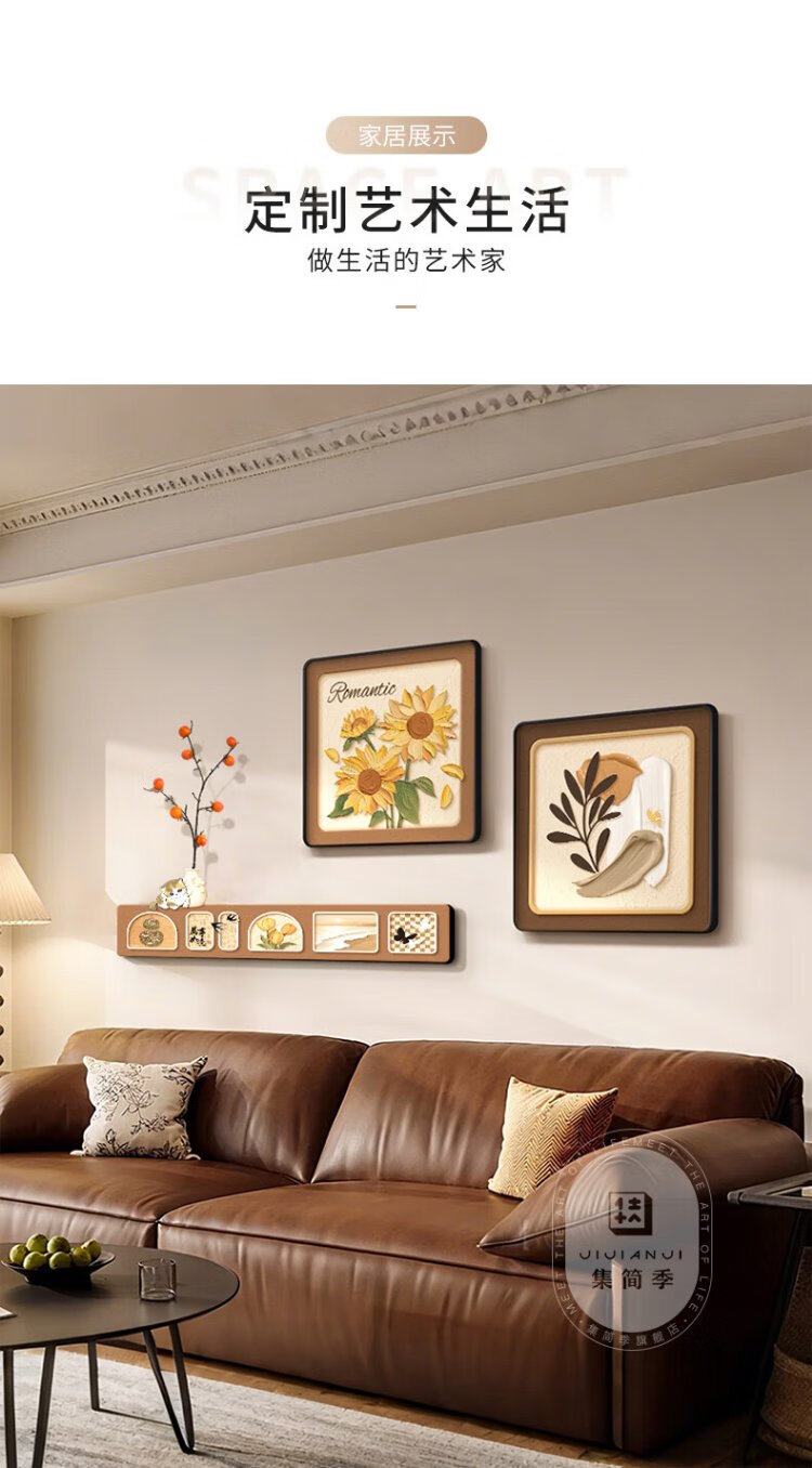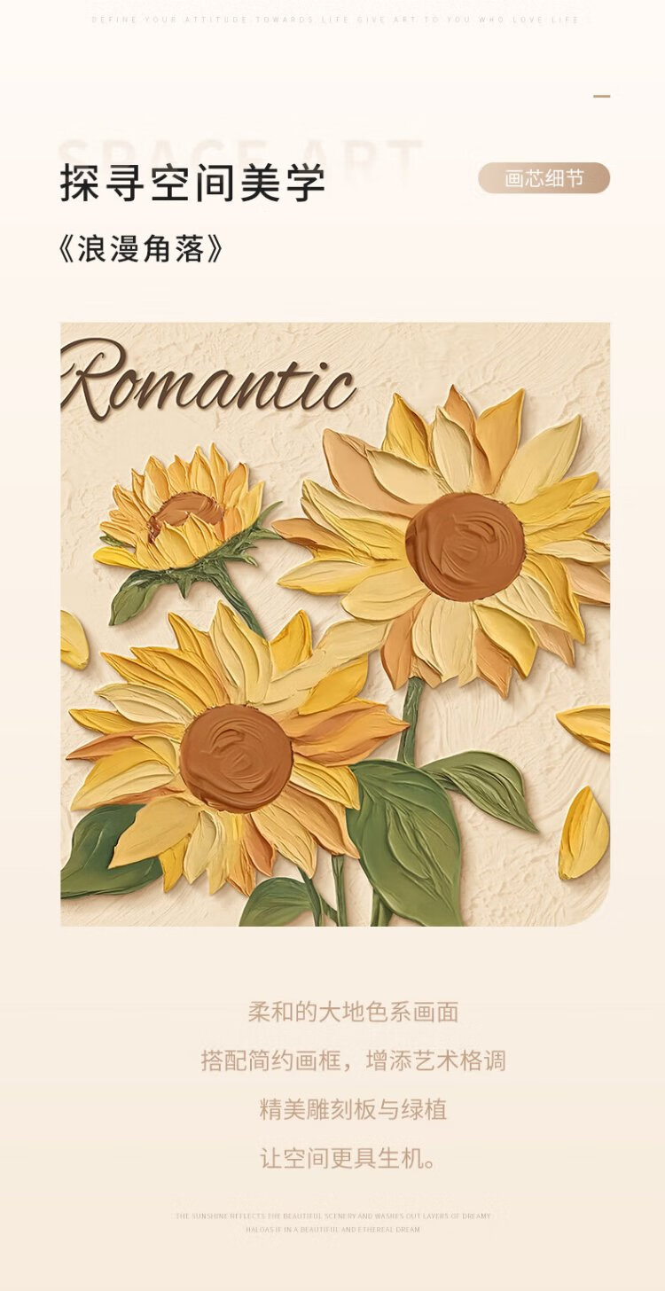 Ji Jian Ji Sunflower living room decoration painting cream style sofa background wall high-end mural restaurant dining room large white wall hanging painting