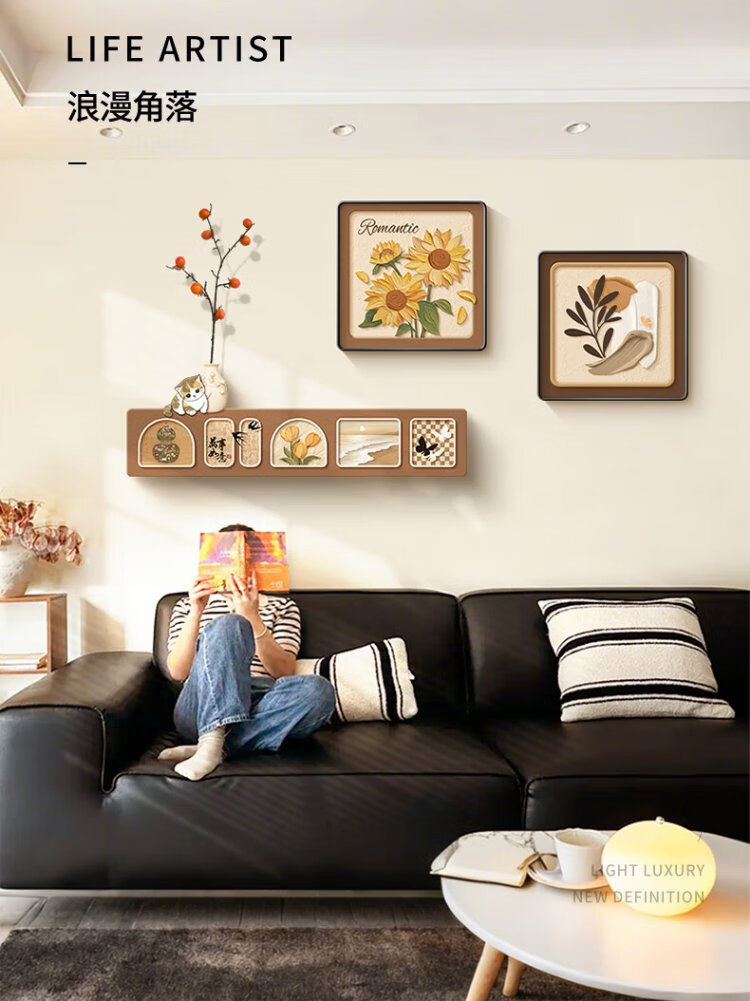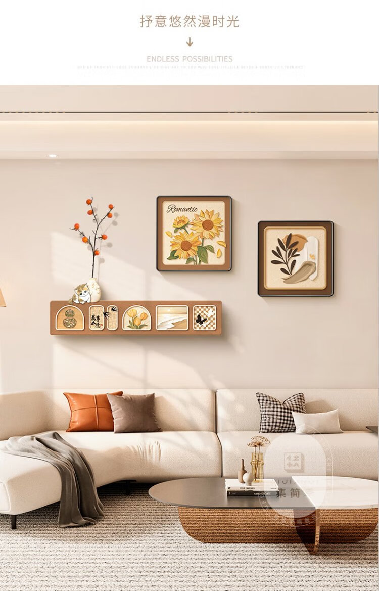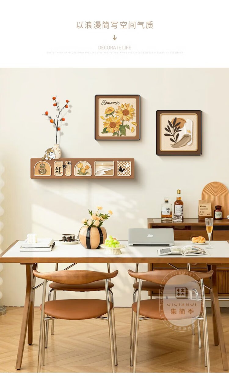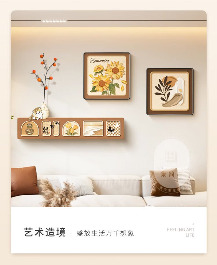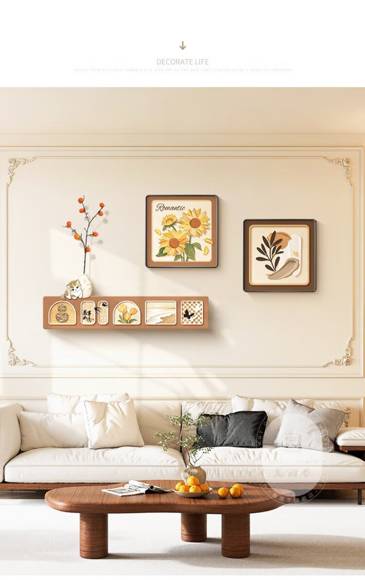 Ji Jian Ji Sunflower living room decoration painting cream style sofa background wall high-end mural restaurant dining room large white wall hanging painting