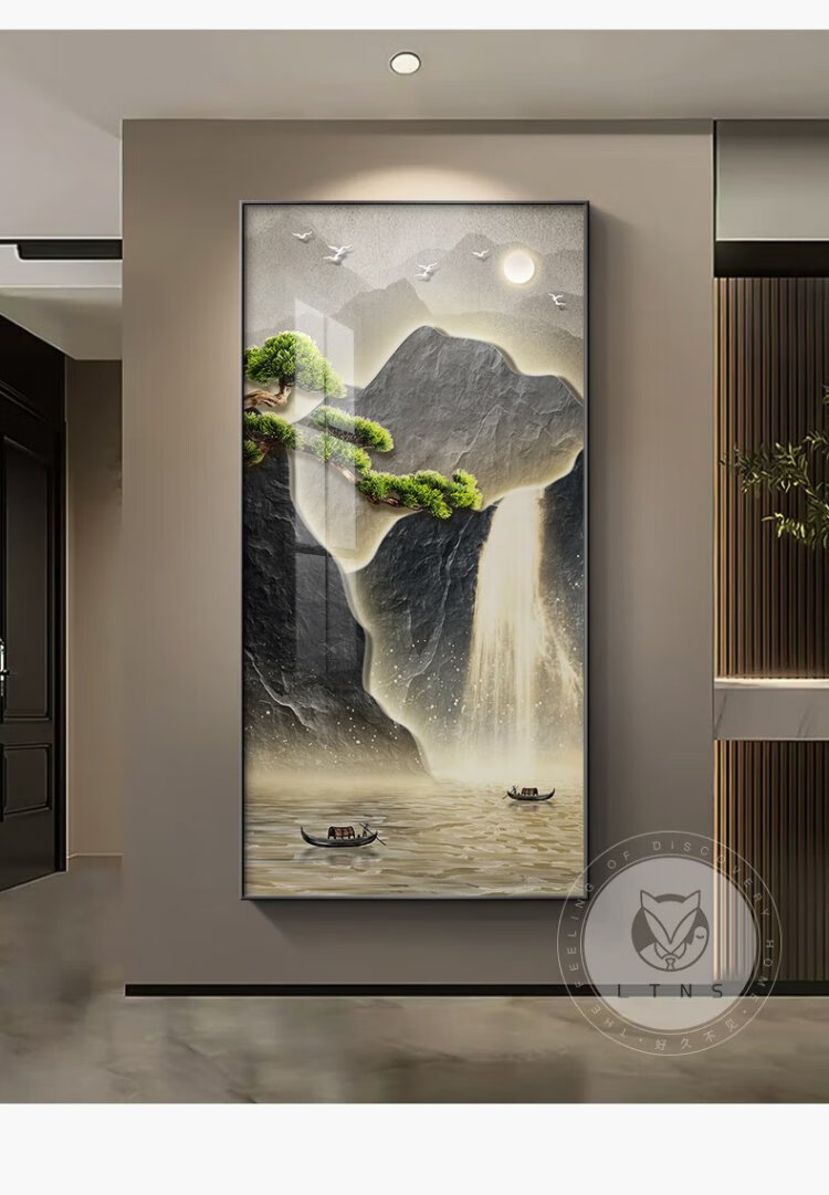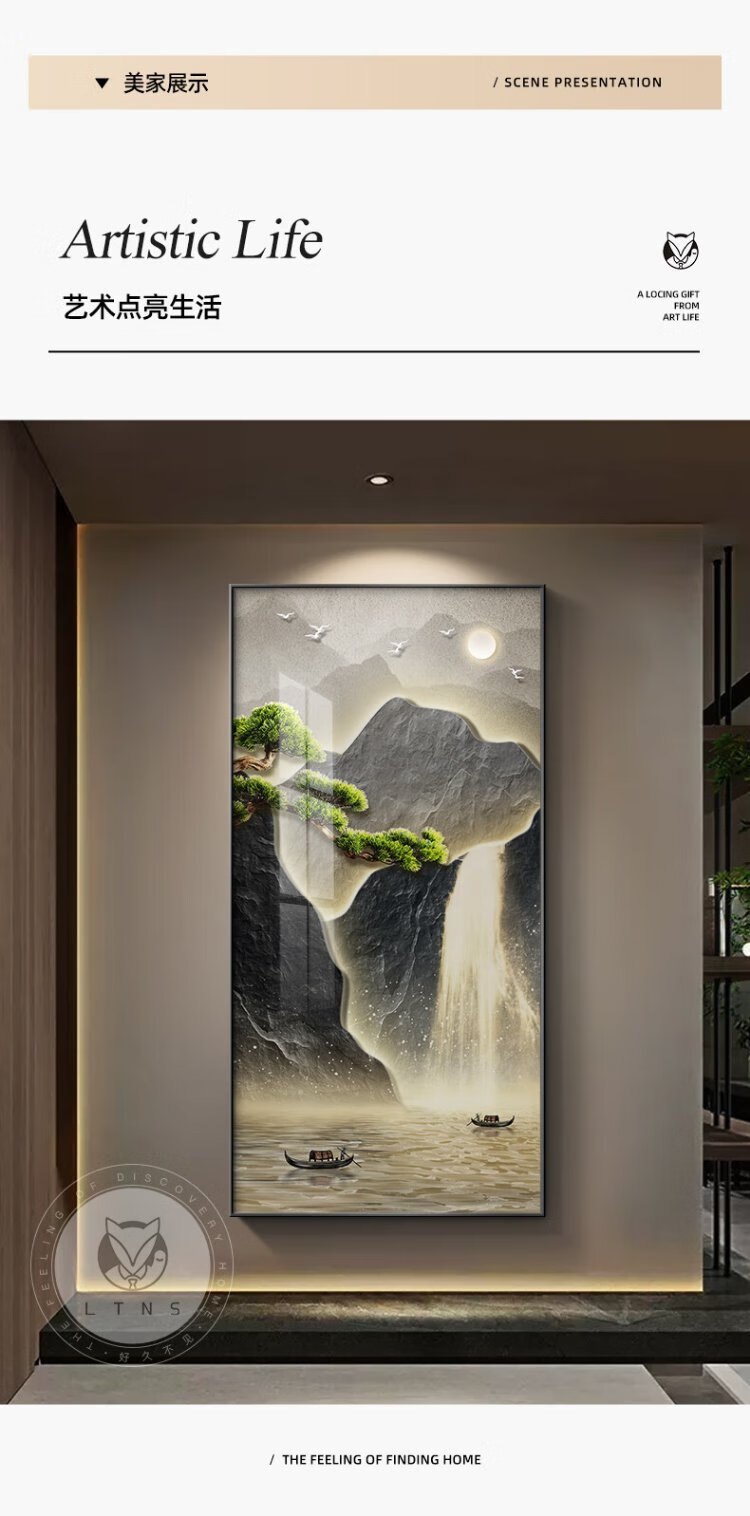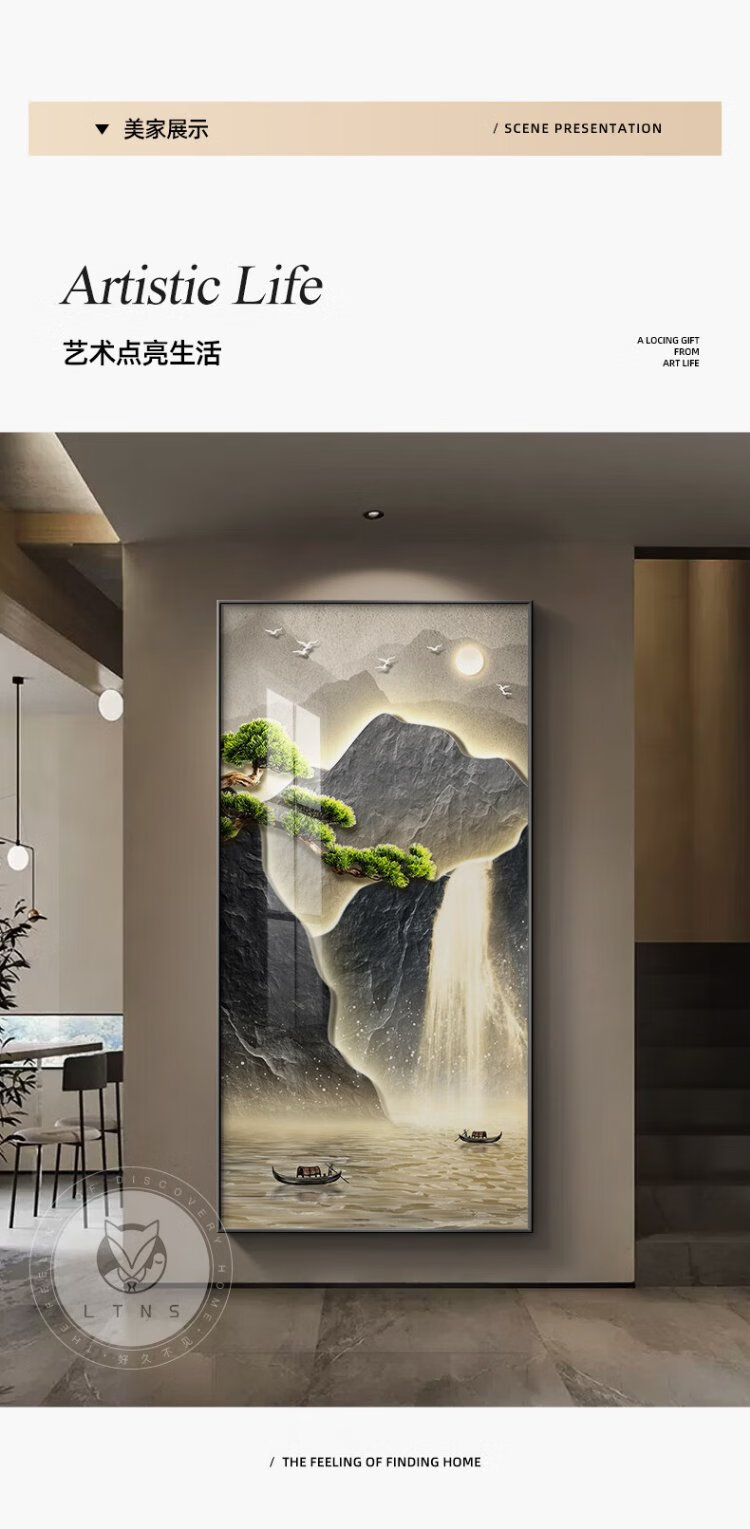 Long time no see. Entrance entrance decorative painting, new Chinese landscape painting, modern light luxury, high-end corridor and aisle hanging painting, opposite door mural.