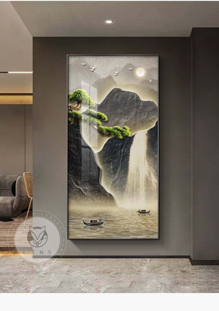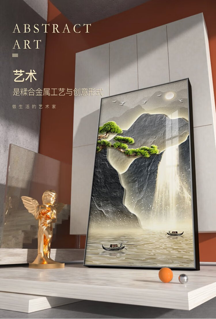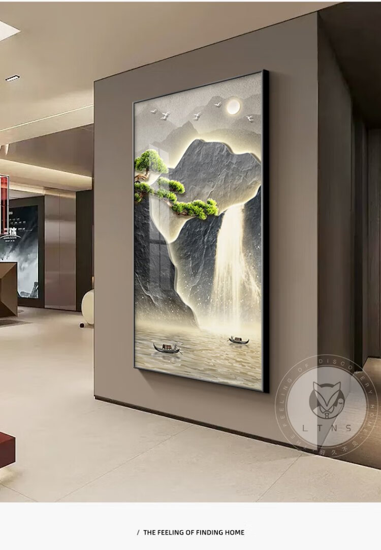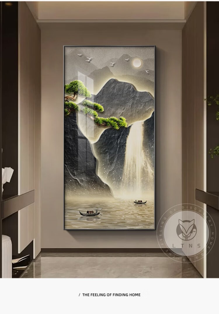 Long time no see. Entrance entrance decorative painting, new Chinese landscape painting, modern light luxury, high-end corridor and aisle hanging painting, opposite door mural.