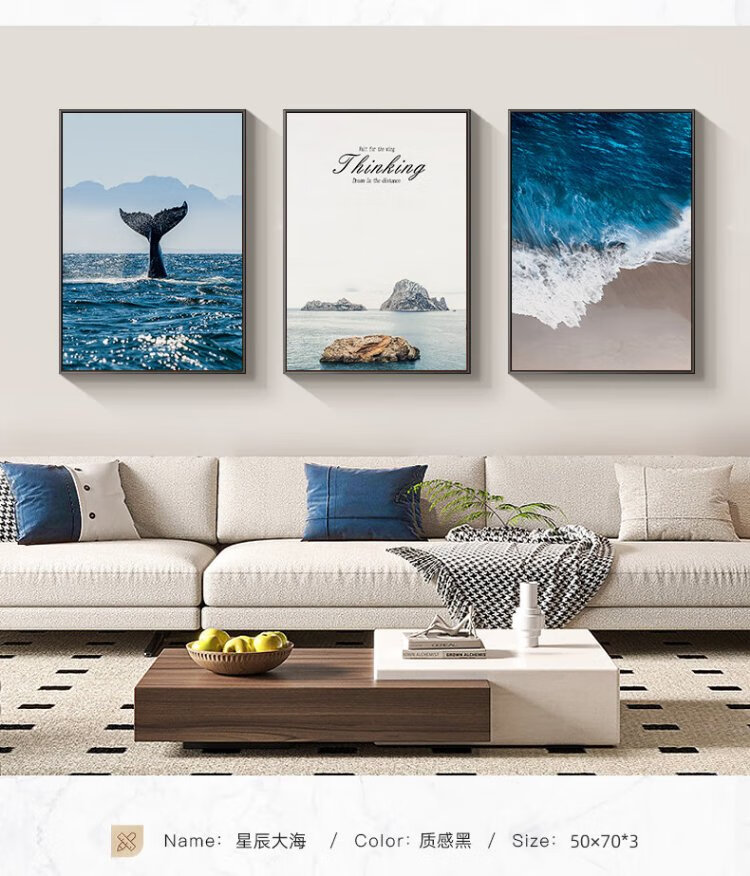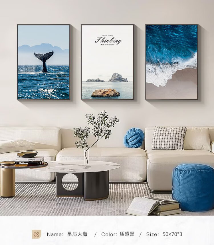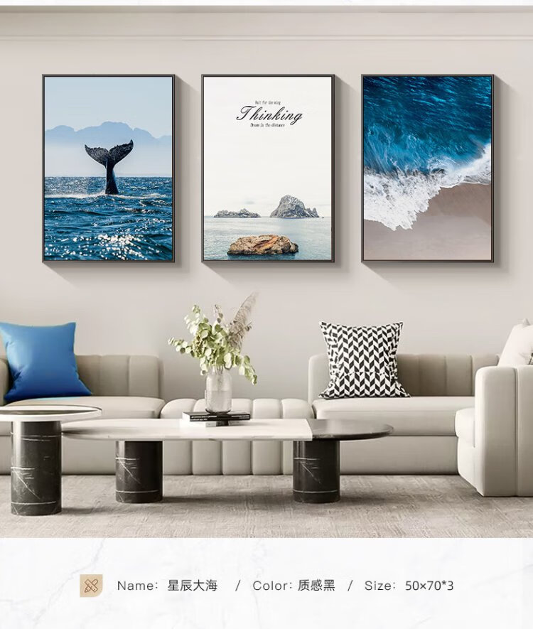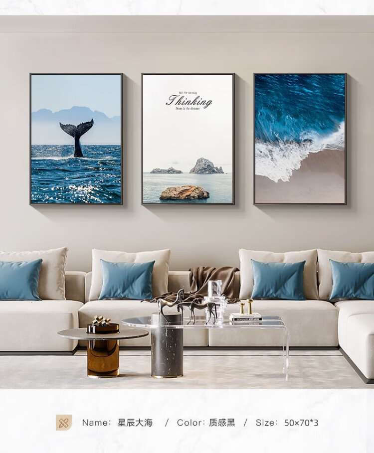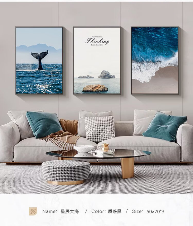 Long time no see, living room decoration painting, modern minimalist sofa background wall hanging painting, sea scenery triptych mural