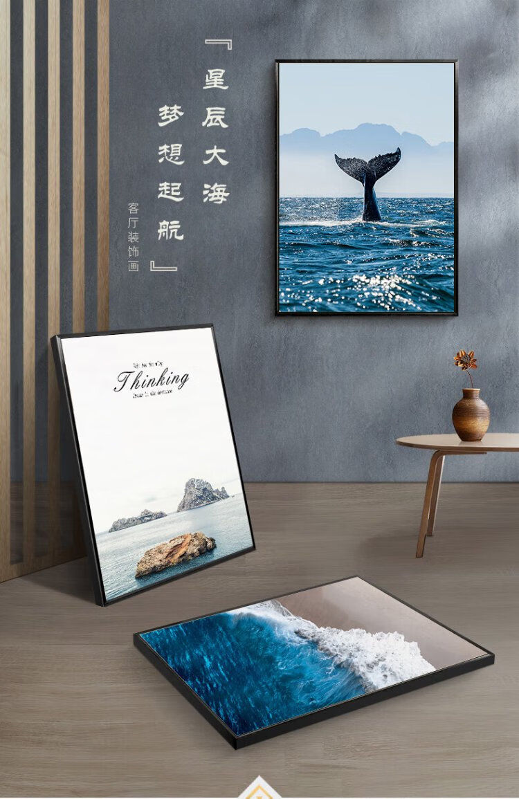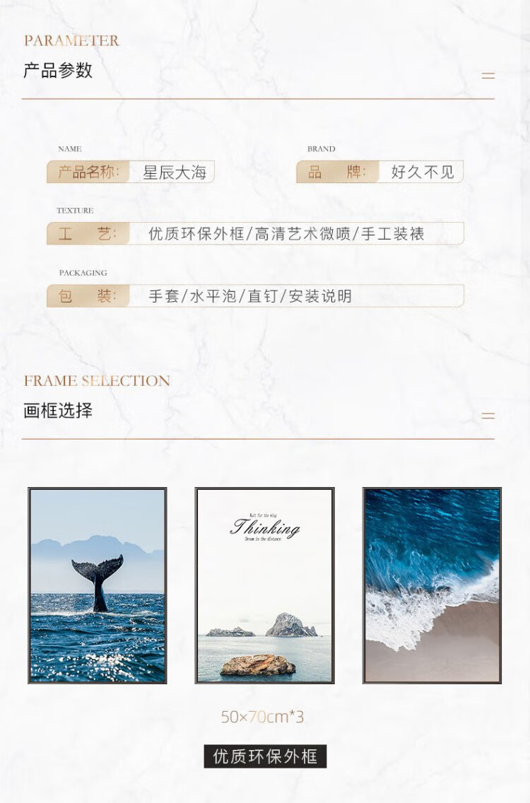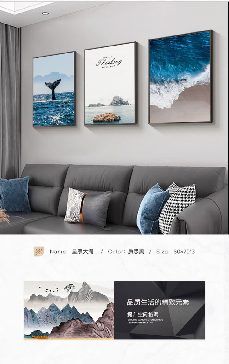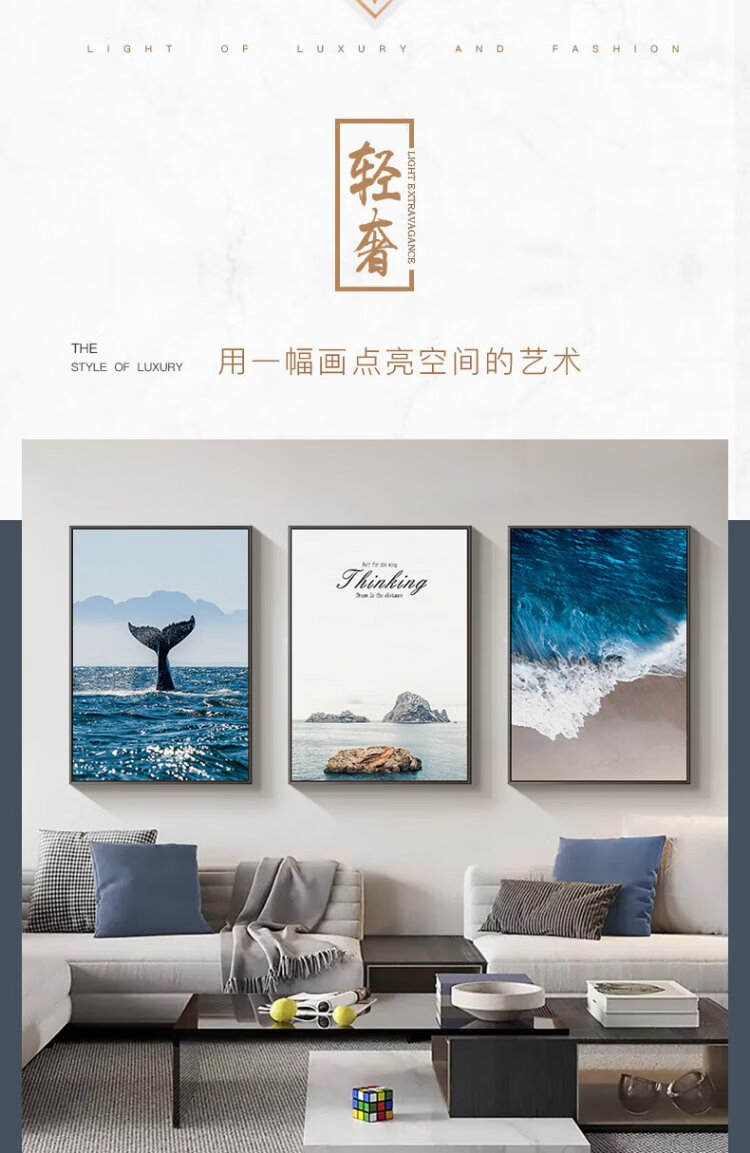 Long time no see, living room decoration painting, modern minimalist sofa background wall hanging painting, sea scenery triptych mural