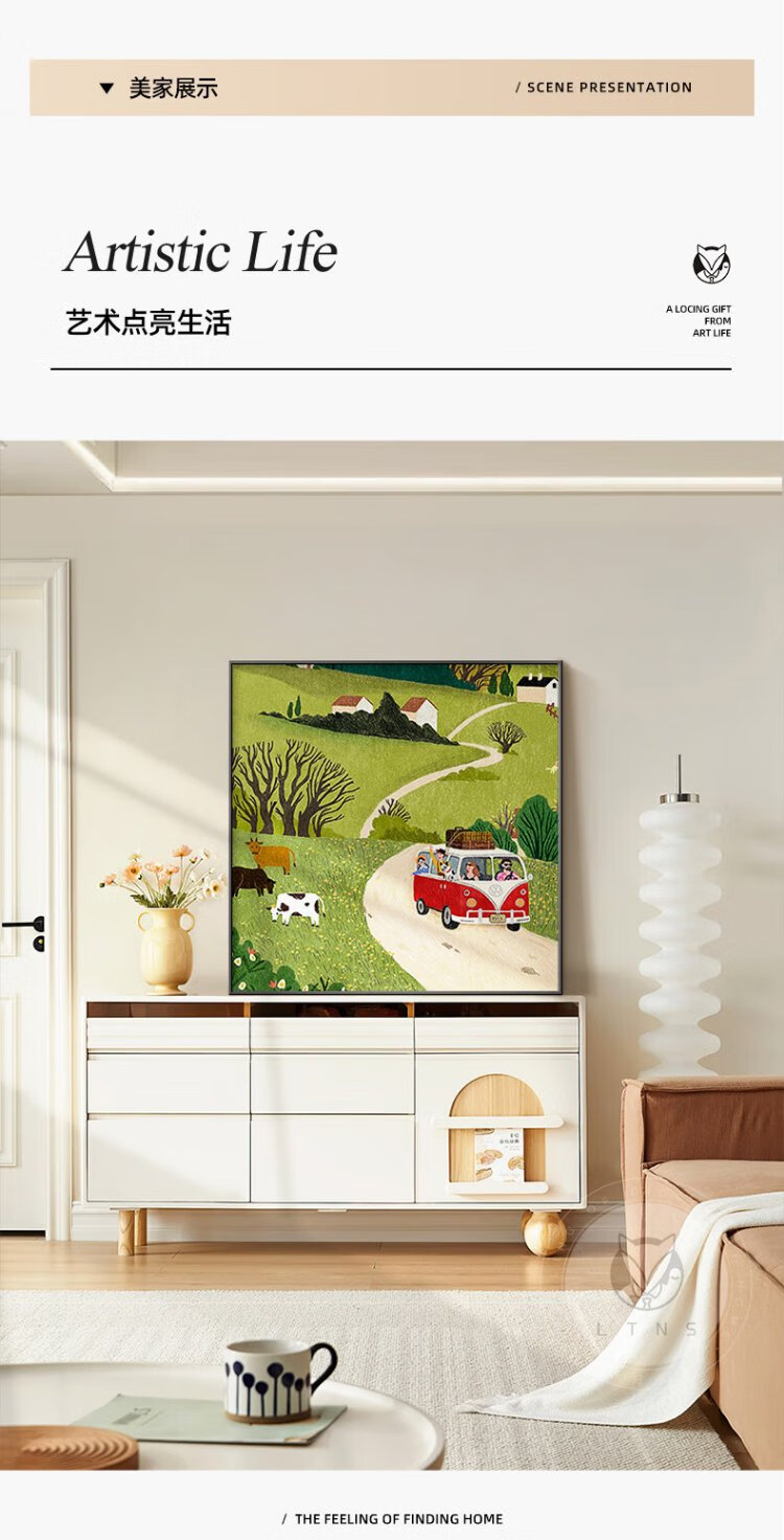 Long time no see, picturesque green entrance decoration painting, Nordic style entry entrance cabinet, living room display, high-end bedroom hanging painting