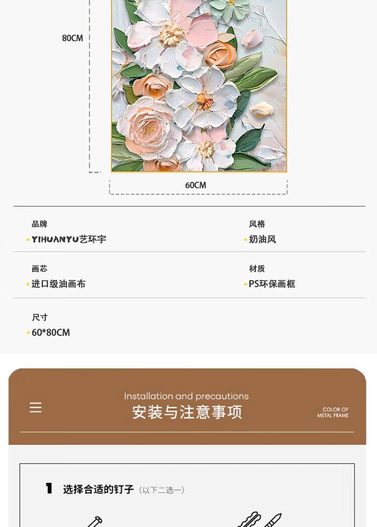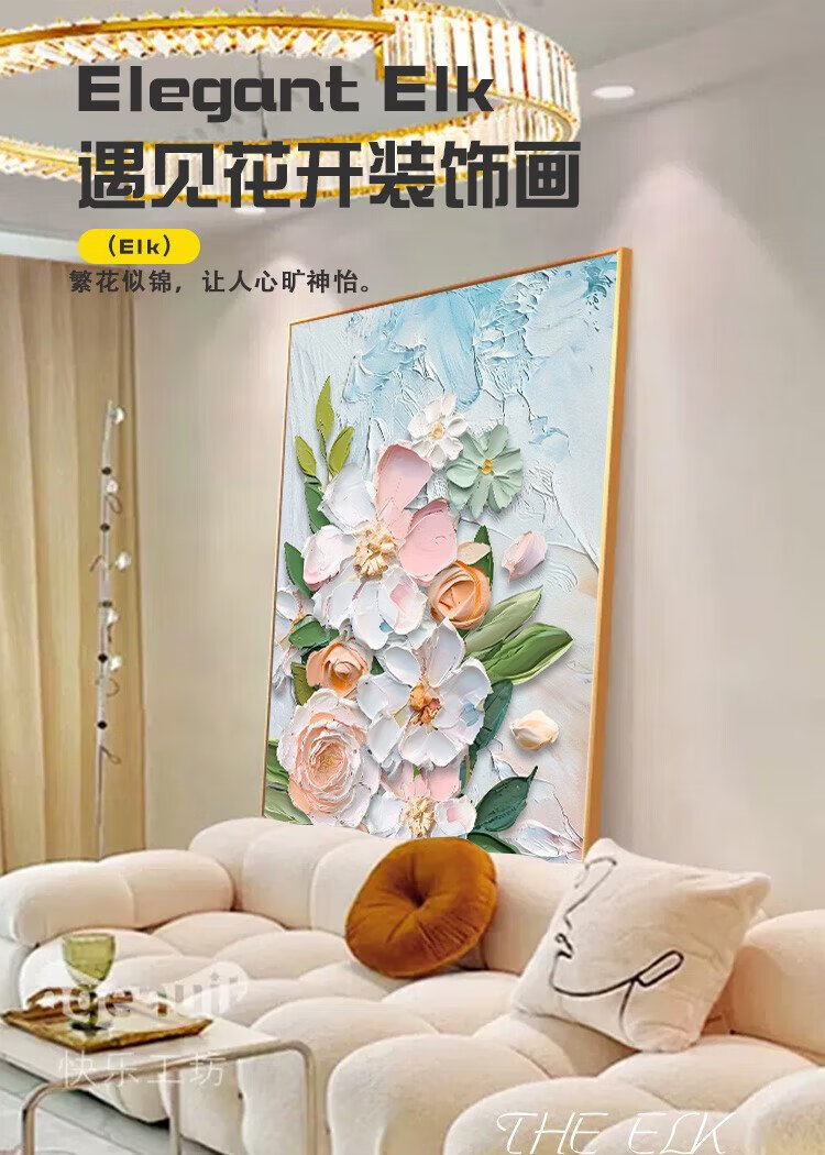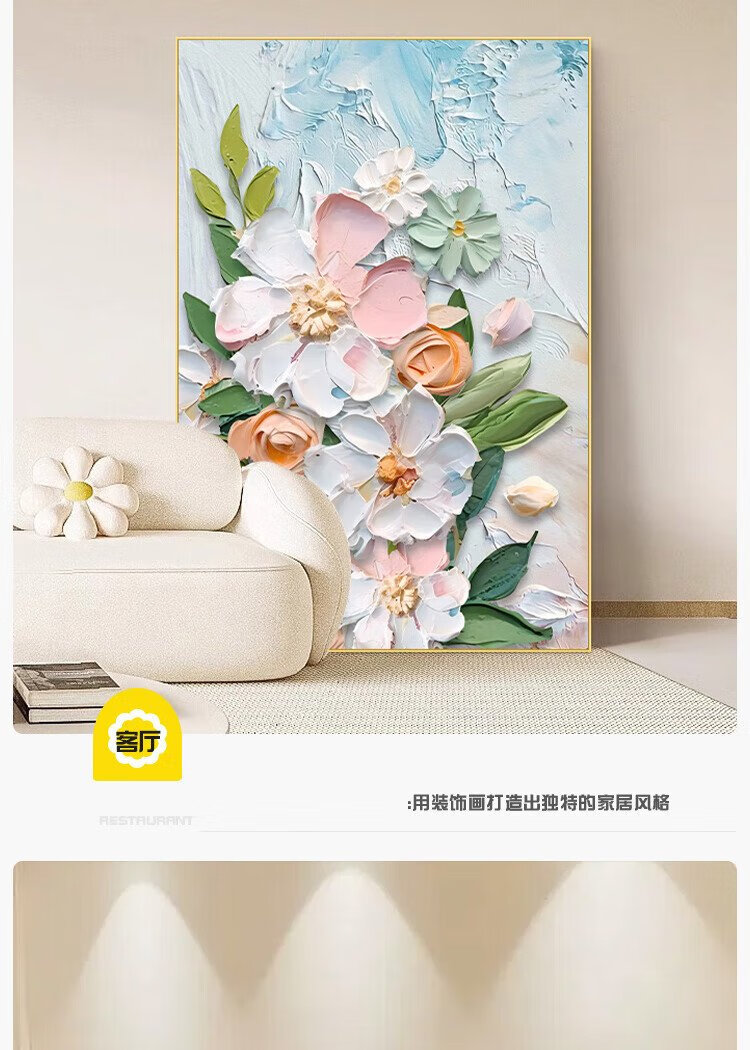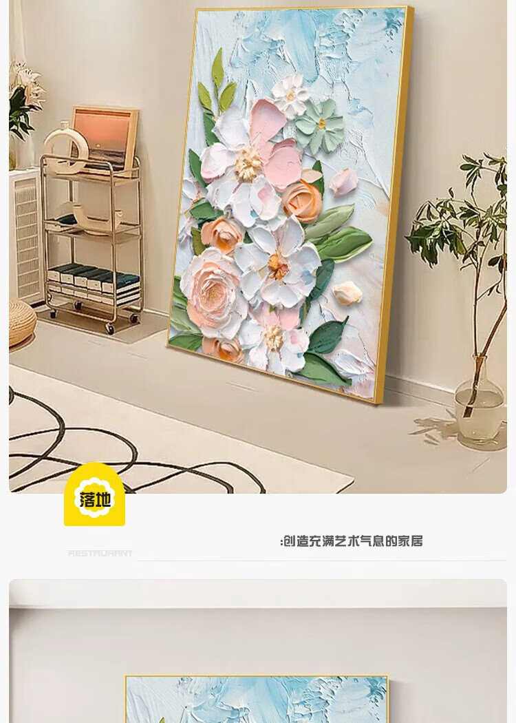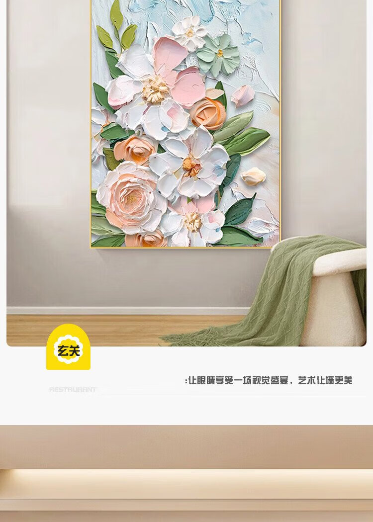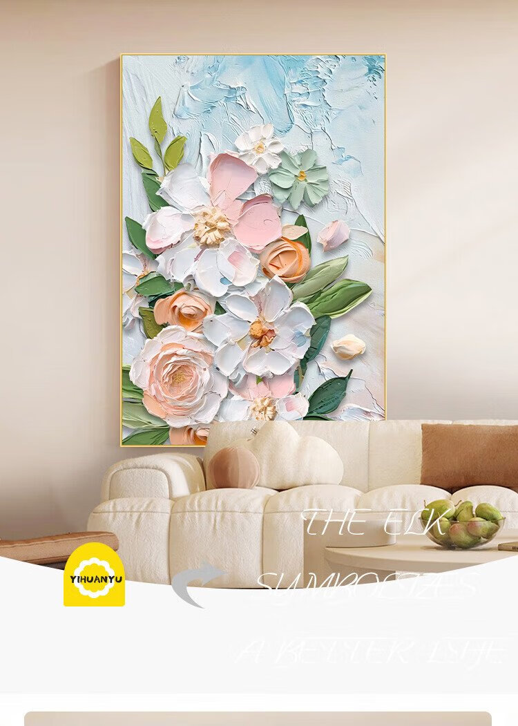 Yihuanyu Cream Style Living Room Decorative Painting Flower Entrance Hall Corridor Hanging Painting Sofa Back Background Wall Nordic Texture Mural