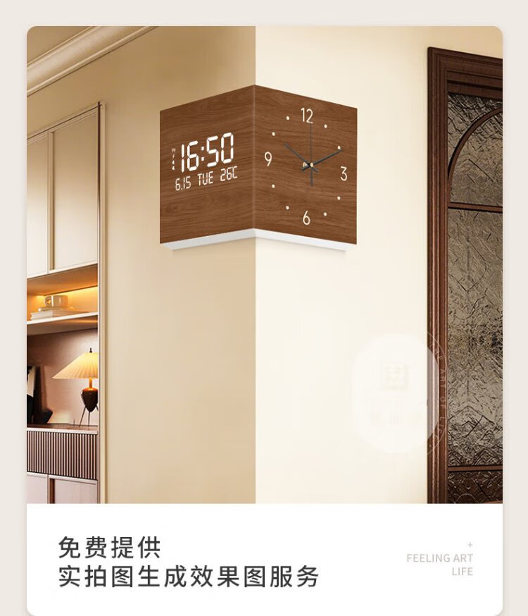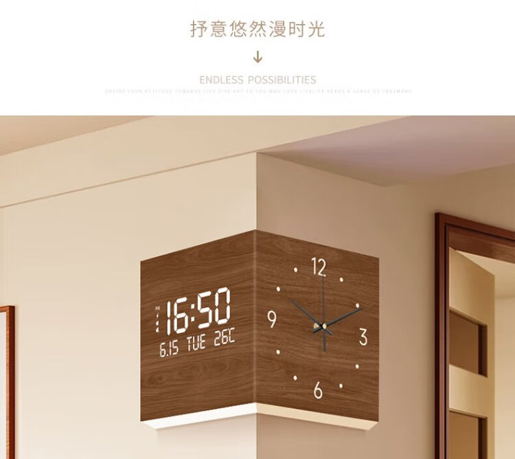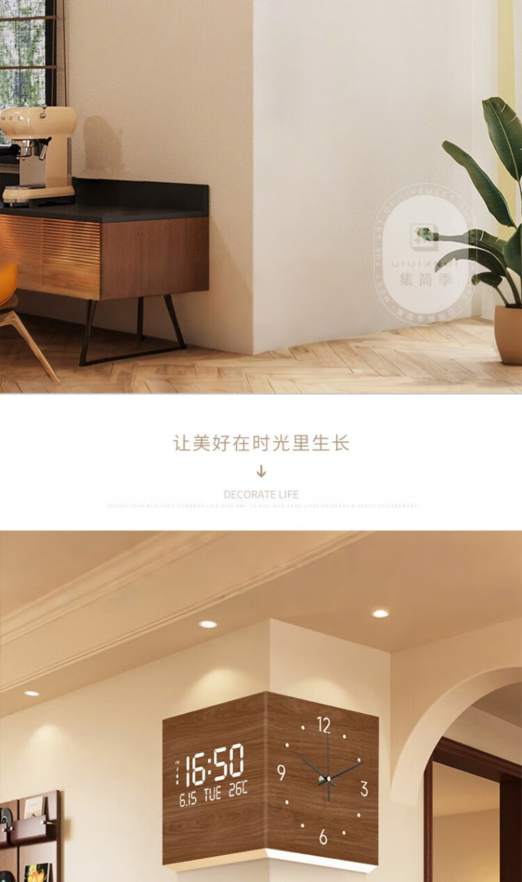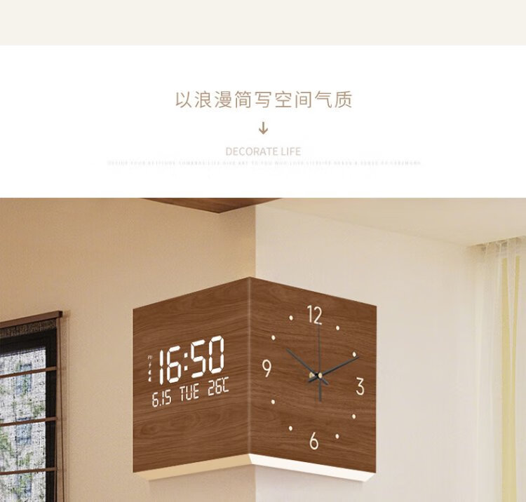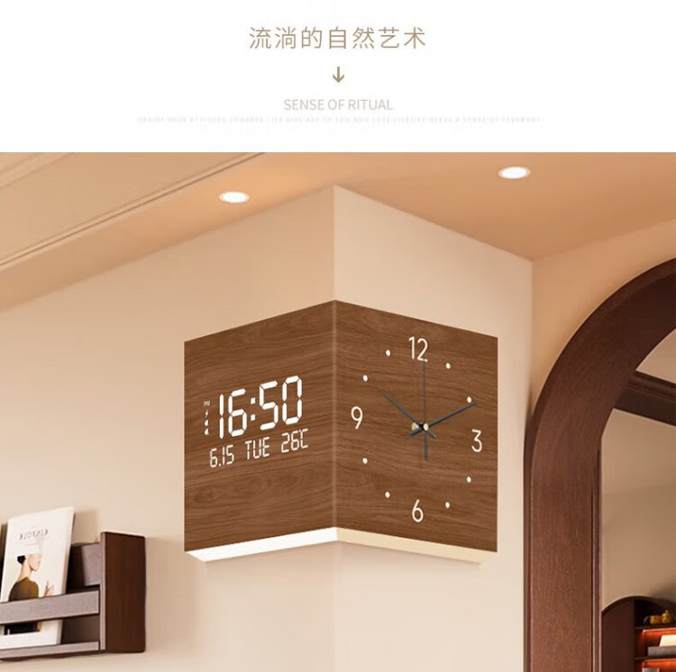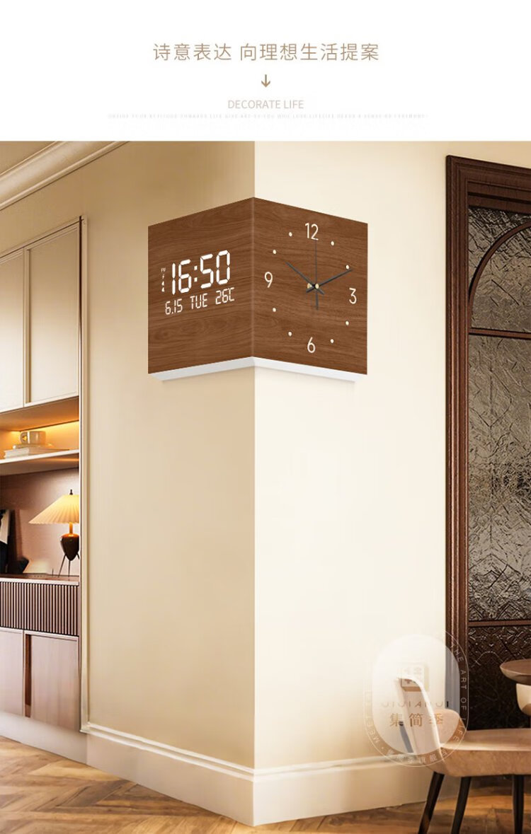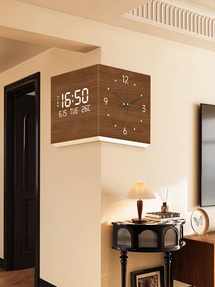 Set of simple mid-season antique living room corner clock perpetual calendar 2025 new electronic clock double-sided wall clock corner wall lamp clock