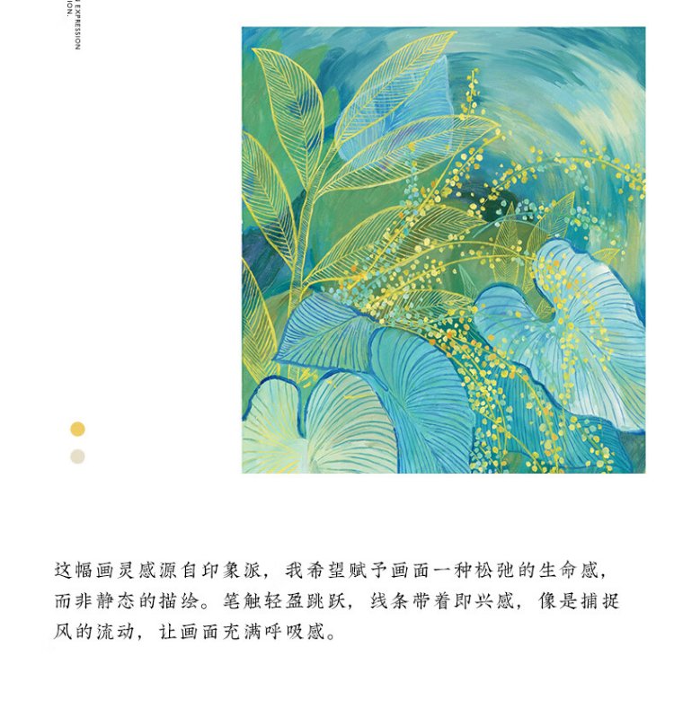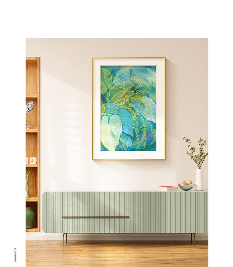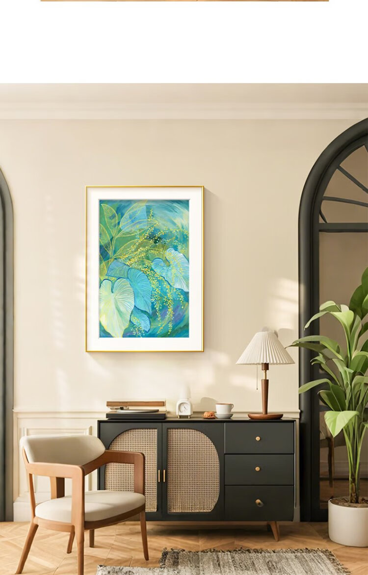 Long time no see Lin Yun Cream style living room decoration painting green plants abstract sofa background wall artistic restaurant hanging painting