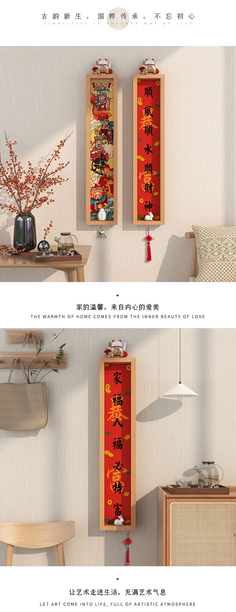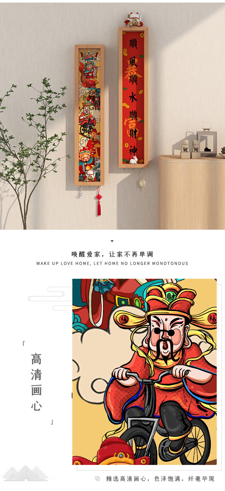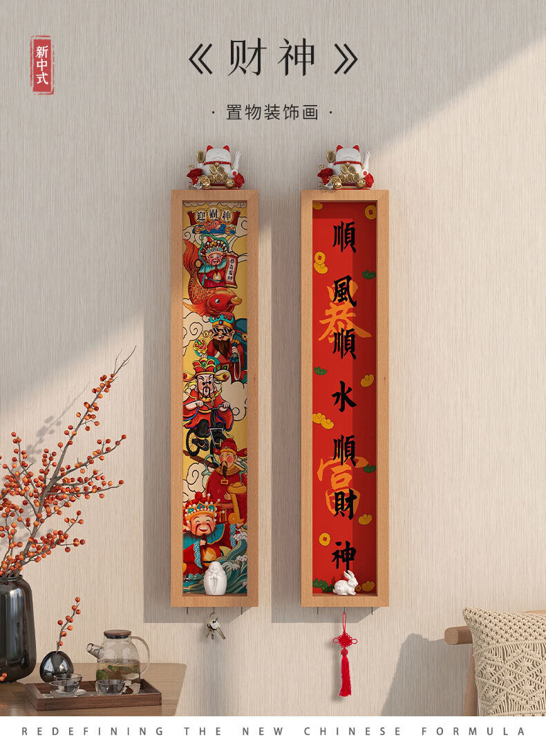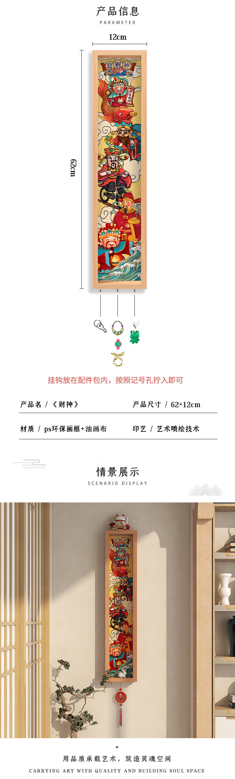 Blessing God of Wealth entrance hall decorative painting festive Chinese style entrance wall hanging painting New Year housewarming easel A God of Wealth 12*62*5cm log color framed painting