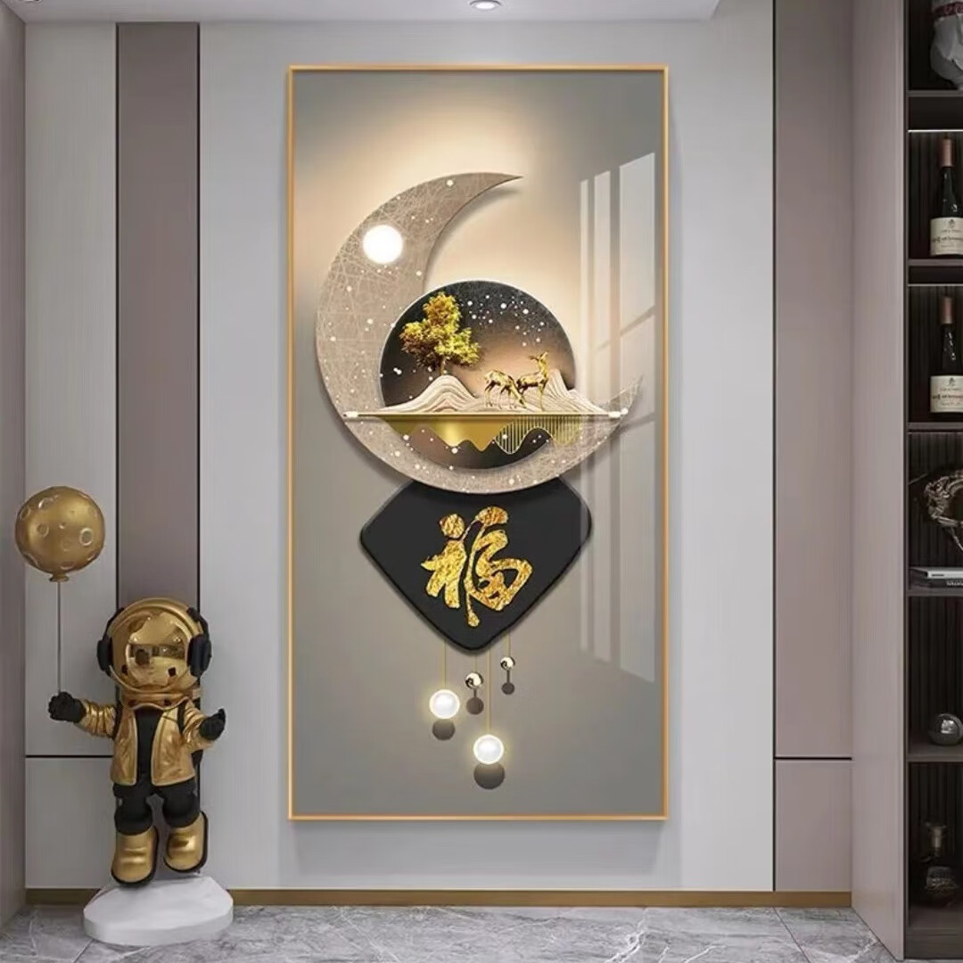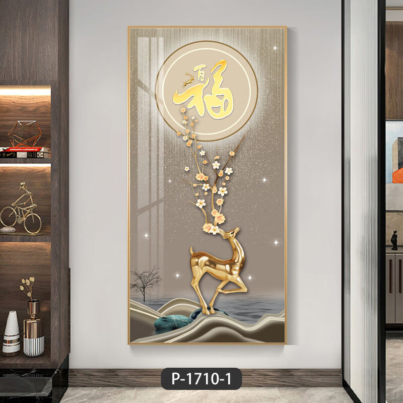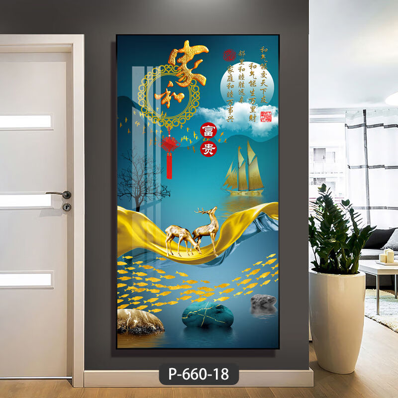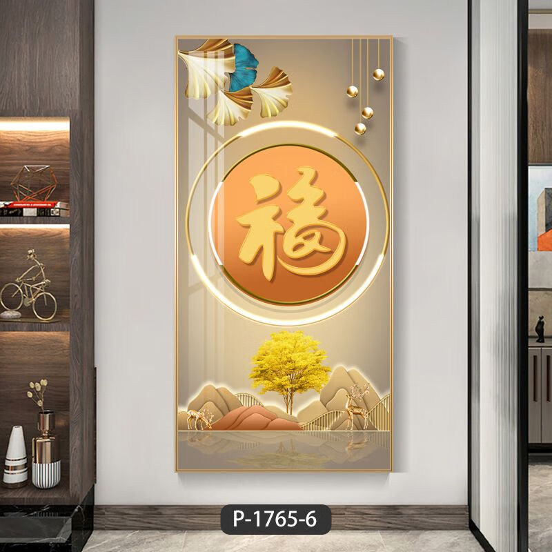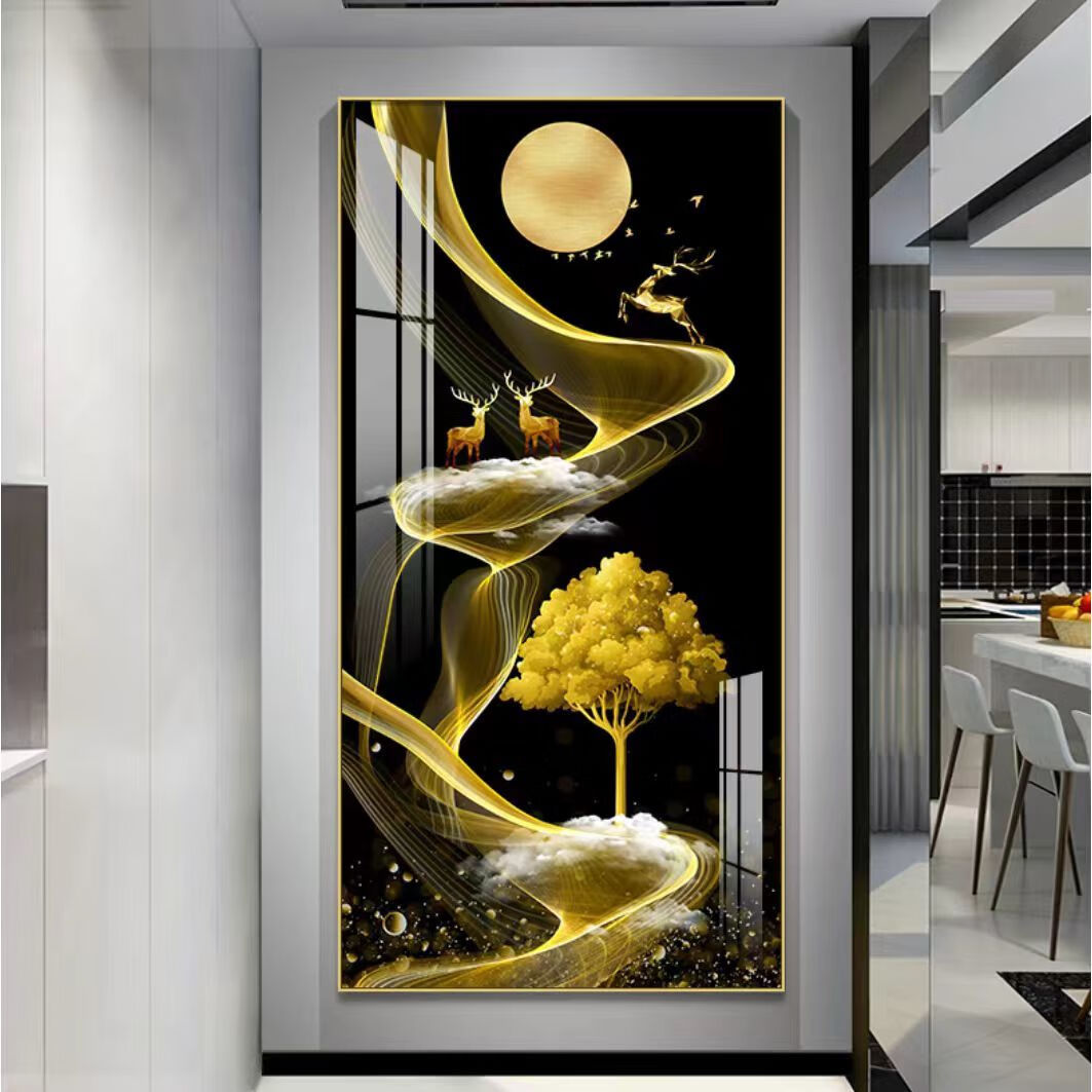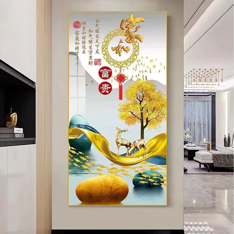 Lingtong 2025 new style entrance door entrance decorative painting corridor aisle mural background wall hanging painting vertical version crystal porcelain painter Jiahefugui 1 80*160 gold frame high definition crystal porcelain