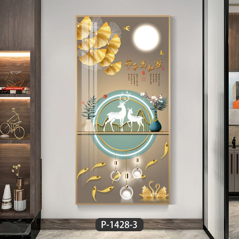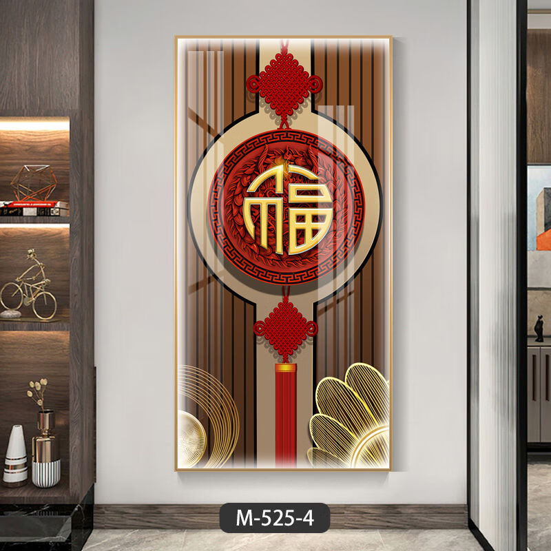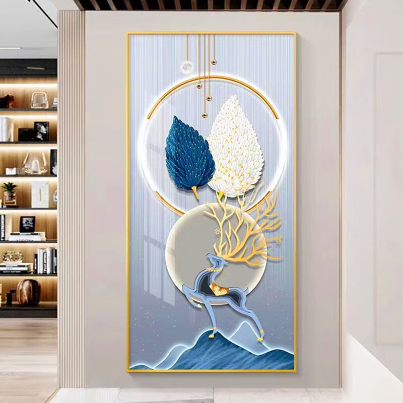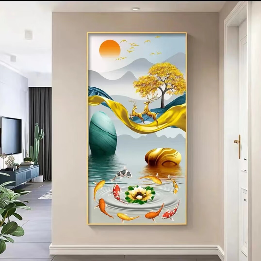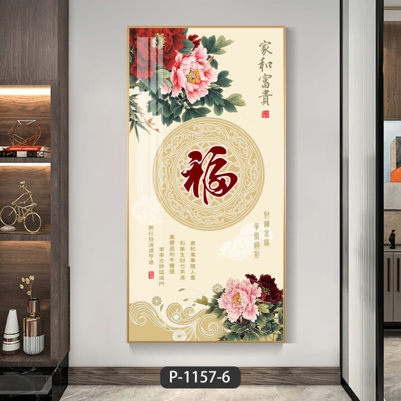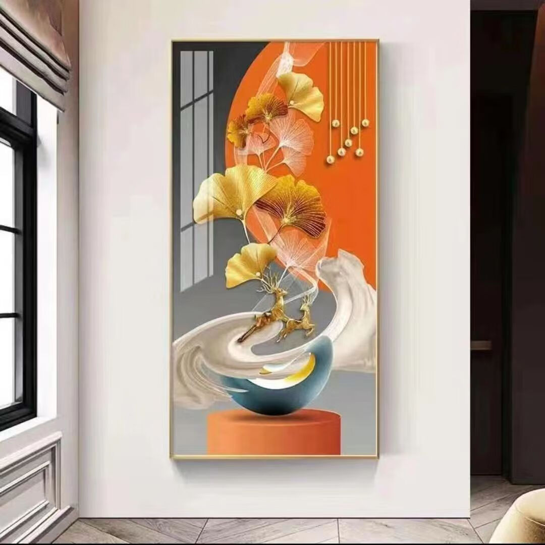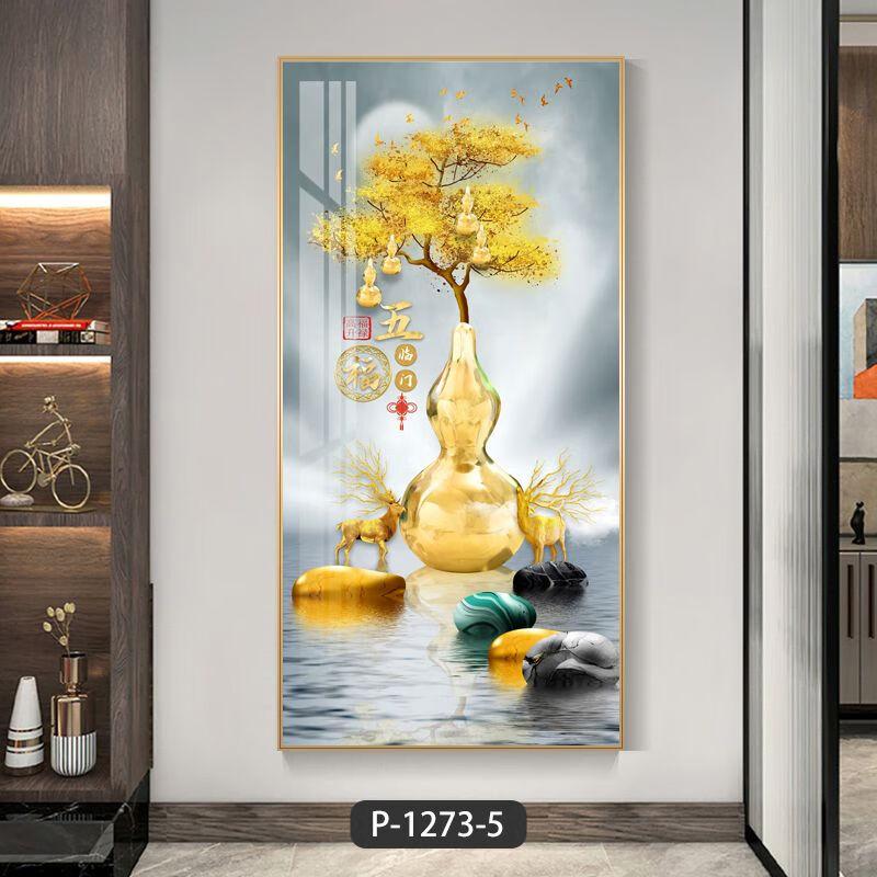 Lingtong 2025 new style entrance door entrance decorative painting corridor aisle mural background wall hanging painting vertical version crystal porcelain painter Jiahefugui 1 80*160 gold frame high definition crystal porcelain