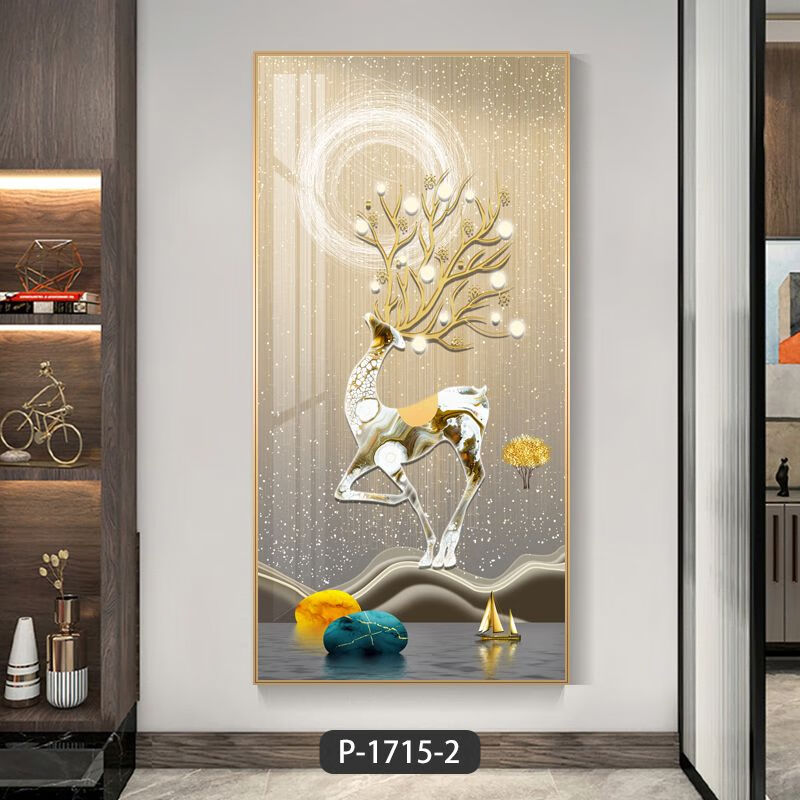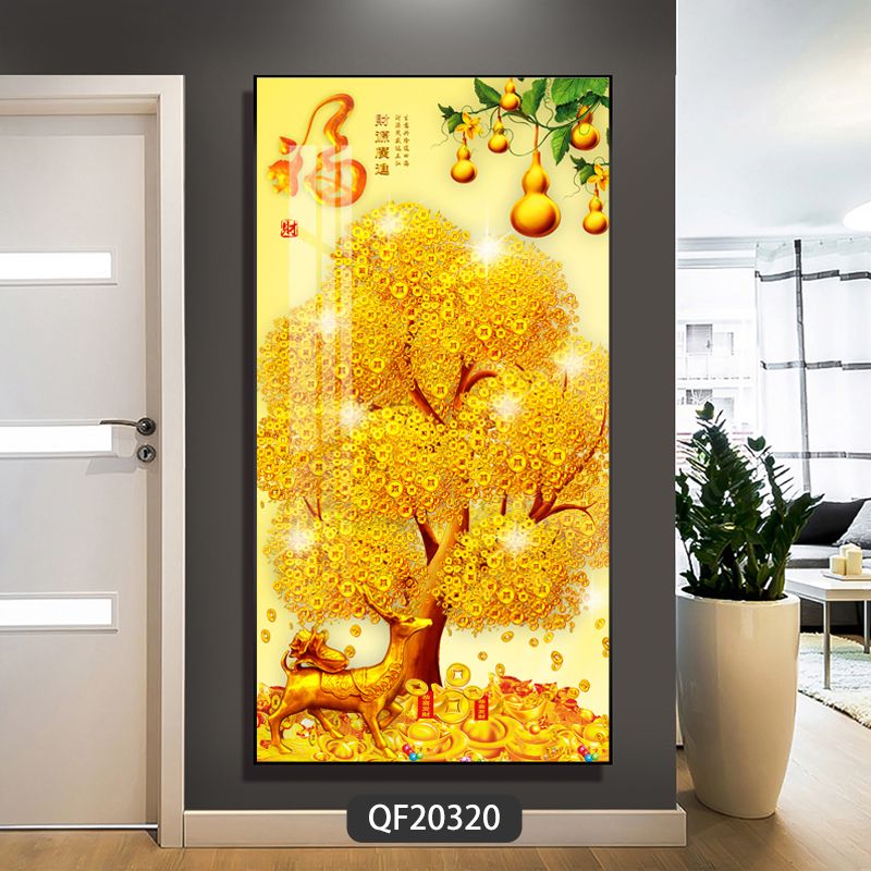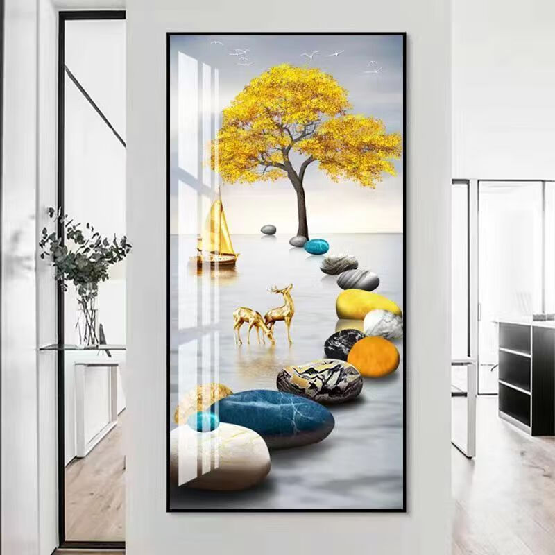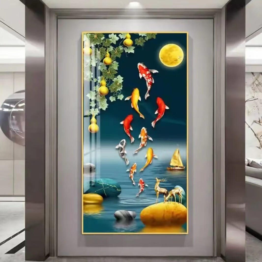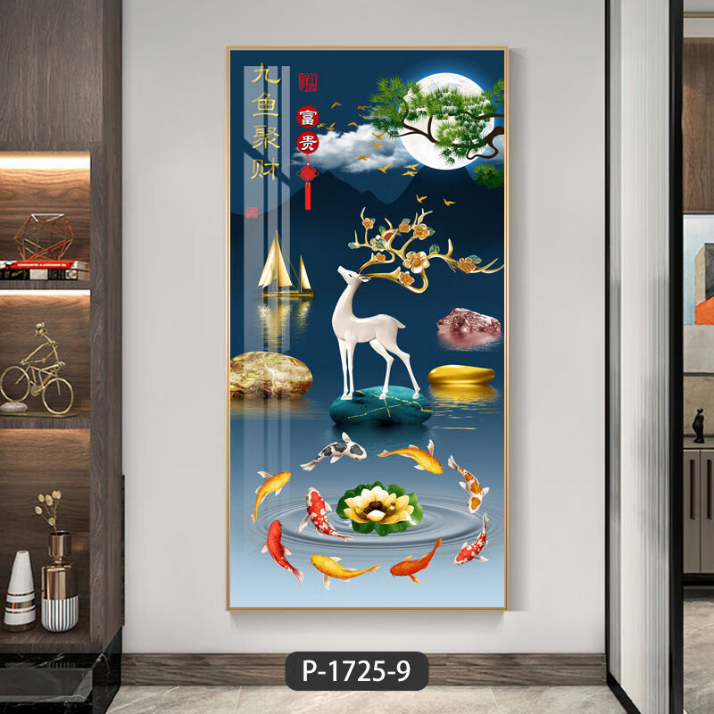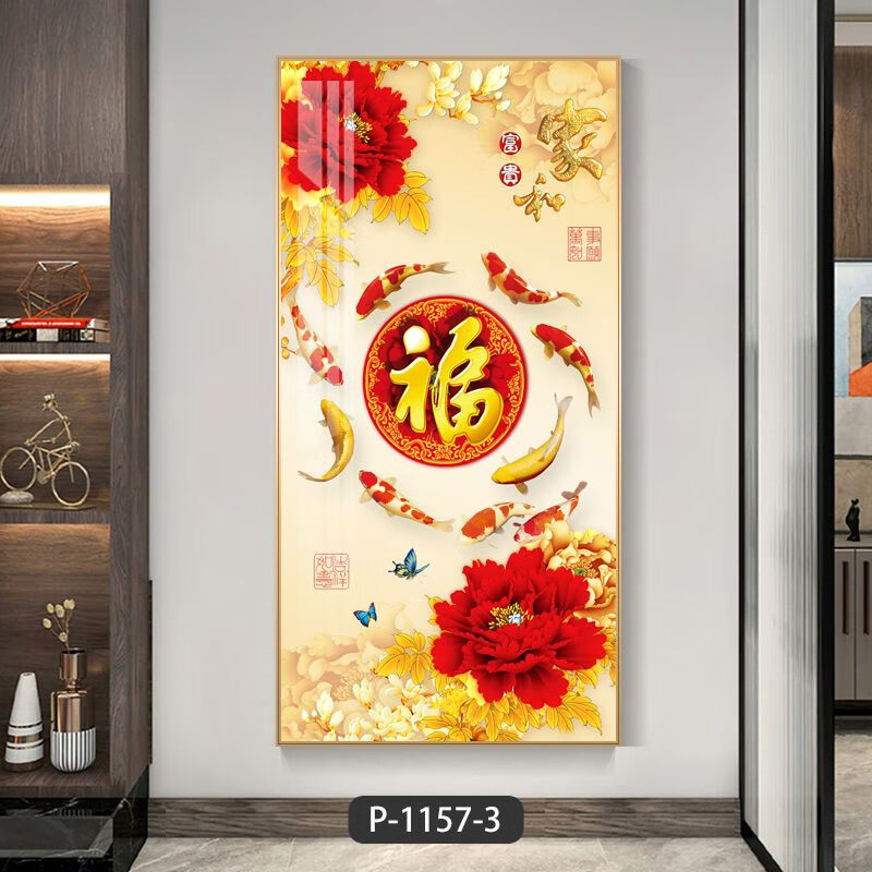 Lingtong 2025 new style entrance door entrance decorative painting corridor aisle mural background wall hanging painting vertical version crystal porcelain painter Jiahefugui 1 80*160 gold frame high definition crystal porcelain