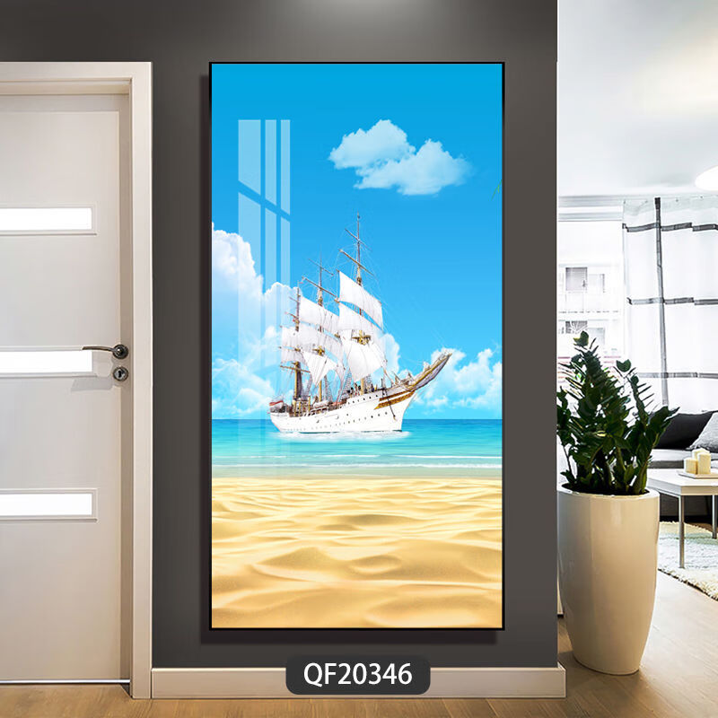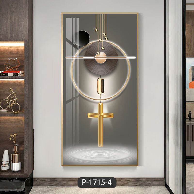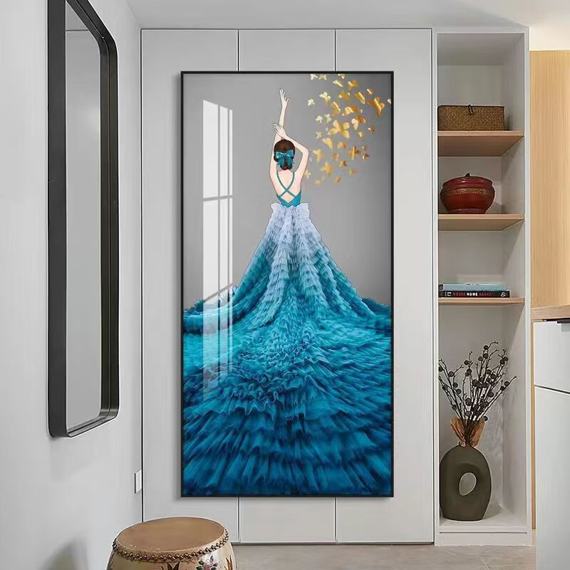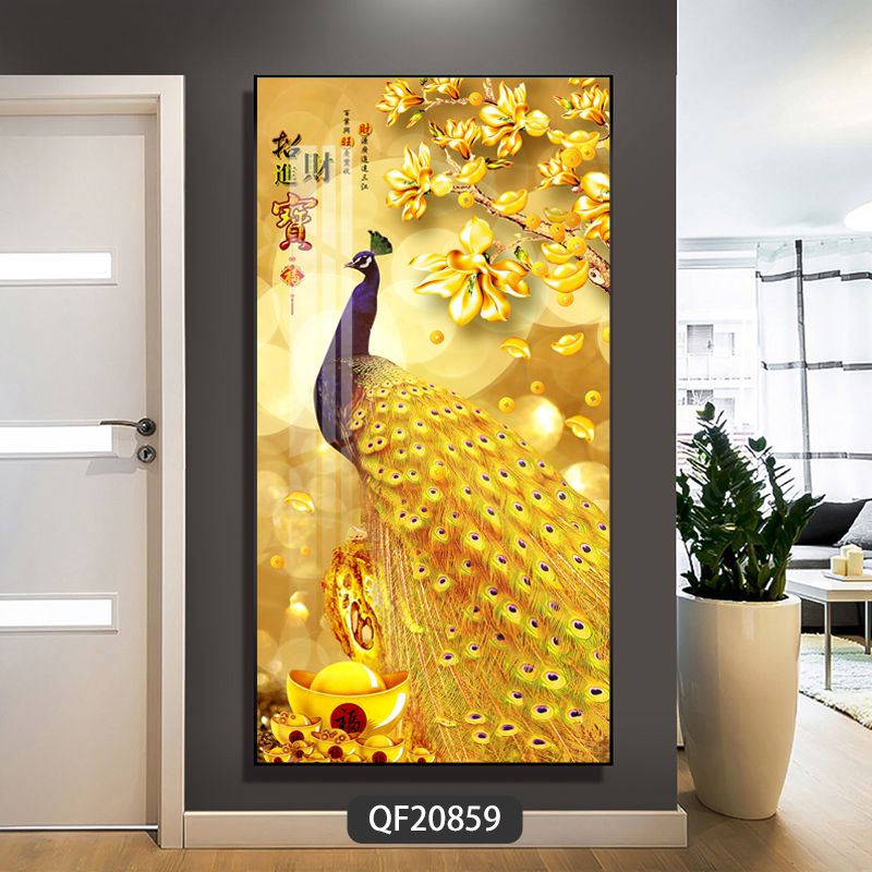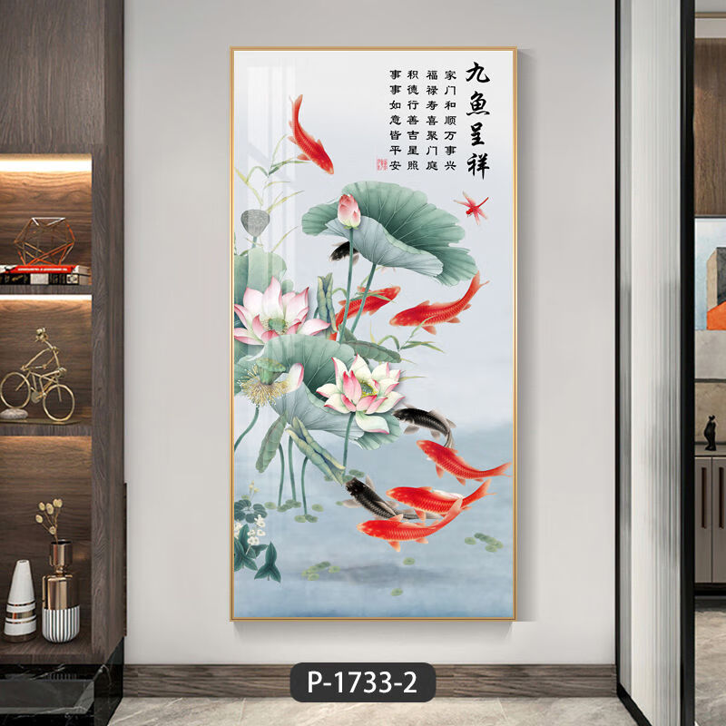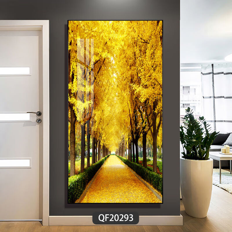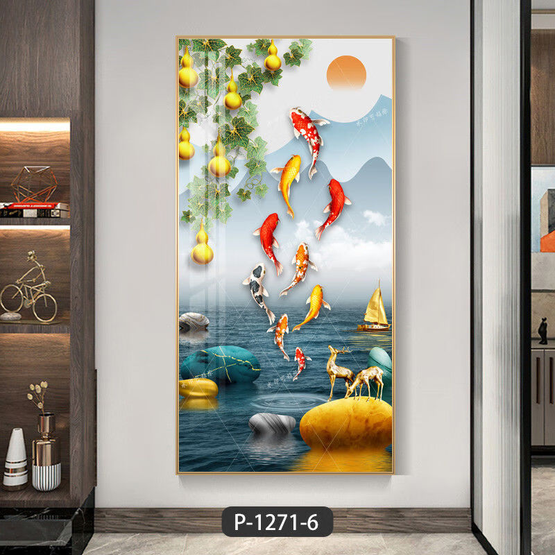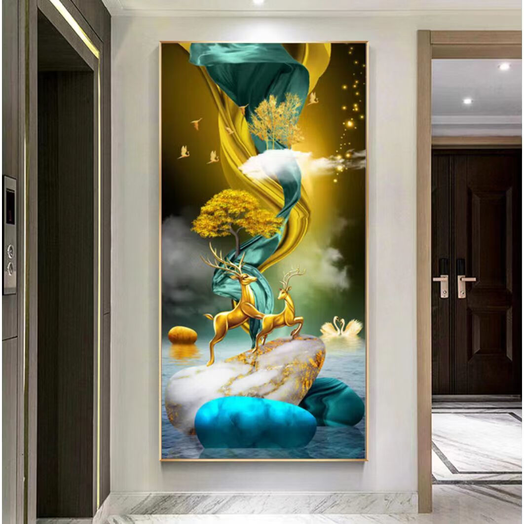 Lingtong 2025 new style entrance door entrance decorative painting corridor aisle mural background wall hanging painting vertical version crystal porcelain painter Jiahefugui 1 80*160 gold frame high definition crystal porcelain