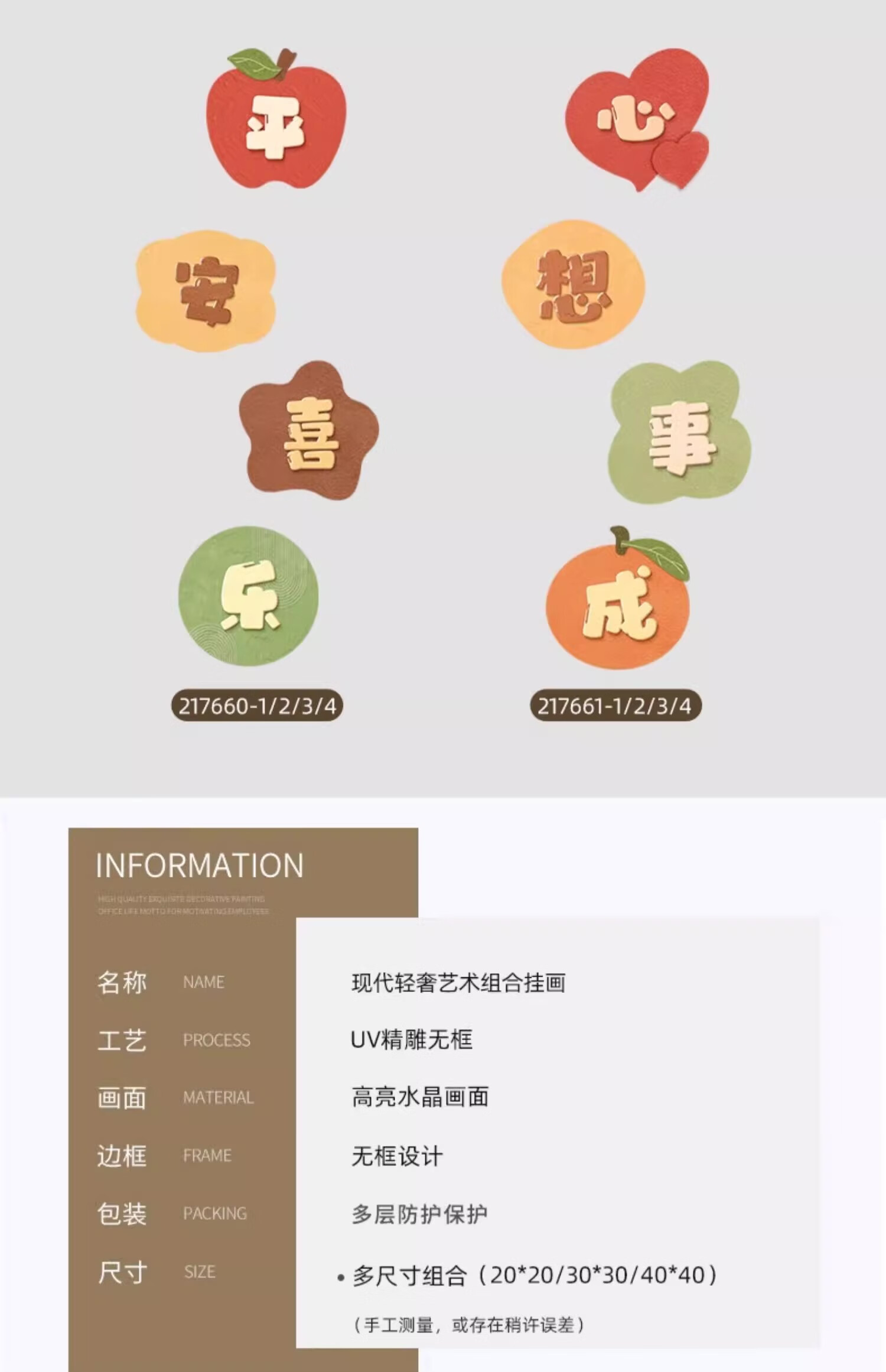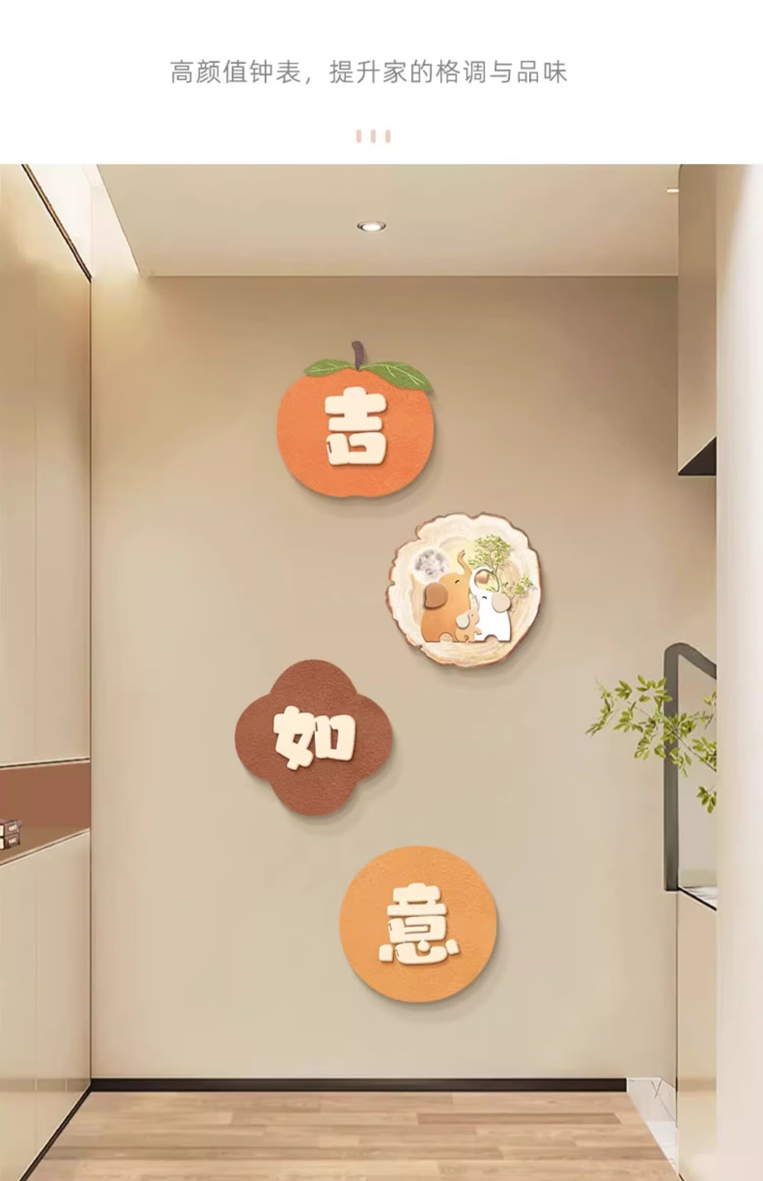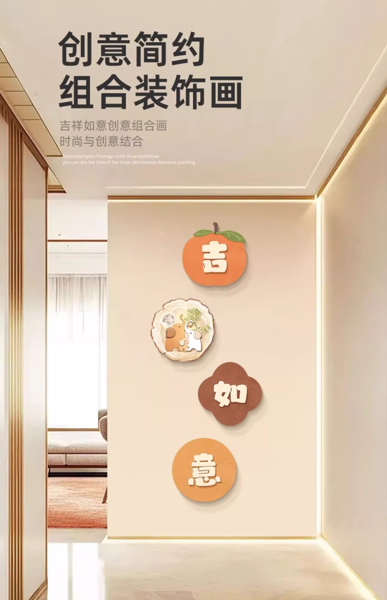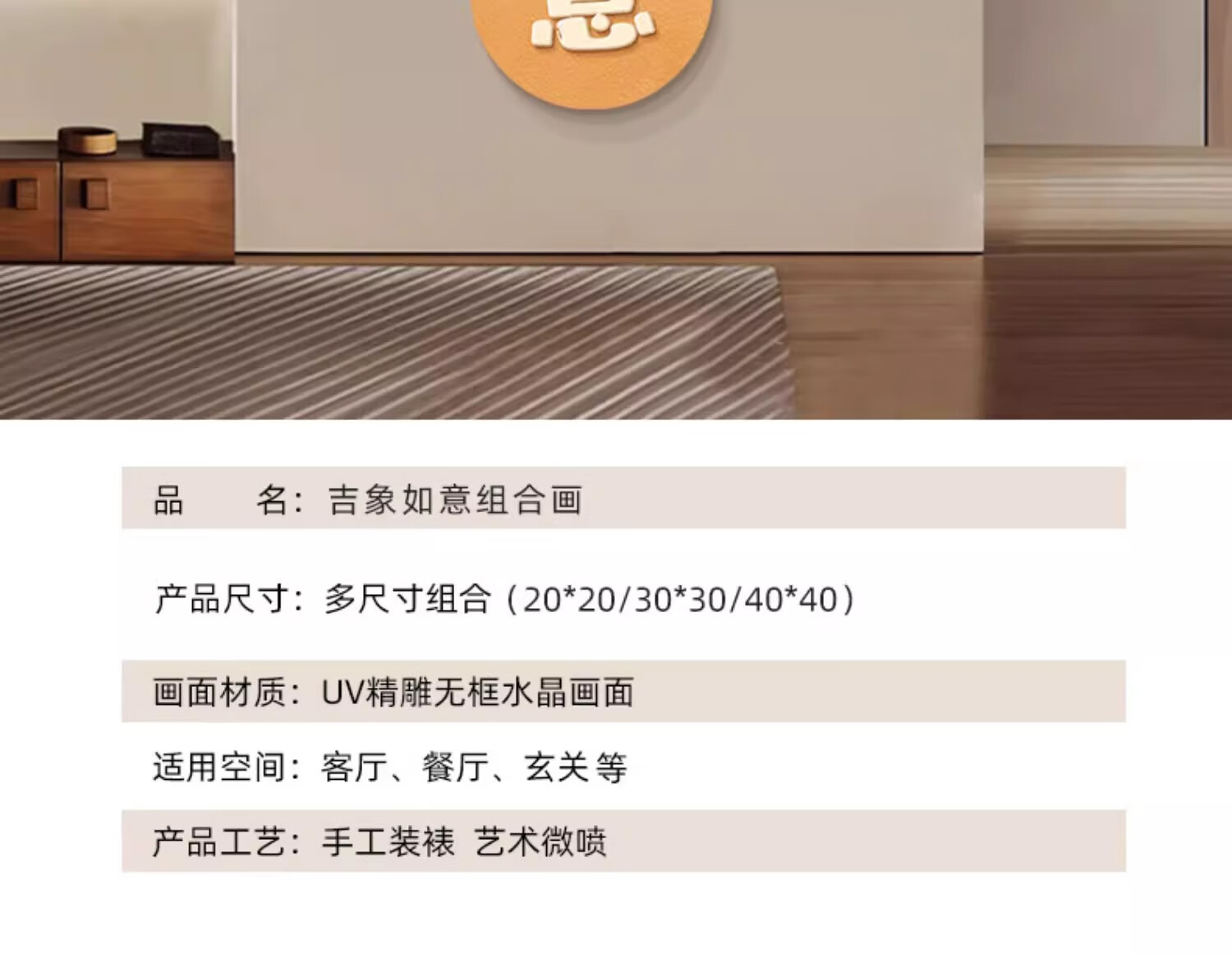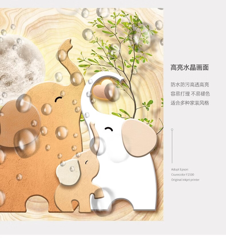 Peace and joy, auspicious elephants, Ruyi entrance decoration painting with good meaning, living room TV wall, cream style creative new mural, peace and joy, medium combination (30*30cm four pieces in a set) UV carved frameless painting/high-end crystal surface