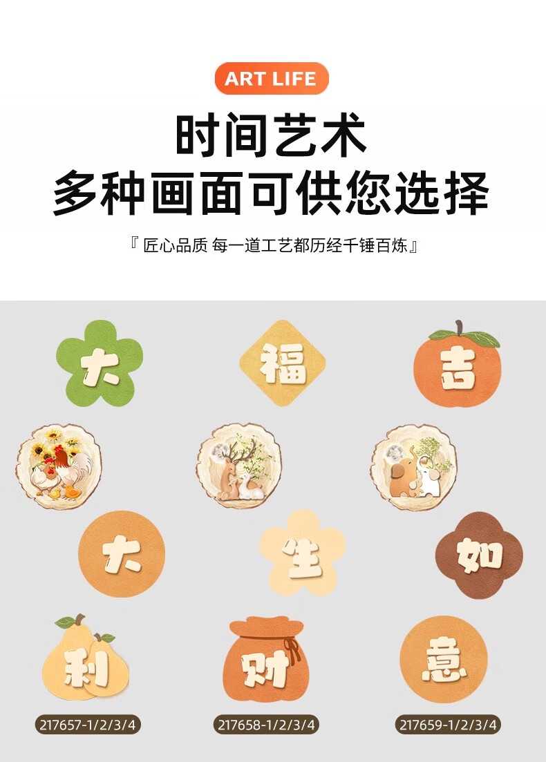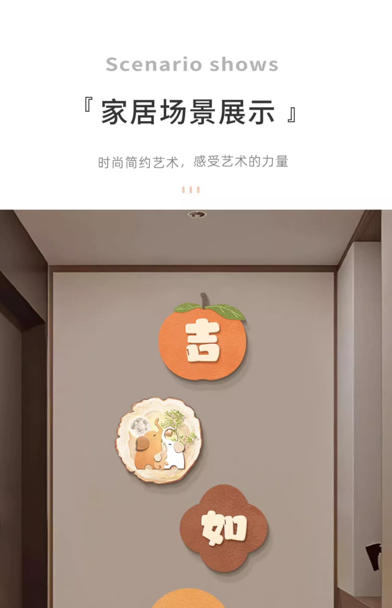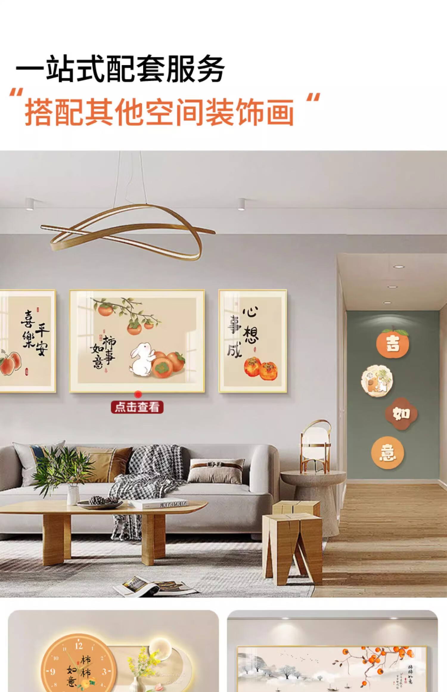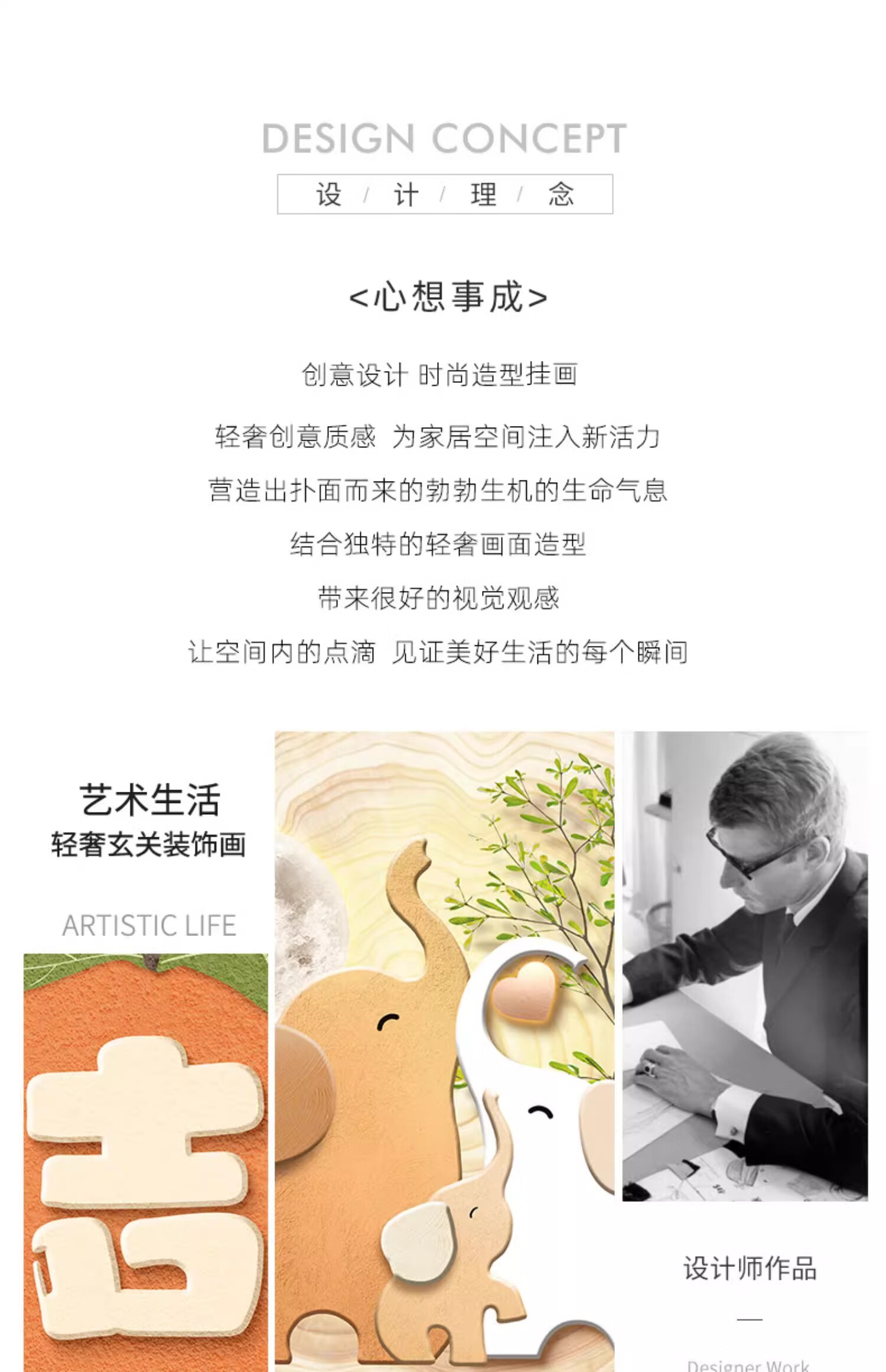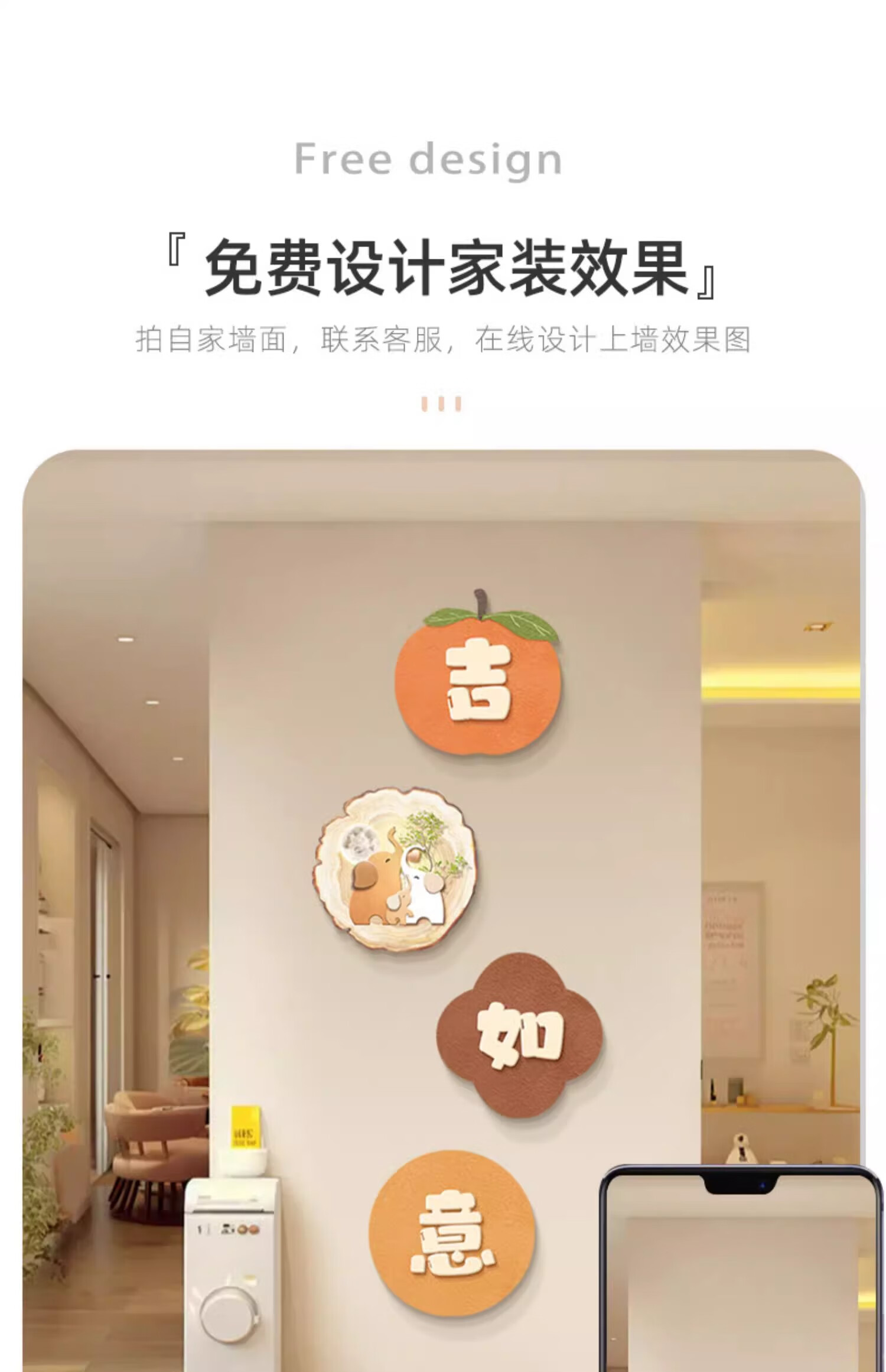 Peace and joy, auspicious elephants, Ruyi entrance decoration painting with good meaning, living room TV wall, cream style creative new mural, peace and joy, medium combination (30*30cm four pieces in a set) UV carved frameless painting/high-end crystal surface