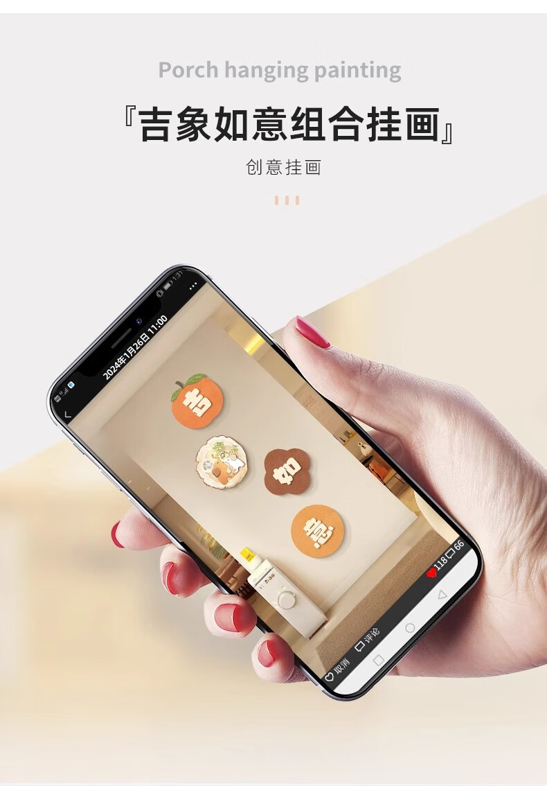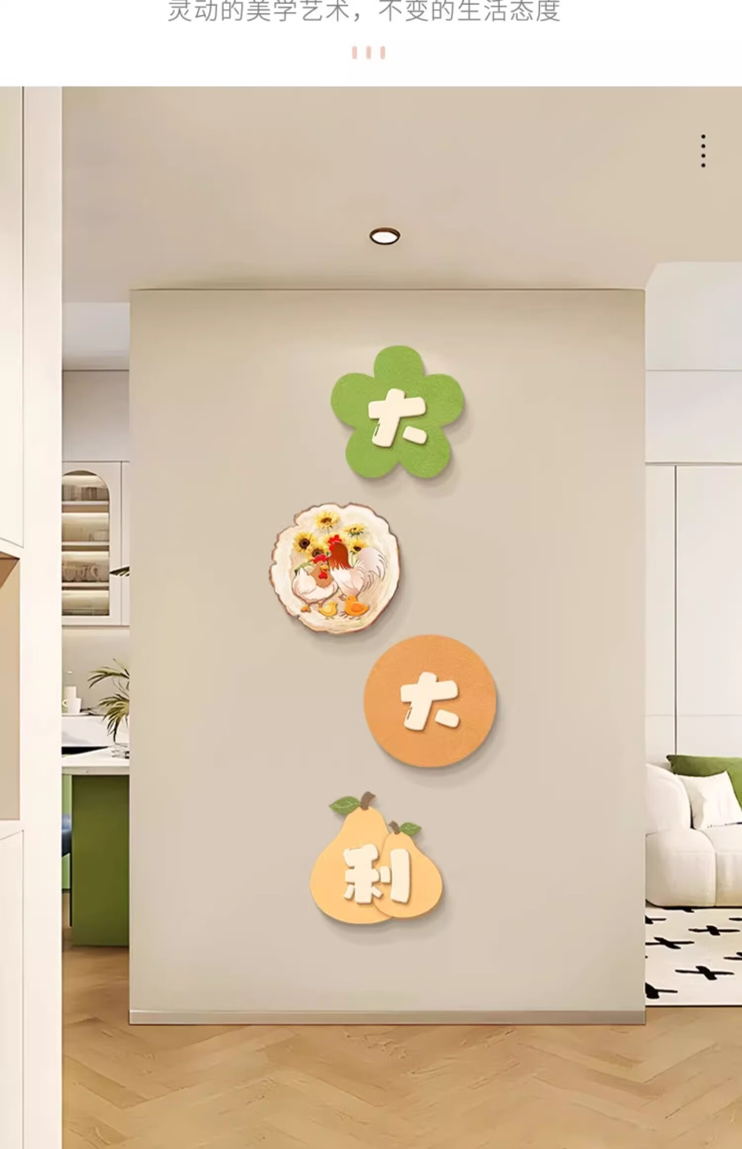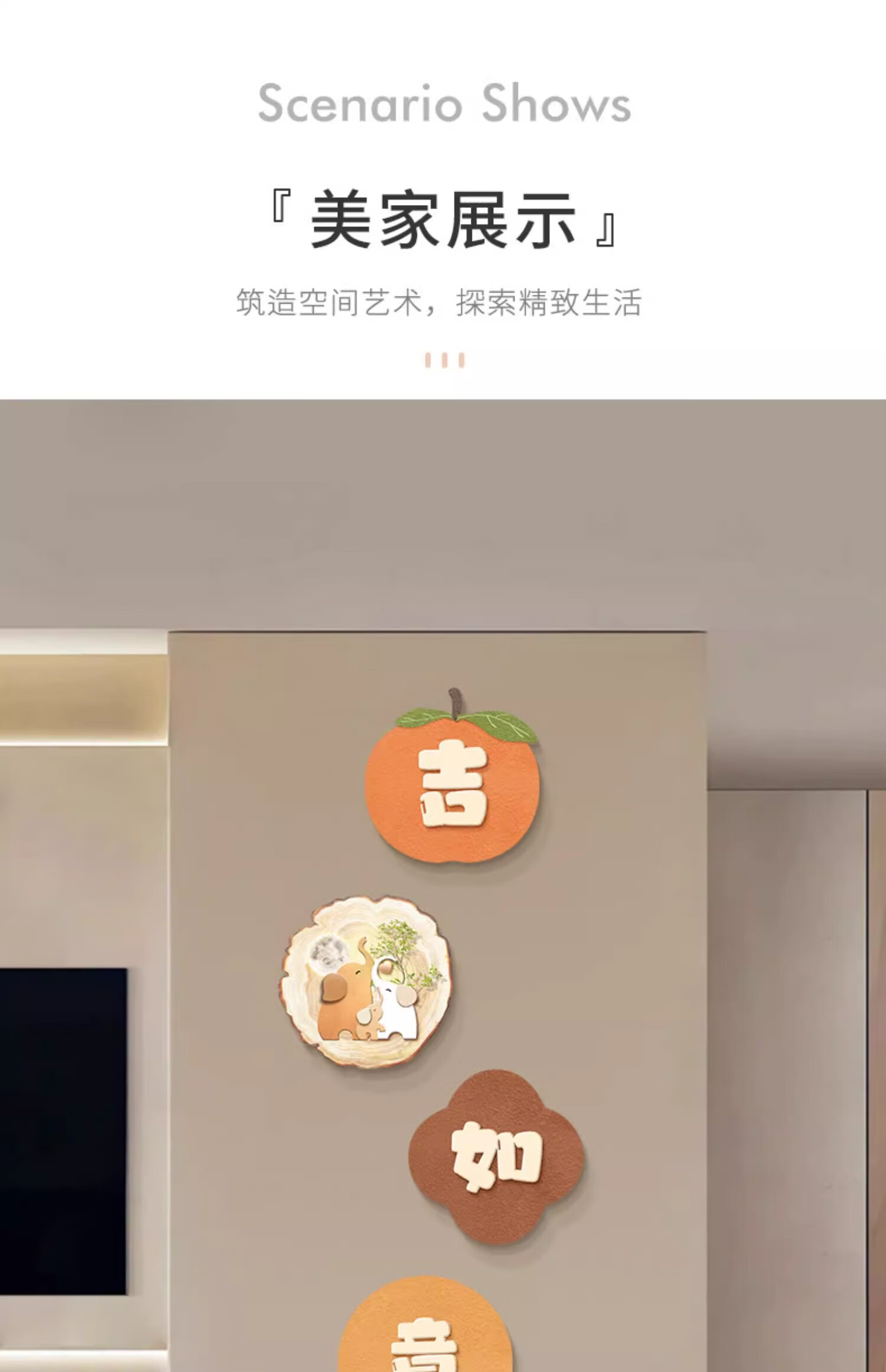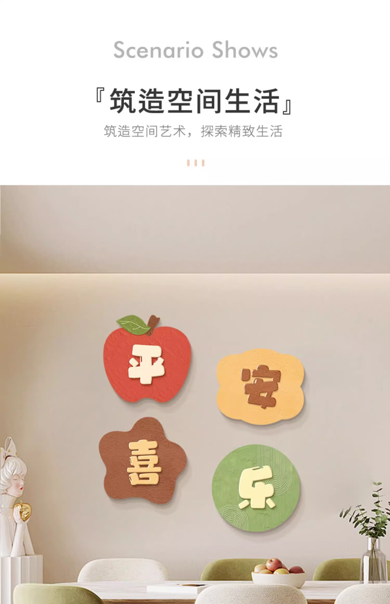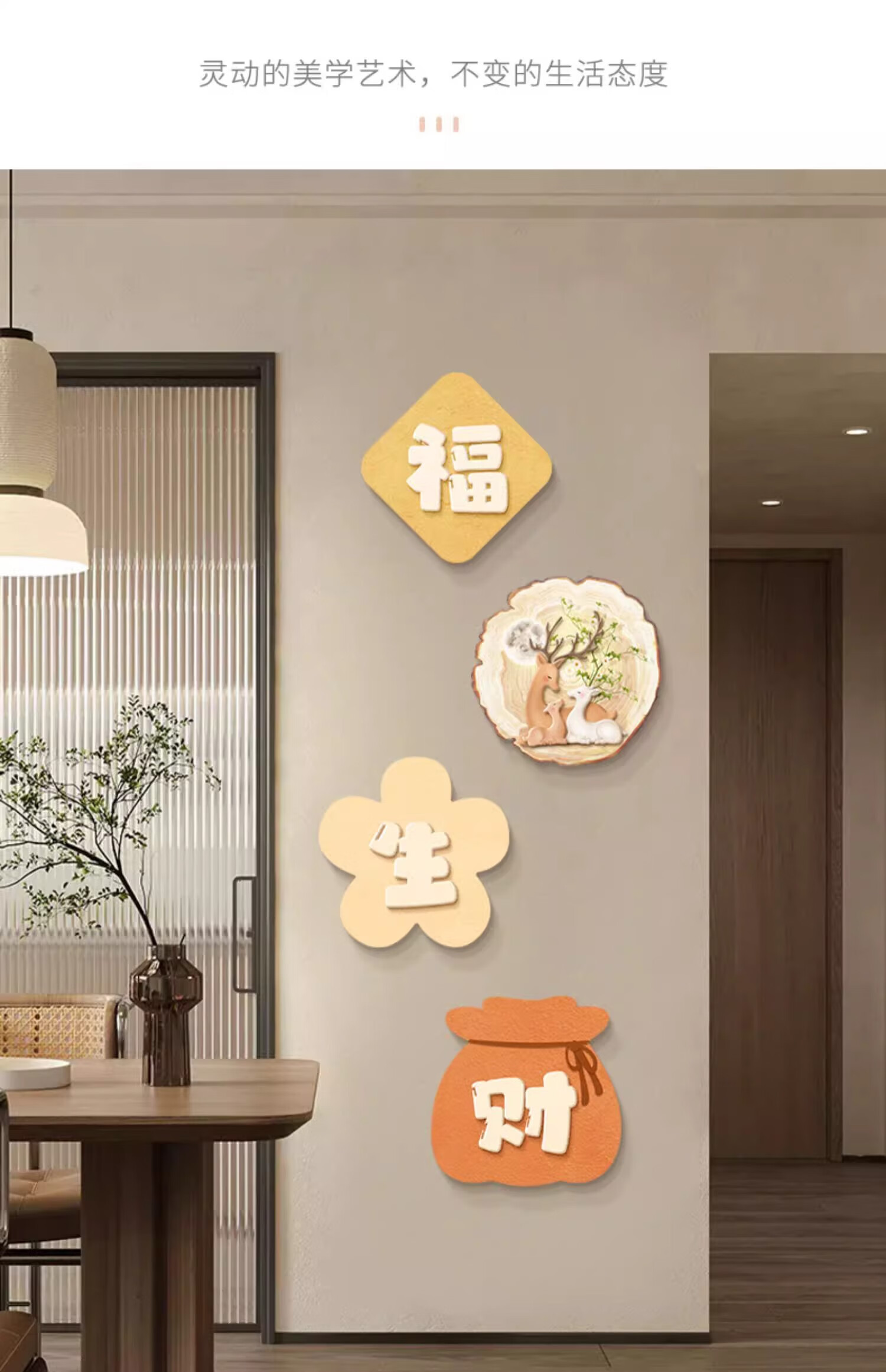 Peace and joy, auspicious elephants, Ruyi entrance decoration painting with good meaning, living room TV wall, cream style creative new mural, peace and joy, medium combination (30*30cm four pieces in a set) UV carved frameless painting/high-end crystal surface