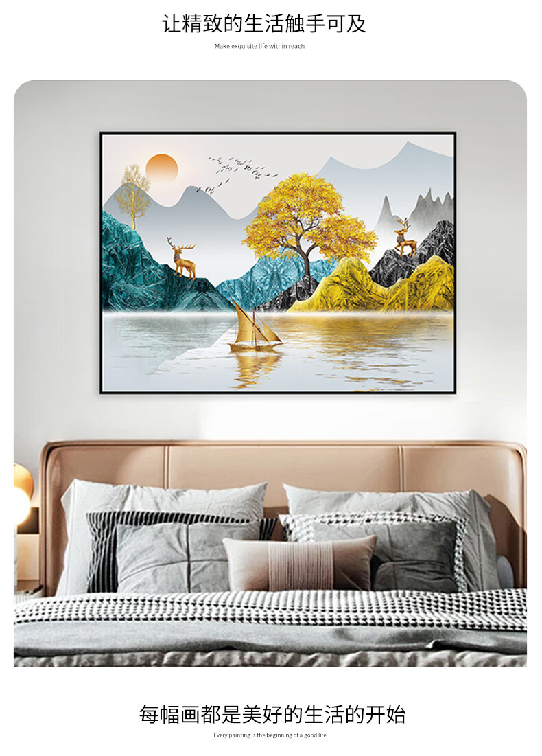 Dincmei Dingchuangmei Bedroom Decoration Painting Self-adhesive Modern Simple Bedside Background Wall Sticker Covering Ugliness Living Room Dormitory Poster Wallpaper 08. Fresh Forest Width 45cm-Height 30cm Self-adhesive stickers with adhesive on the back