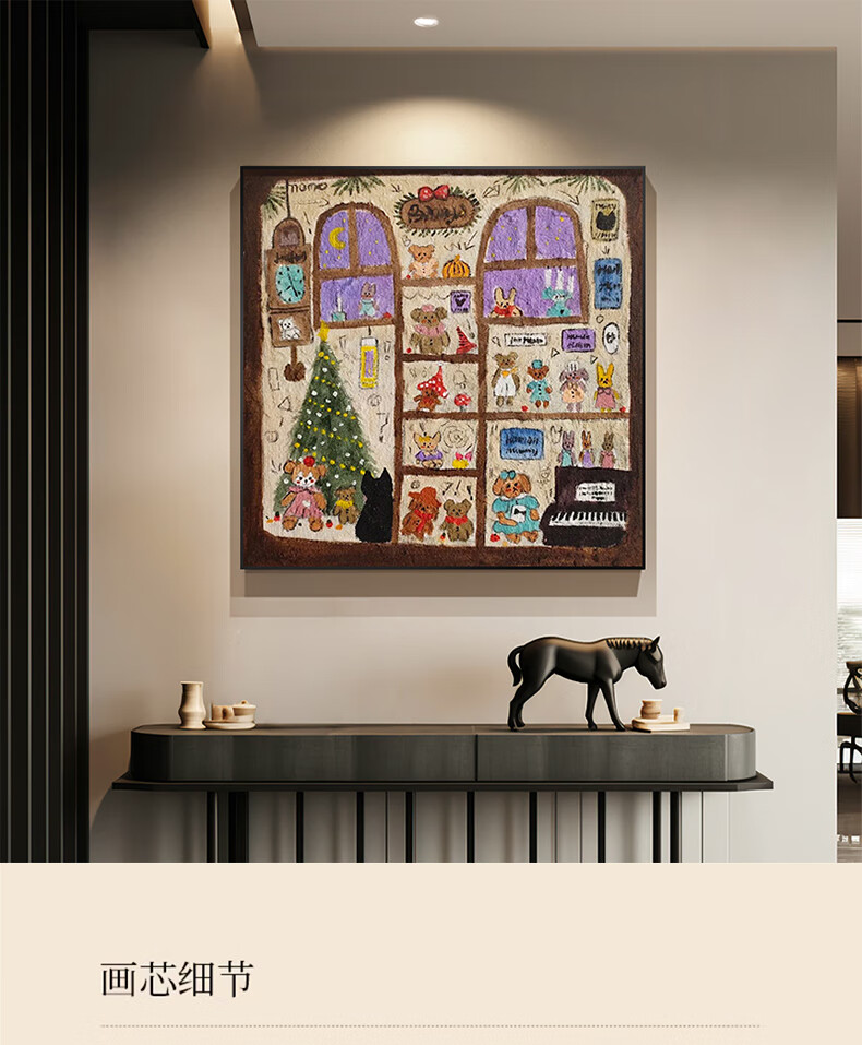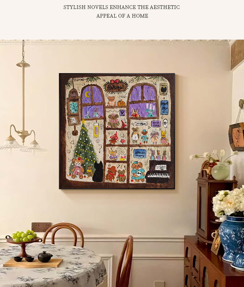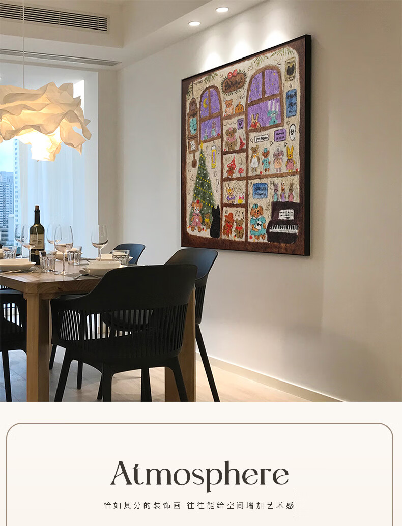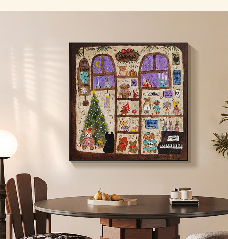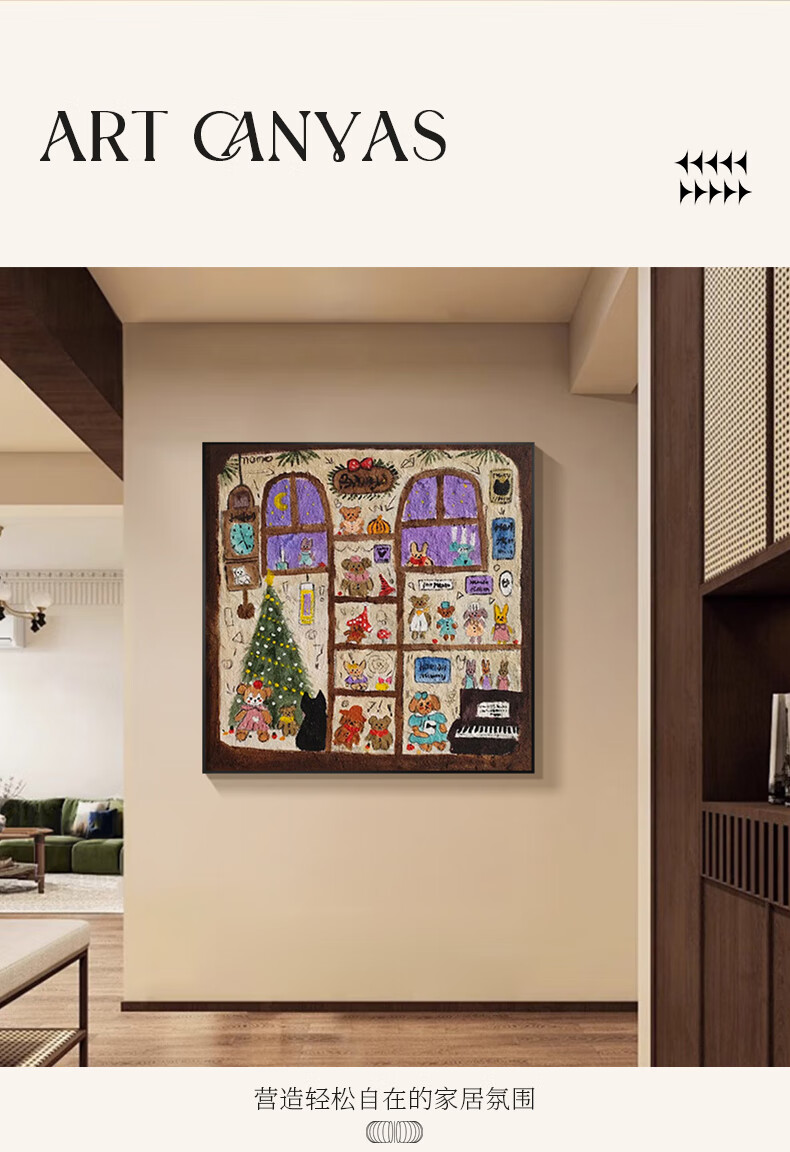 Rock Doll Shop Healing Porch Bedroom Decorative Painting Niche Cute Cat Cartoon Abstract Living Room Dining Hanging Painting High Definition Giclee Decorative Painting (Cotton and Linen Canvas) 50*50CM High Modern Black (Titanium Aluminum Metal Brushed Frame)