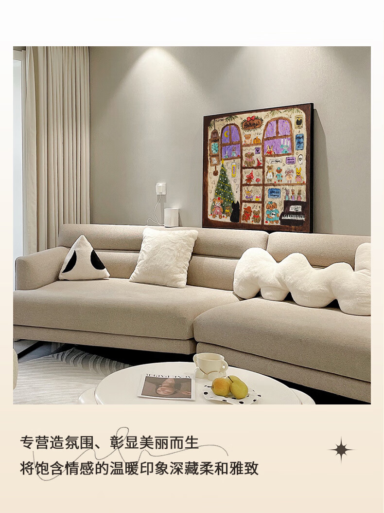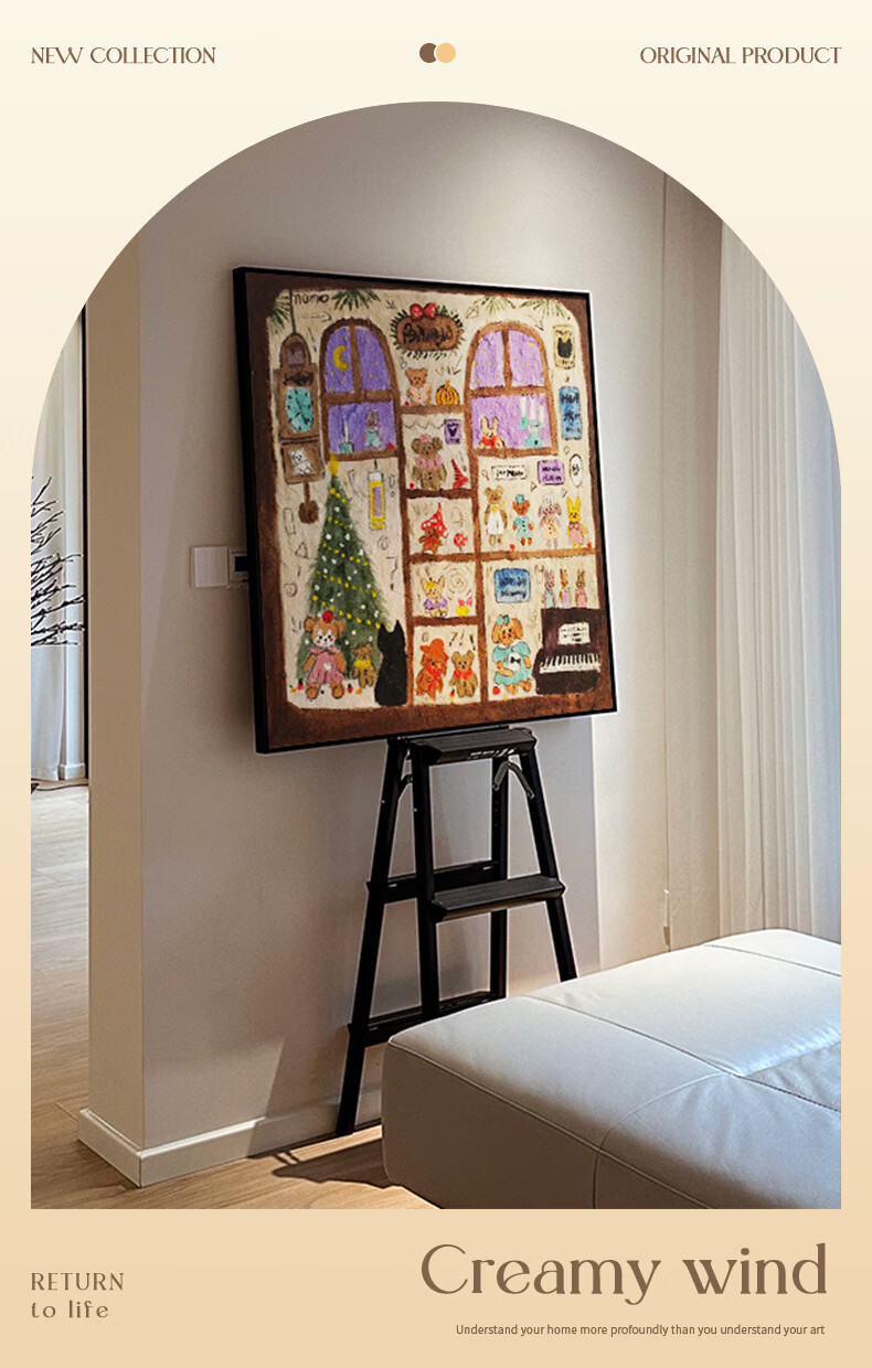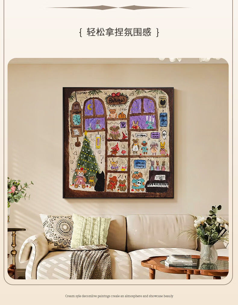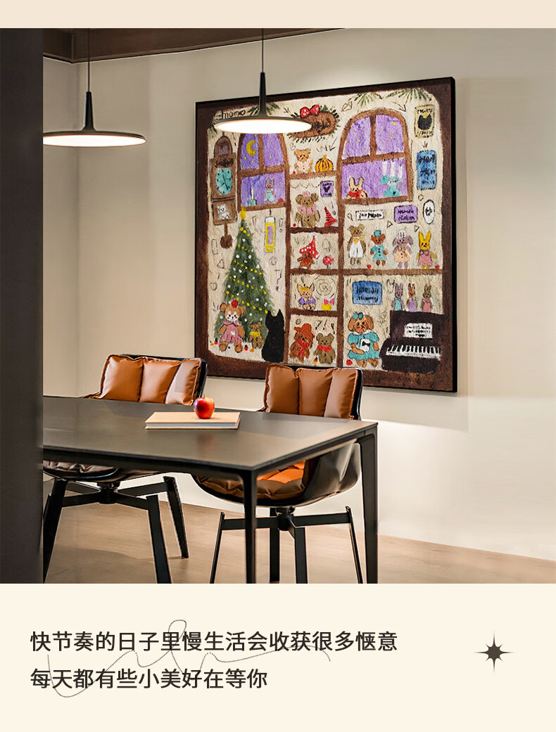 Rock Doll Shop Healing Porch Bedroom Decorative Painting Niche Cute Cat Cartoon Abstract Living Room Dining Hanging Painting High Definition Giclee Decorative Painting (Cotton and Linen Canvas) 50*50CM High Modern Black (Titanium Aluminum Metal Brushed Frame)