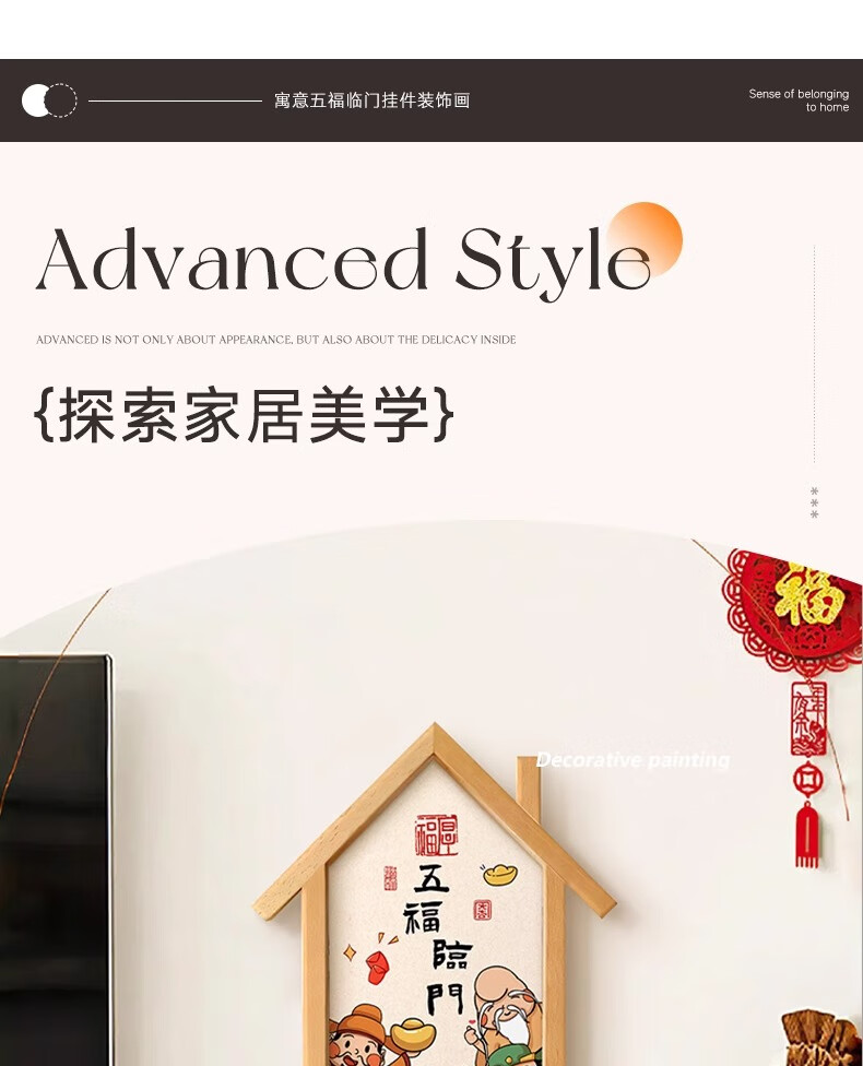 Zhang Xiaohua's shop Five Blessings Decorative Painting Living Room God of Wealth Pendant TV Wall Background Mural New Year's Festive Entrance Door Entrance Type A Bell Five Blessings 28*40cm PS Log Color Frame