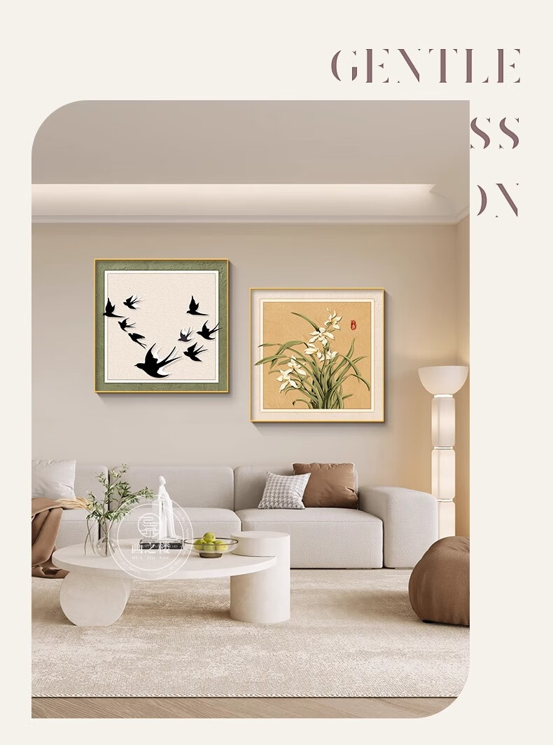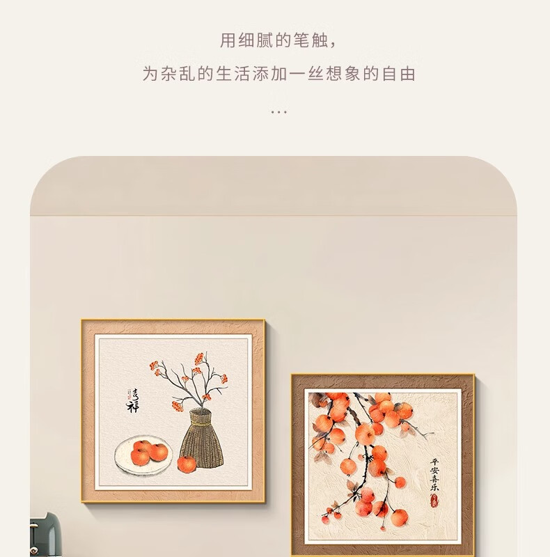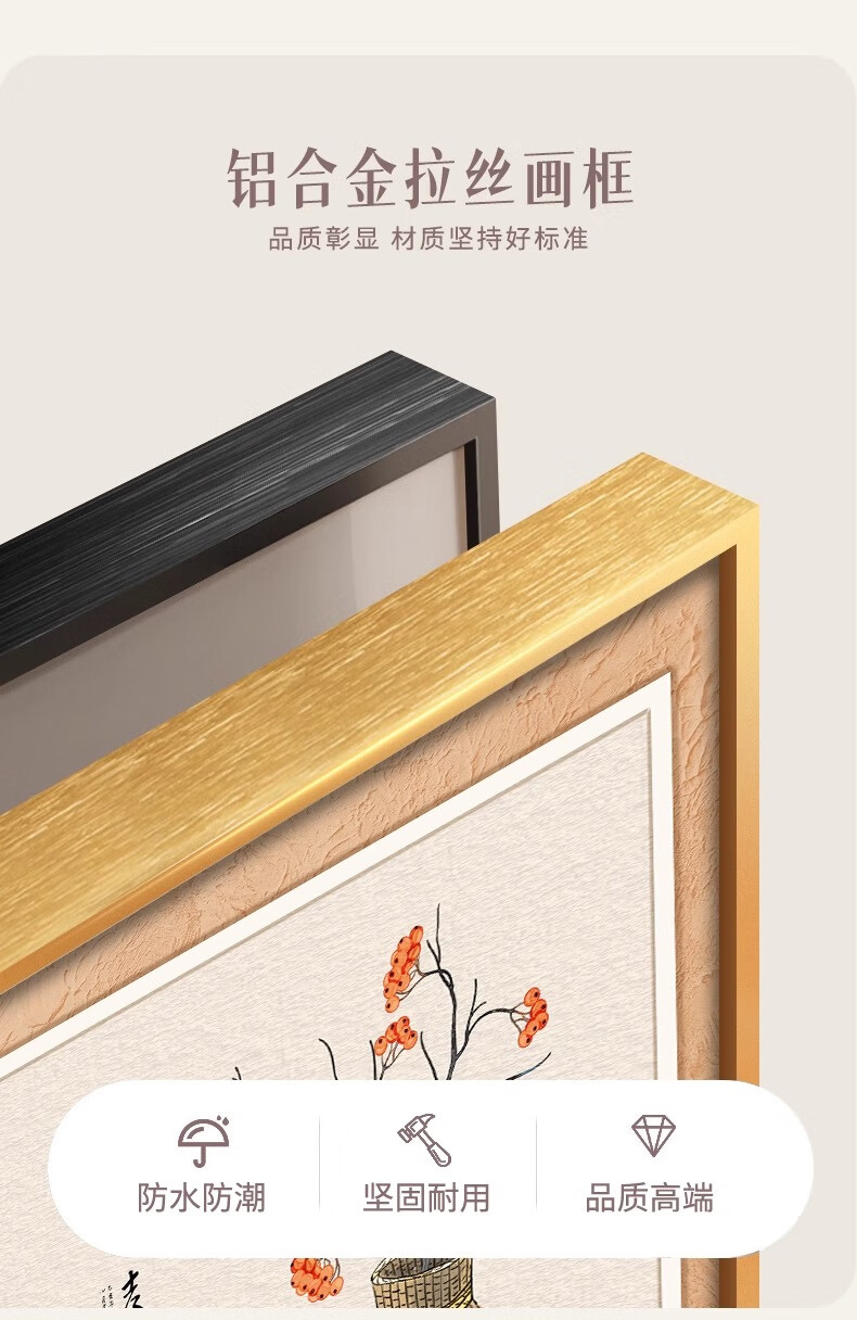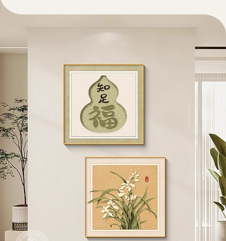 Ji Ledu Shishi Ruyi new Chinese restaurant decoration painting living room 2025 new simple light luxury high-end hanging painting mural Shishi Ruyi-B 30*30cm aluminum alloy frame gold-canvas