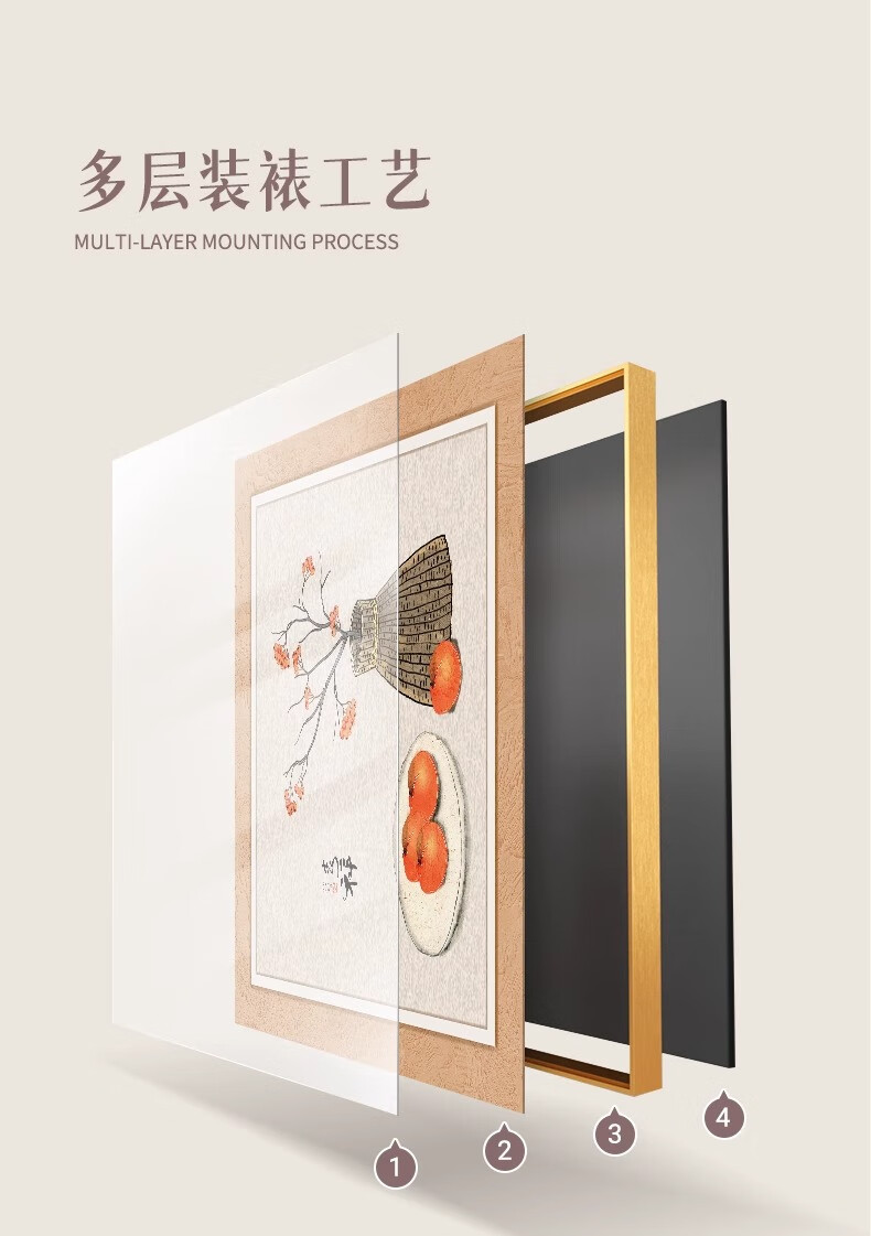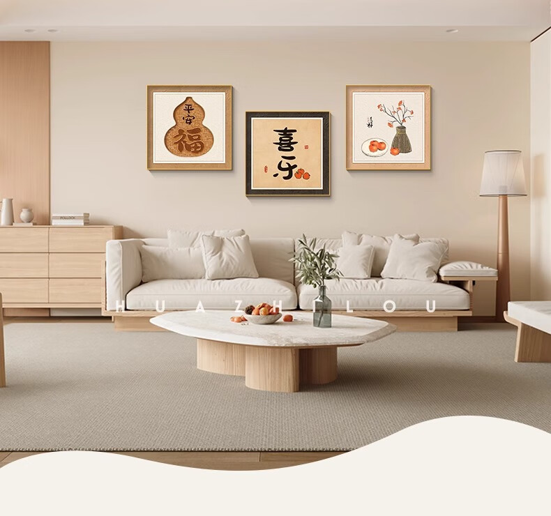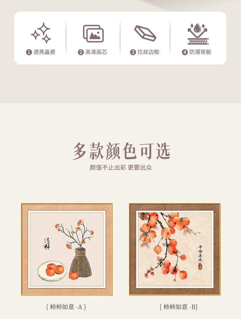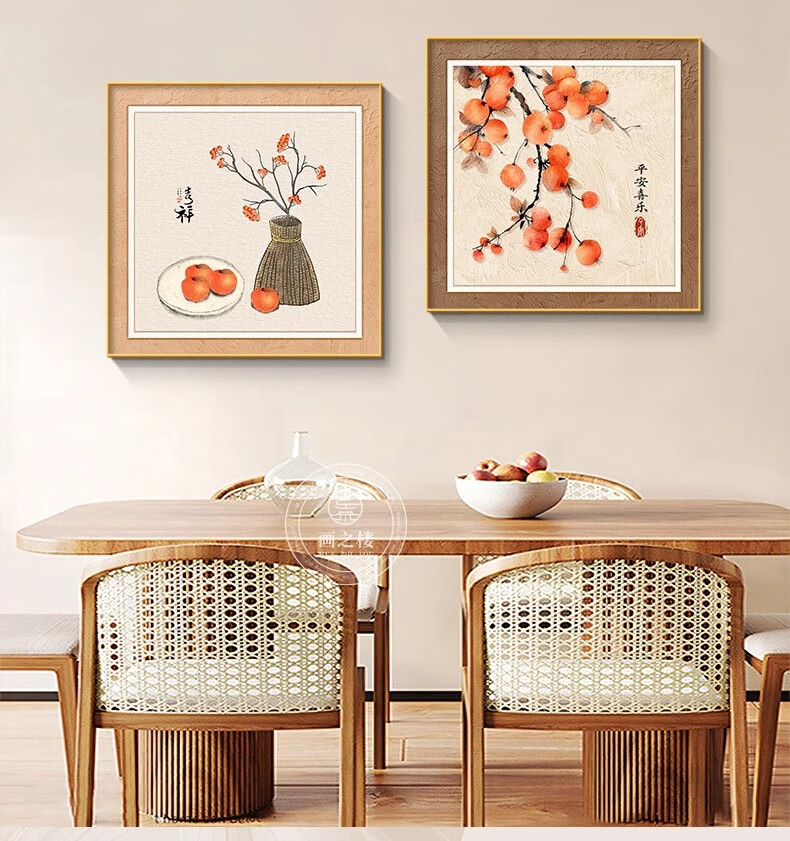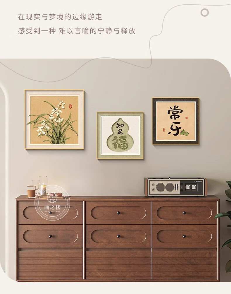 Ji Ledu Shishi Ruyi new Chinese restaurant decoration painting living room 2025 new simple light luxury high-end hanging painting mural Shishi Ruyi-B 30*30cm aluminum alloy frame gold-canvas