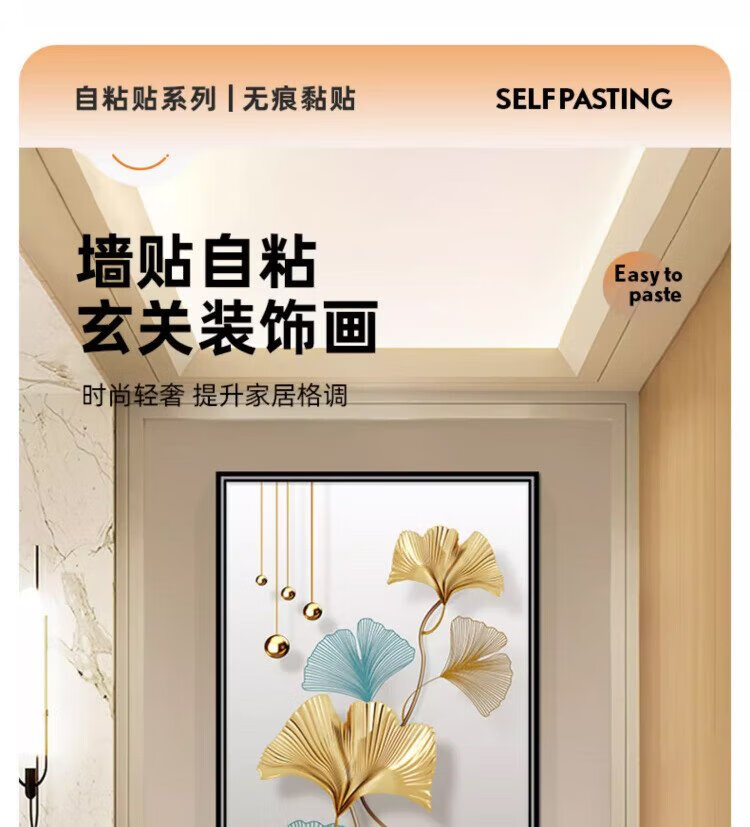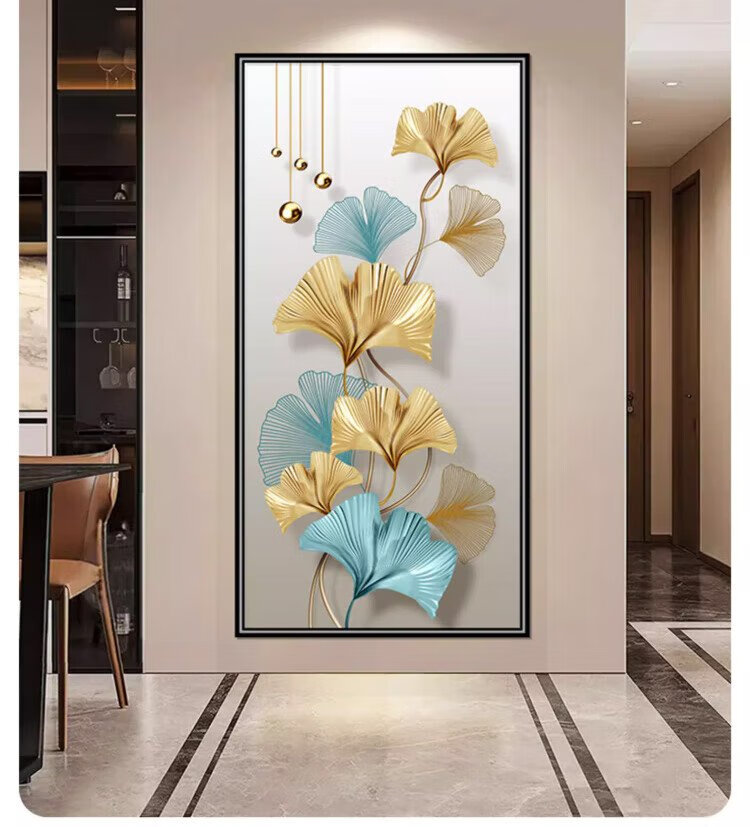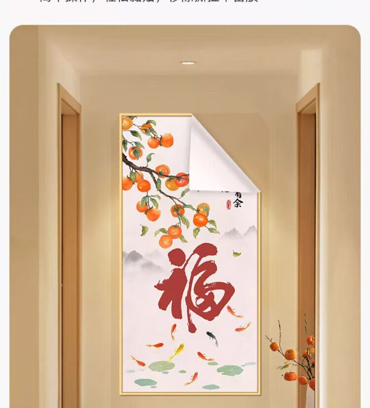 New Chinese style entrance decorative painting 3D three-dimensional stickers self-adhesive wallpaper living room background wall entrance corridor aisle wall stickers nine fish straight up width 60cm-height 120cm