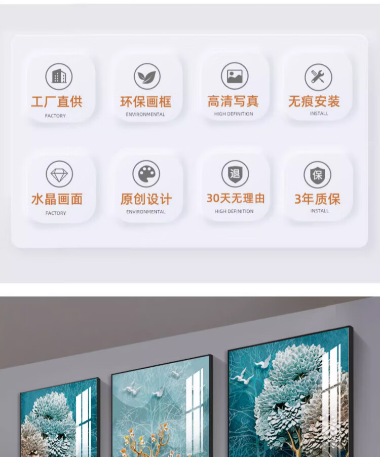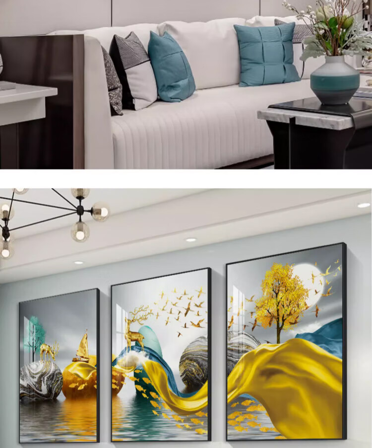 New living room decorative painting, high-end sofa background wall hanging painting, light luxury atmosphere mural, restaurant bedroom painting, peace and joy 30*40 triple high-definition dust-proof picture