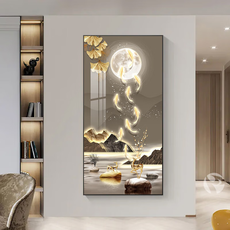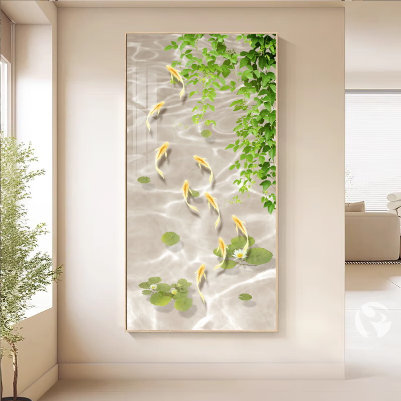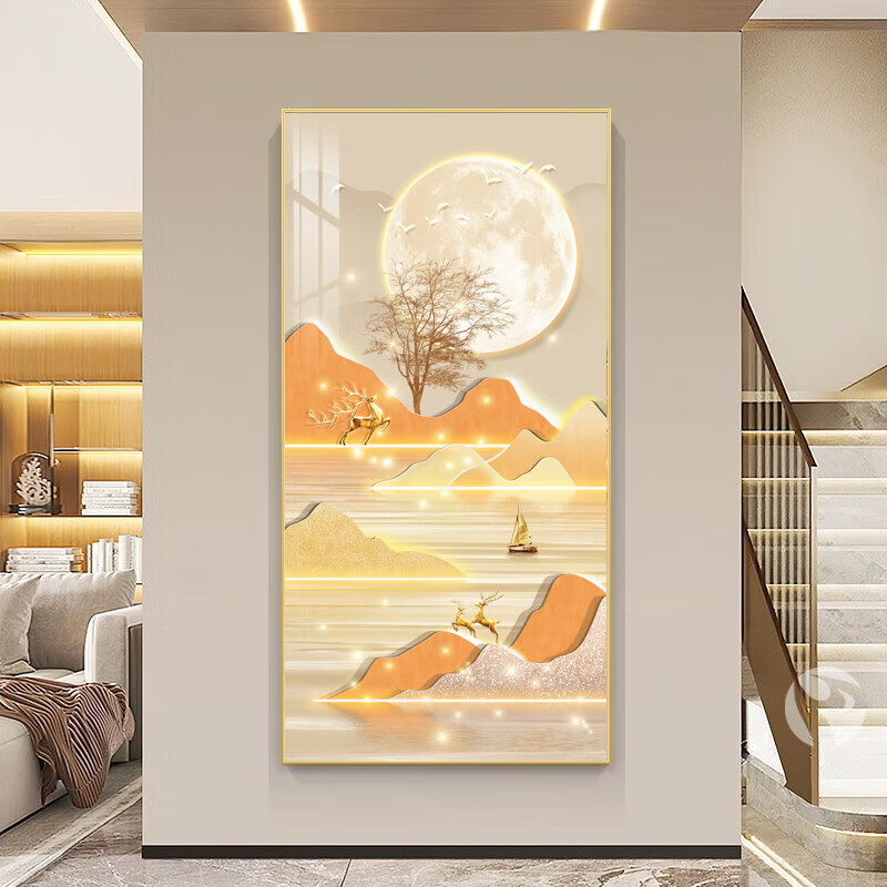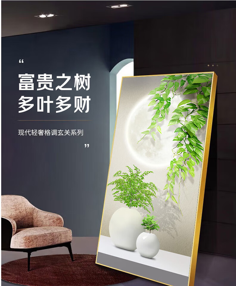 JD Logistics Entrance Decoration Painting Fu Character Background Wall Hanging Painting New Chinese Style Living Room Entrance Mural Hong Fu Qitian (Aluminum Alloy Frame) 70*140-Crystal Porcelain Film Black Frame