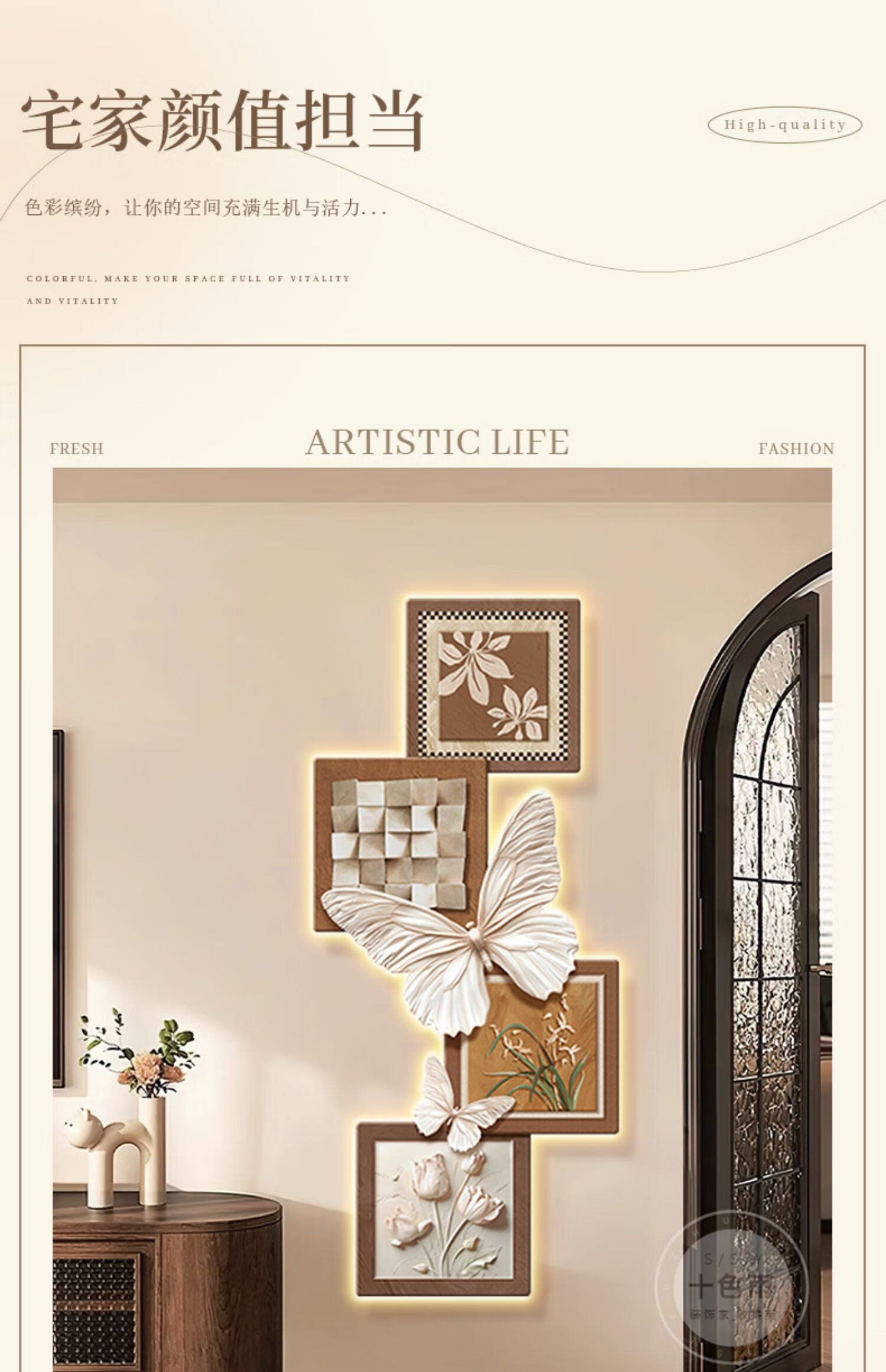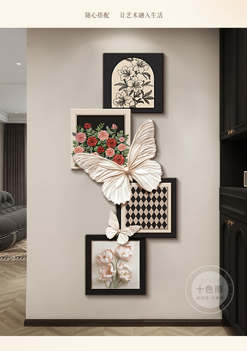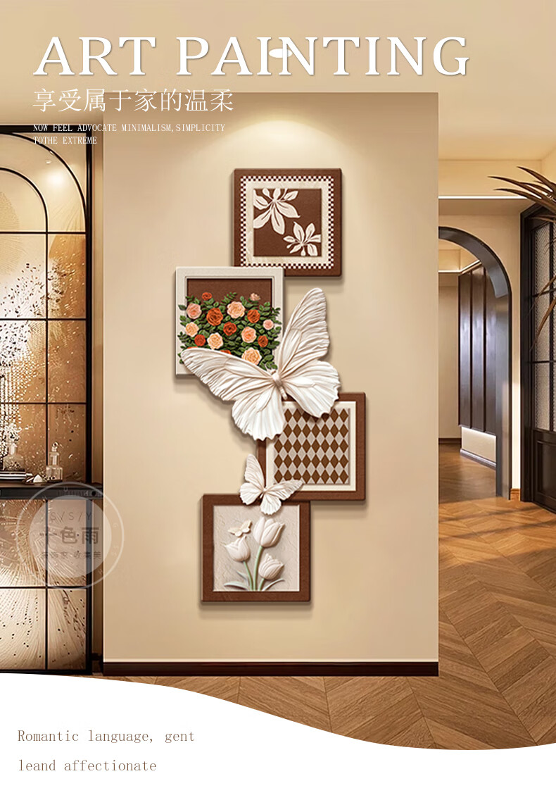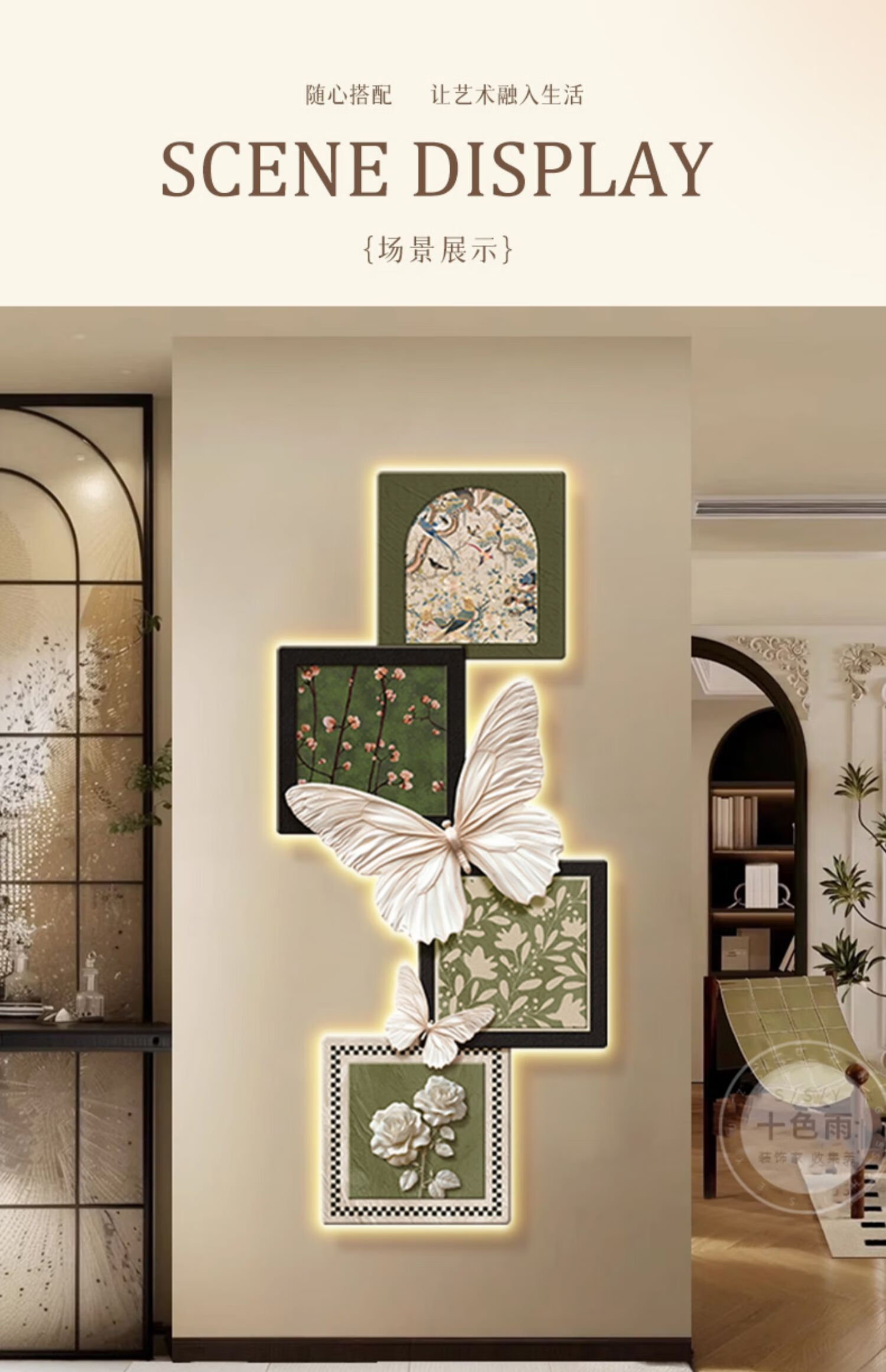 Entrance wall decoration painting French medieval style living room hanging painting rose butterfly wall lamp retro corridor aisle mural butterfly dance bloom 35*80 cm regular hanging painting/no light style