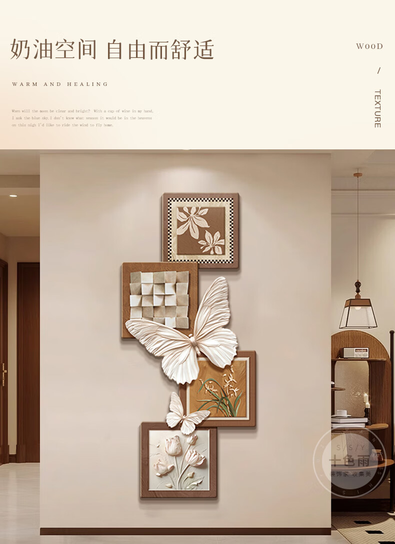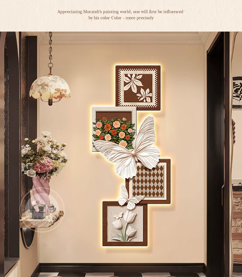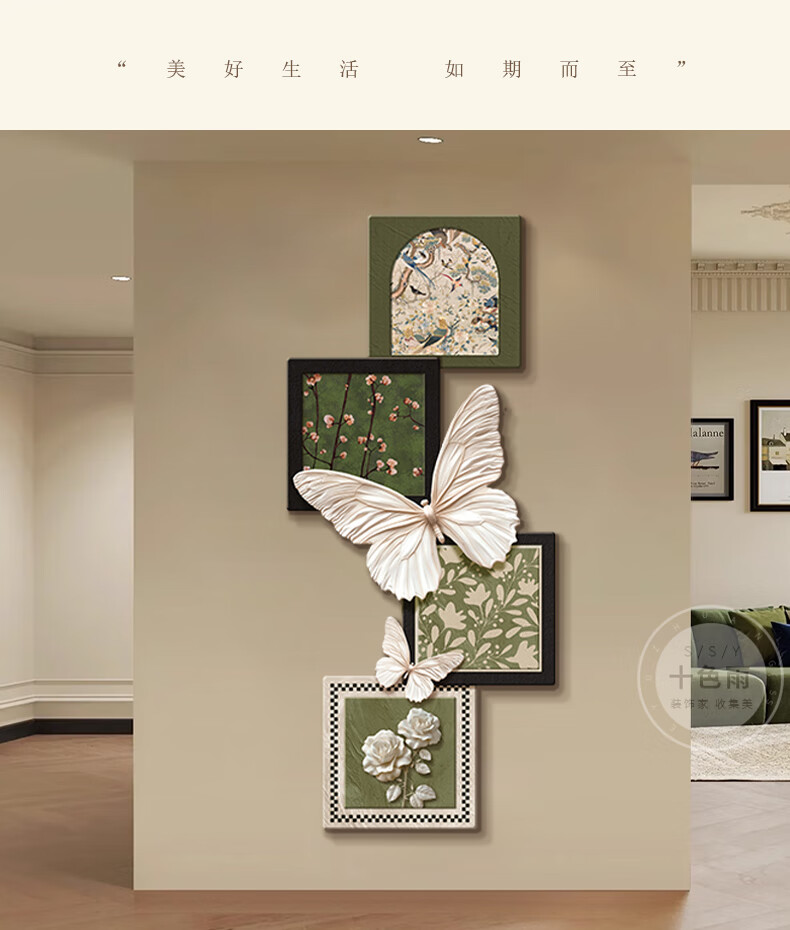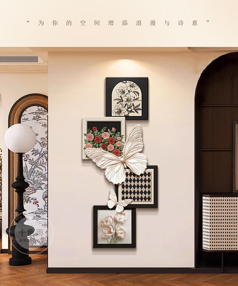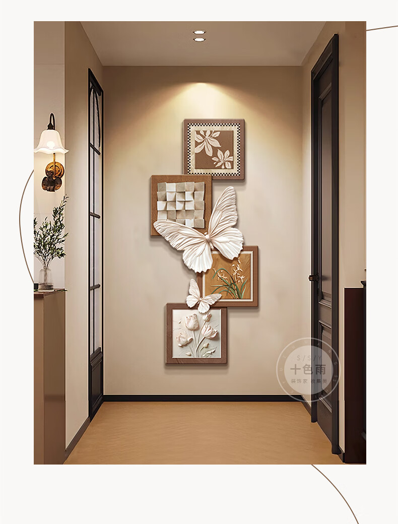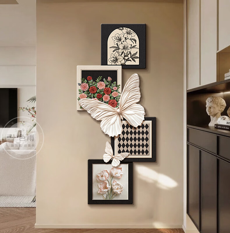 Entrance wall decoration painting French medieval style living room hanging painting rose butterfly wall lamp retro corridor aisle mural butterfly dance bloom 35*80 cm regular hanging painting/no light style