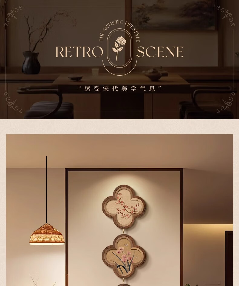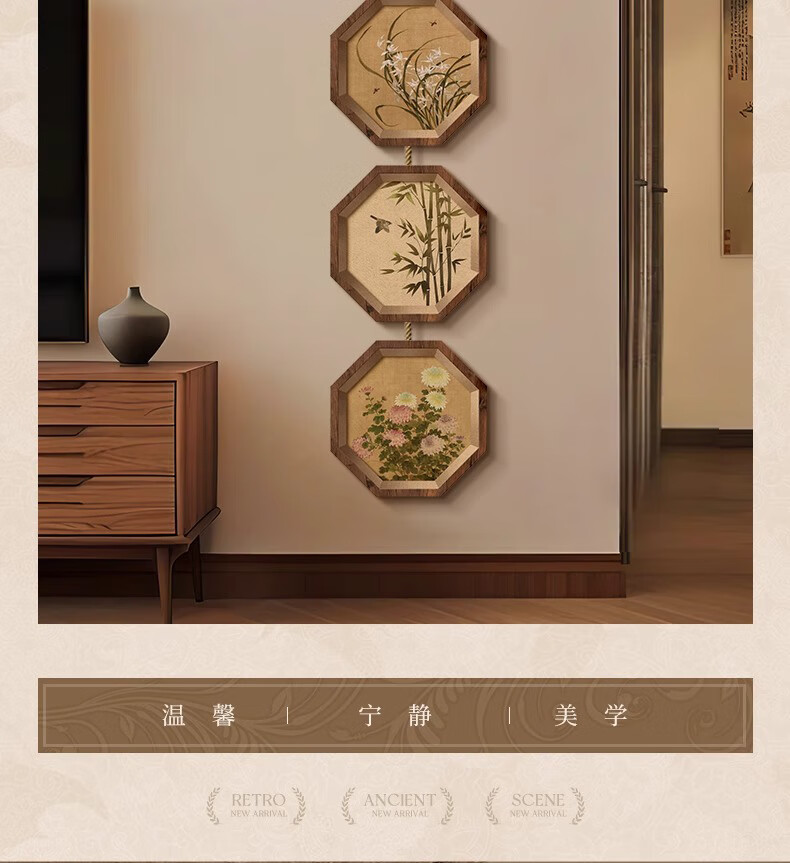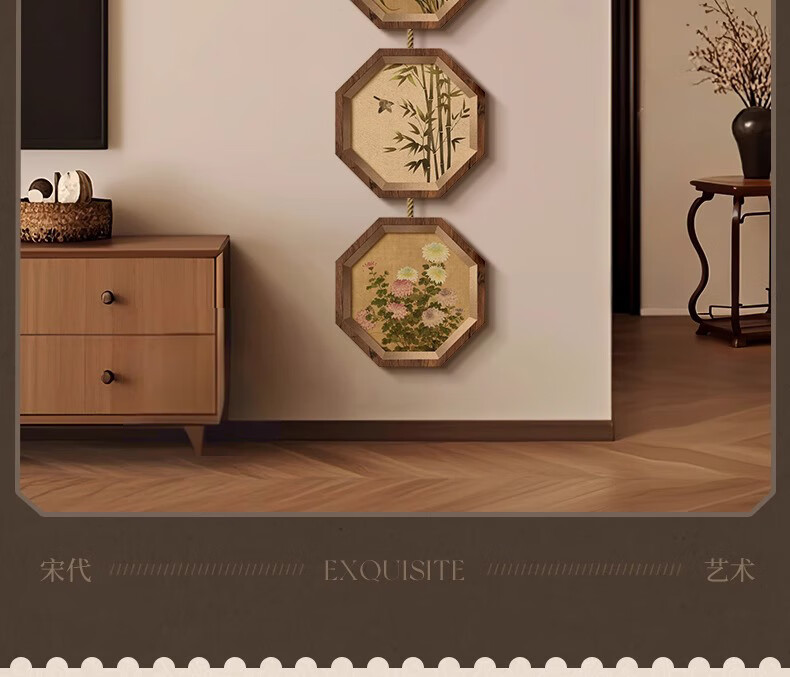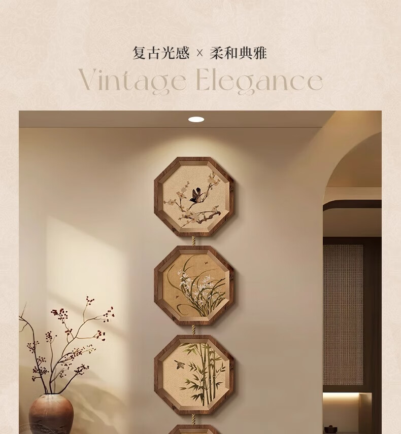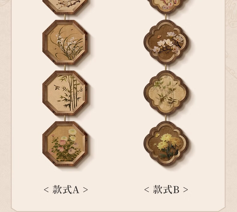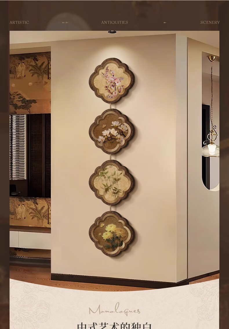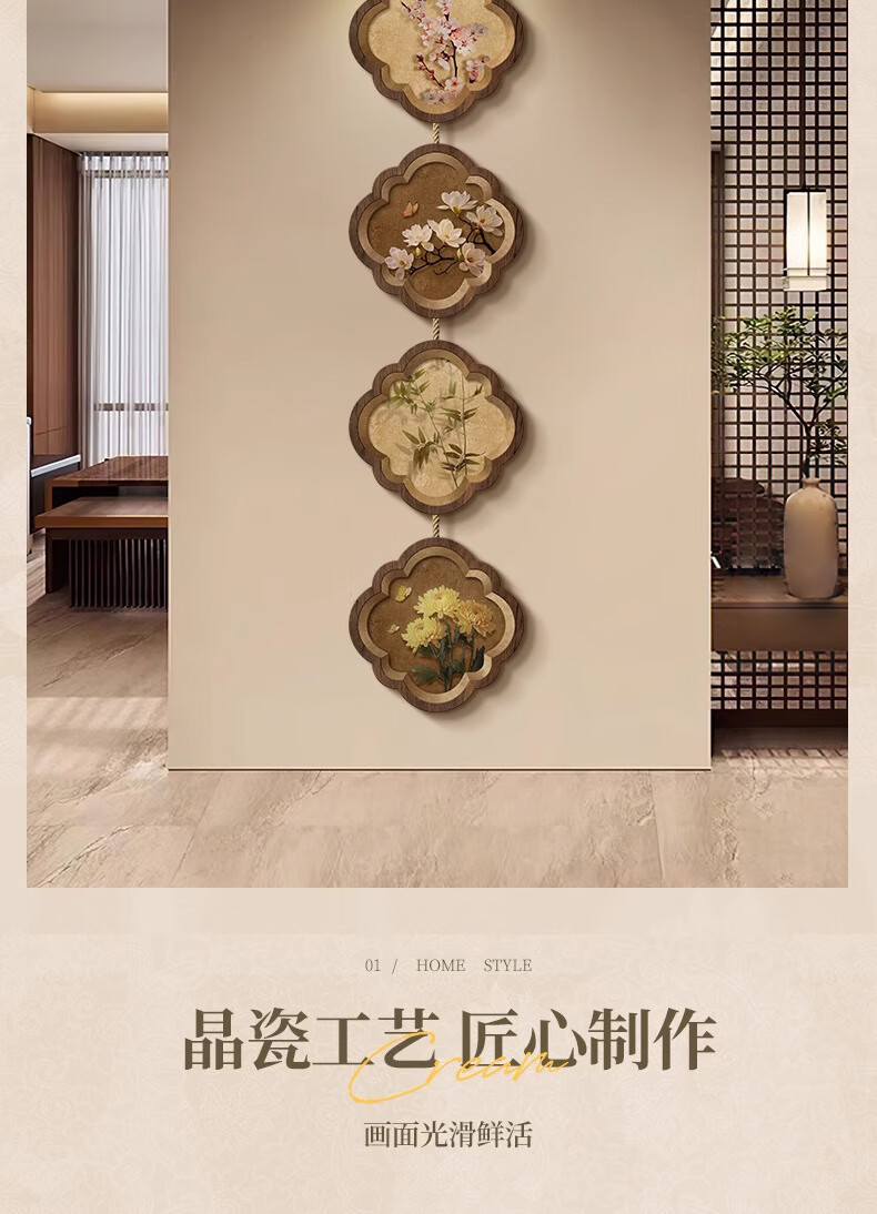 Yujianer Song Dynasty Aesthetic TV Background Wall Painting High-end Porch Decorative Painting Living Room Entrance Door Combination Mural A-Plum, Orchid, Bamboo and Chrysanthemum 30*30/30*30/30*30/30*30cm Creative Art (UV Carving + Crystal Porcelain Craft + Hemp Rope)