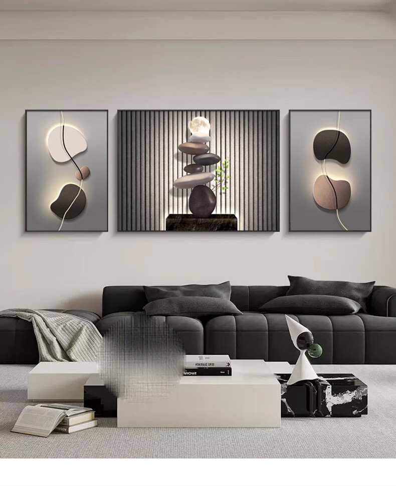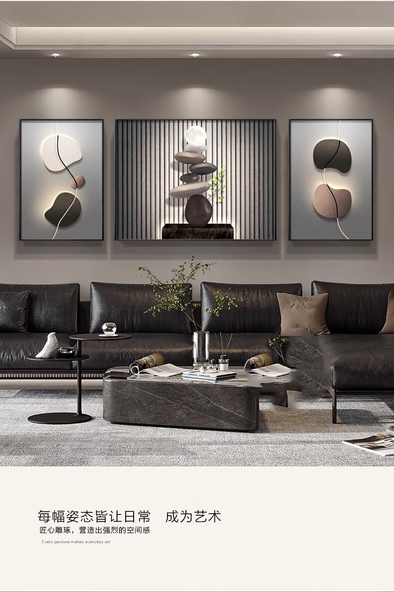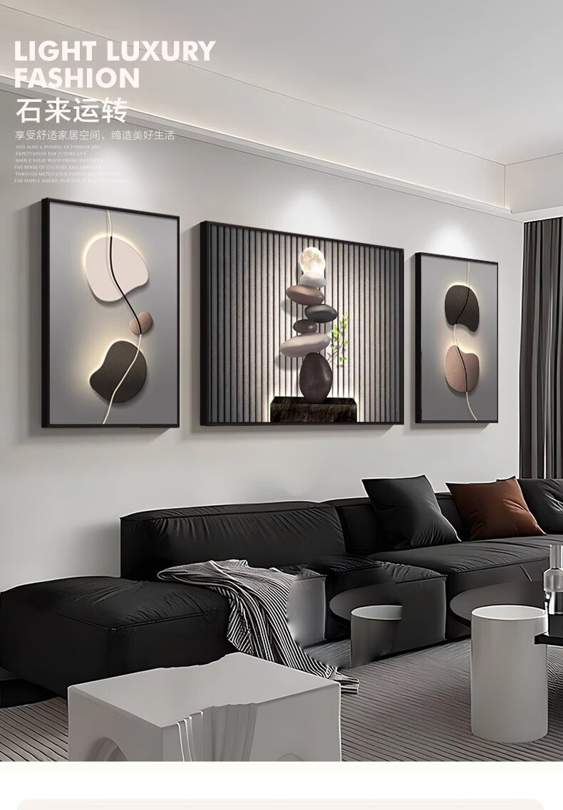 Modern light luxury living room decorative painting Shilairun sofa background wall hanging painting high-end black and gray abstract mural T130573 Shilairun 30*40/60*40/30*40 triple textured surface + PS environmentally friendly black frame