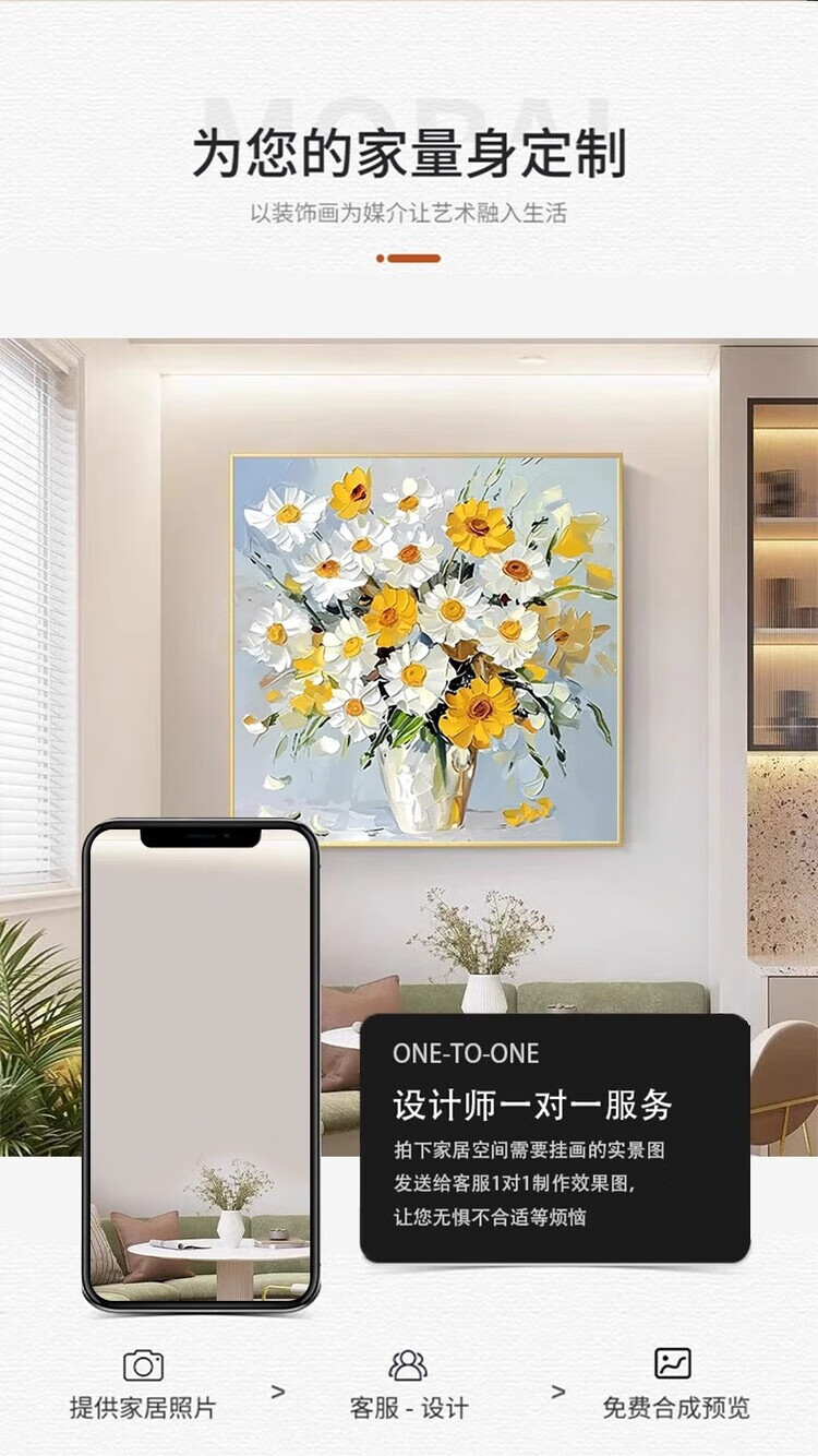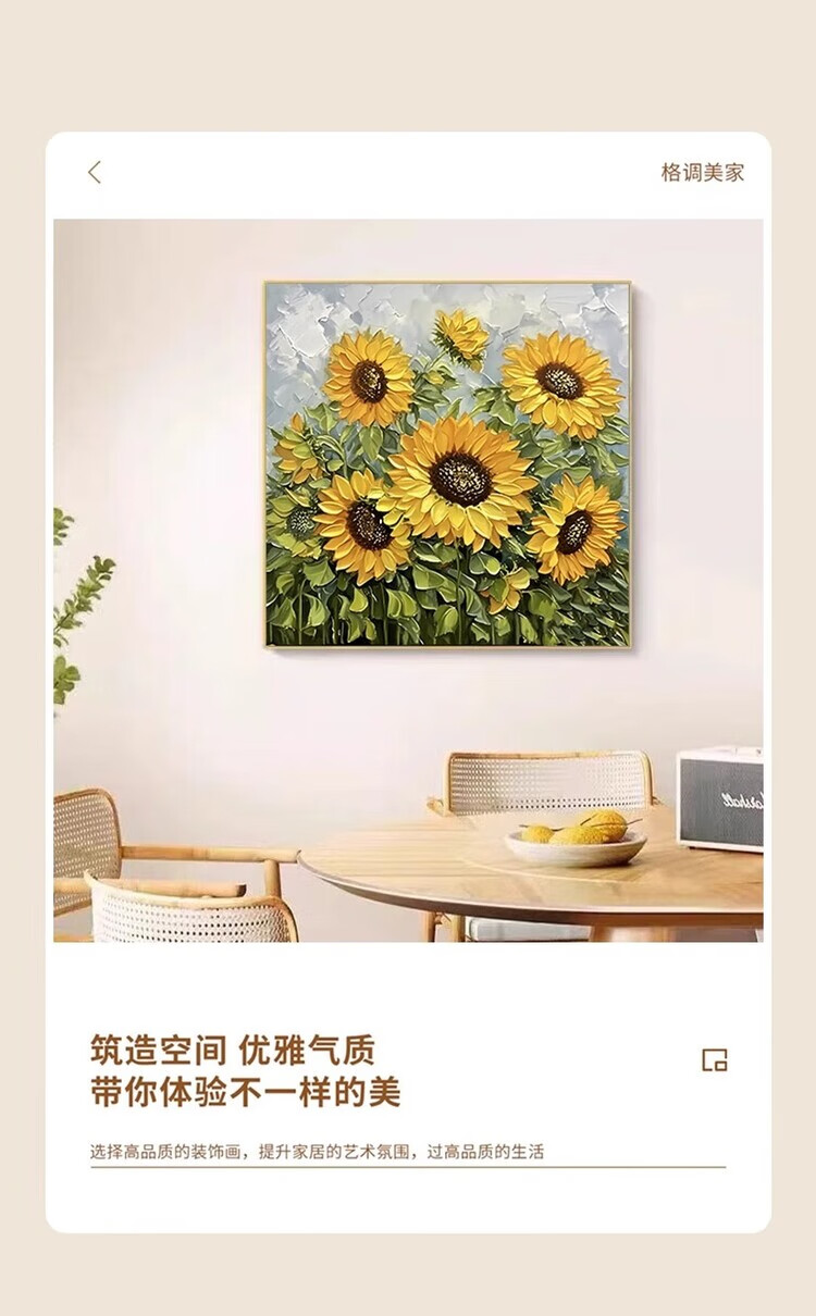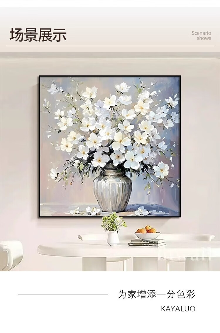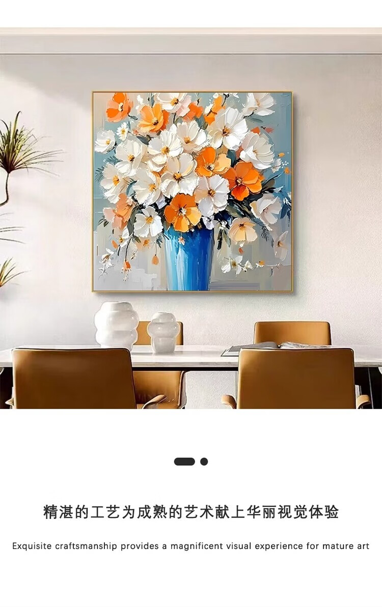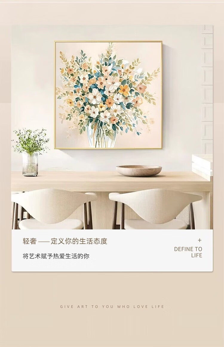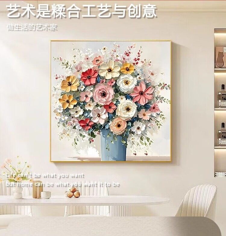 JD Logistics Blossoms Oil Painting Style Plant Flowers Restaurant Decorative Painting Sofa Background Wall Hanging Painting A 60*60 Textile Film Aluminum Alloy Gold Frame