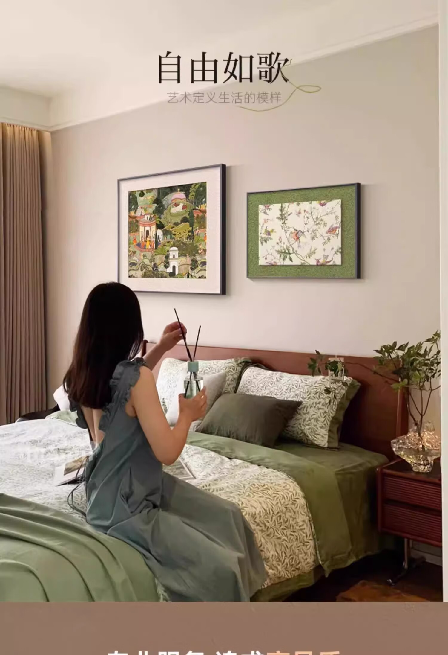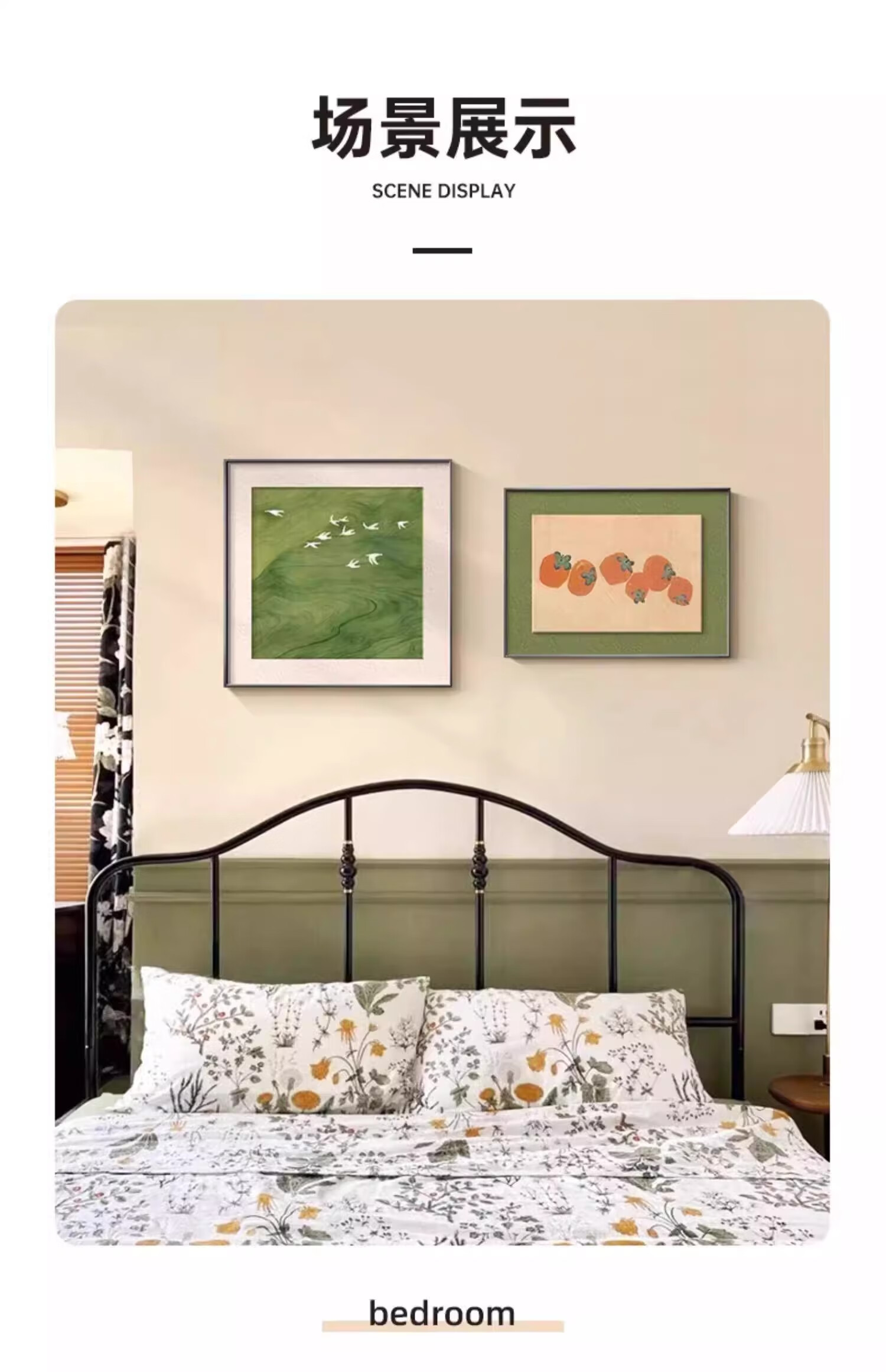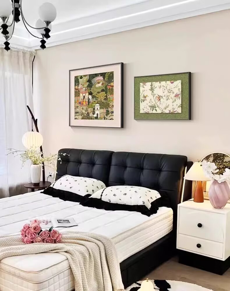 Mo Xiaoxie's mid-century style bedroom bedside decoration painting 2025 new master bedroom room hanging painting high-end retro restaurant wall painting A_Free Cantabile 40*40cm+40*30cm classic black frame aluminum alloy frame detailed texture painting (matte)