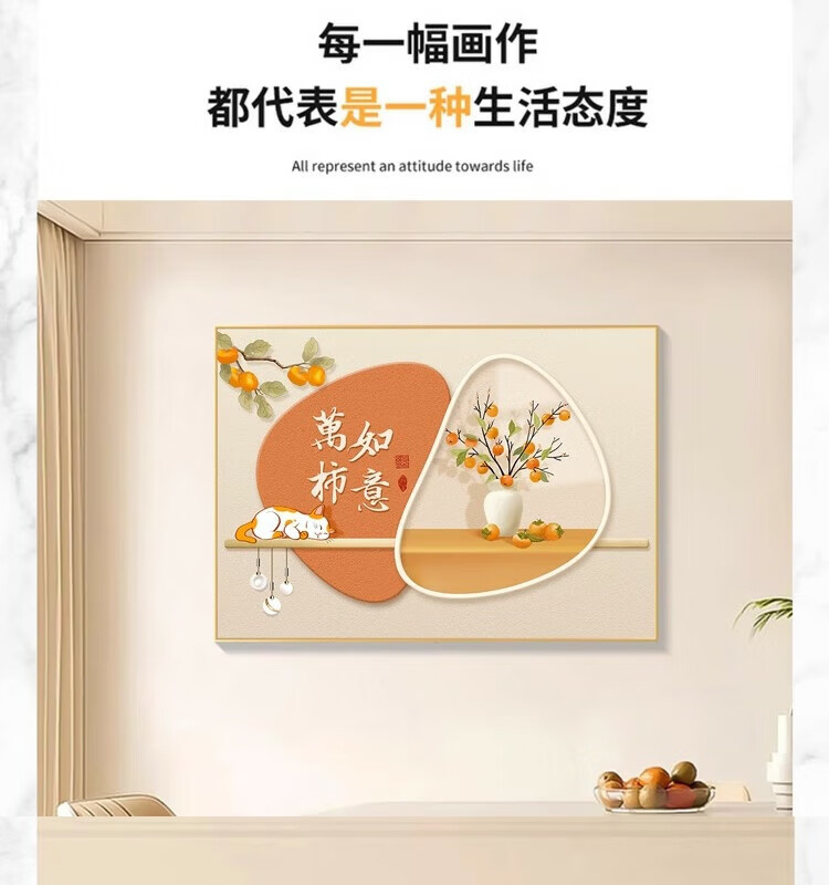 Shishi Ruyi living room bedroom decoration painting cream style sofa background wall self-adhesive painting entrance meter box mural Shishi Ruyi width 45cm-height 30cm