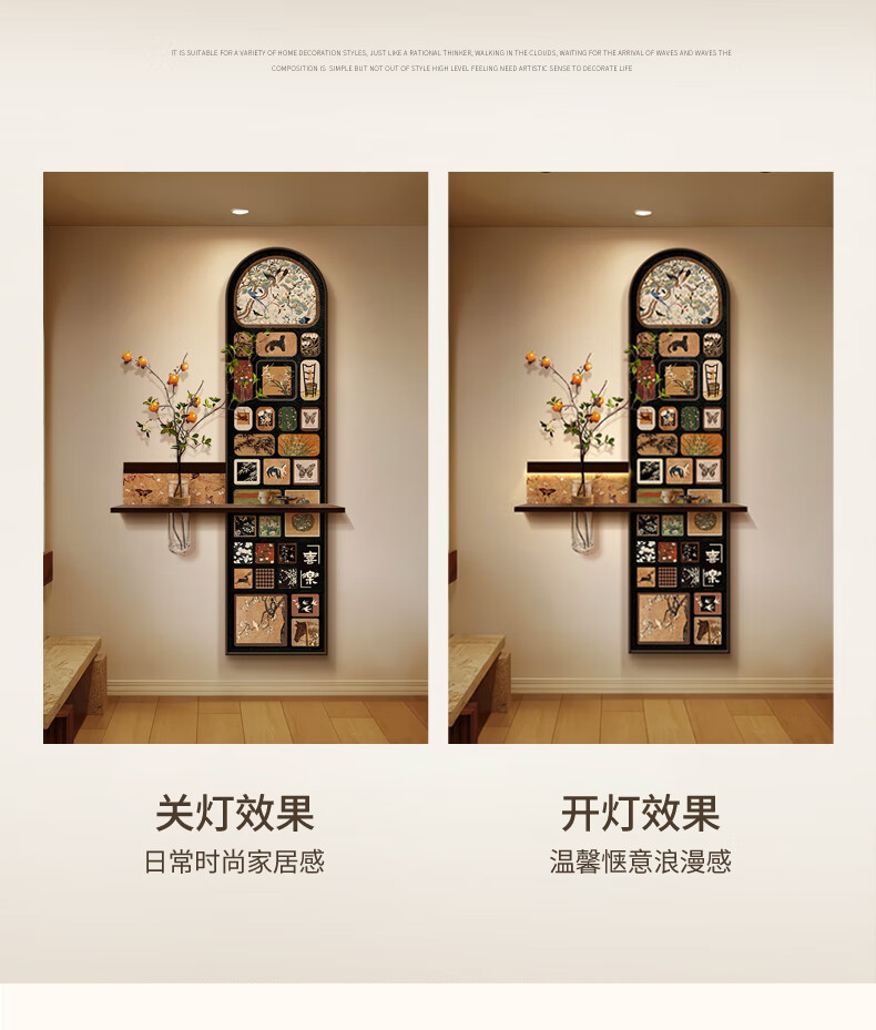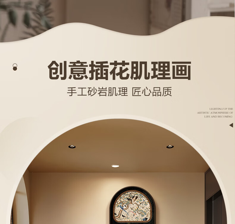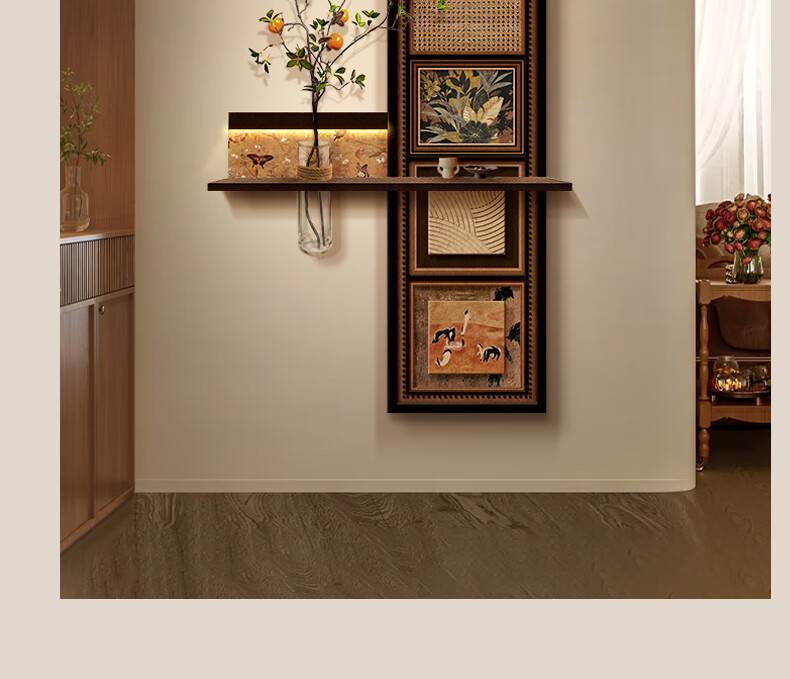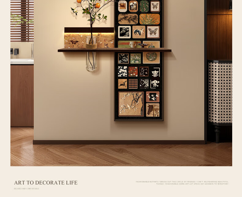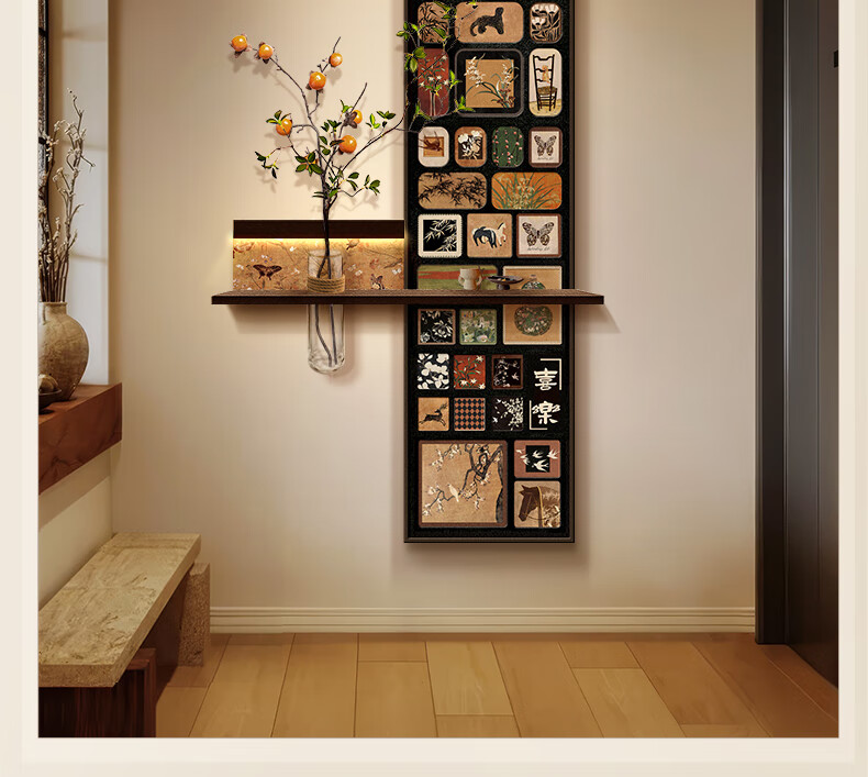 Yujian Erzhong ancient style entrance hall decorative painting hydroponic green plants corridor aisle hanging painting 2025 new entrance door facing mural lamp A style + FZH04 + FZH23 - ancient spelling elegance 40*80cm - vase 20 frameless double layer three-dimensional texture sandstone painting ordinary style (without lights)