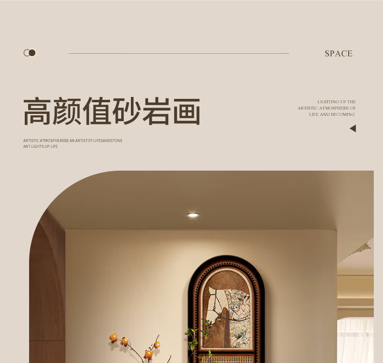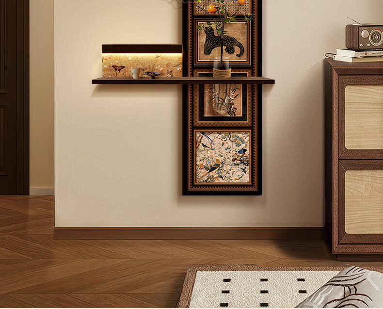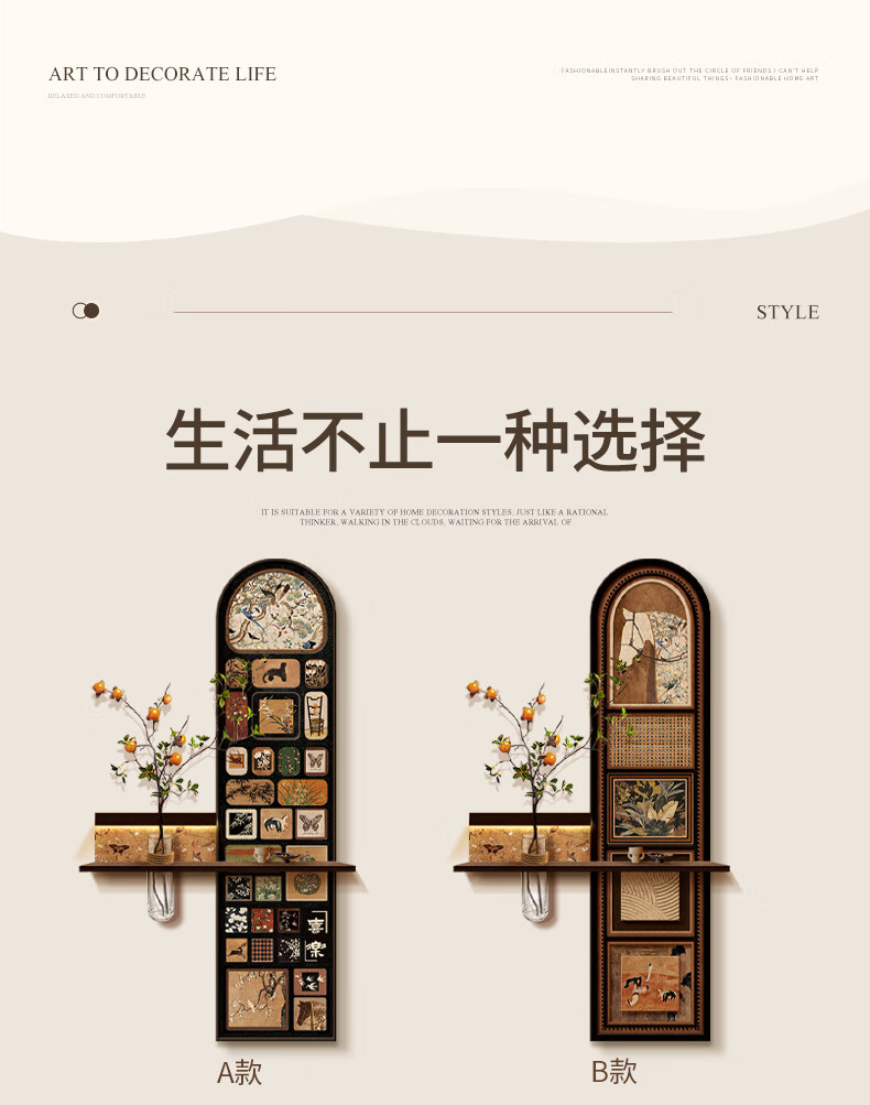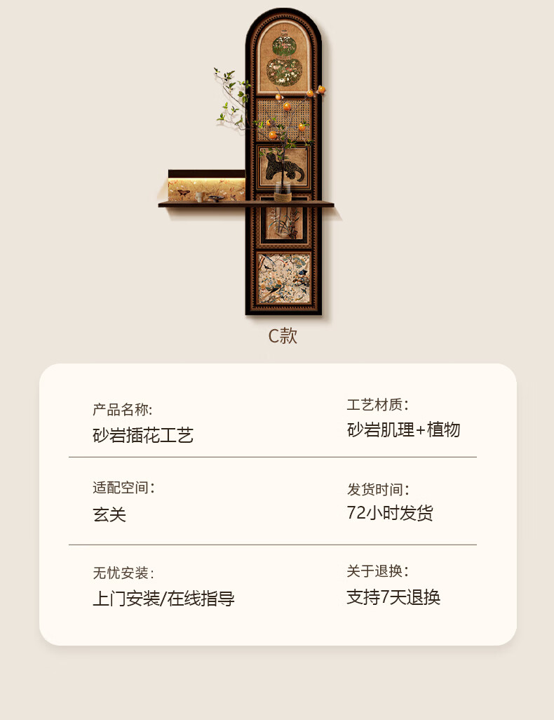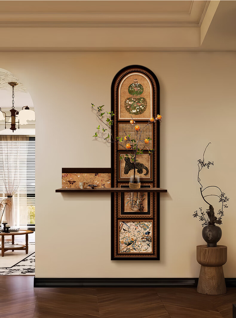 Yujian Erzhong ancient style entrance hall decorative painting hydroponic green plants corridor aisle hanging painting 2025 new entrance door facing mural lamp A style + FZH04 + FZH23 - ancient spelling elegance 40*80cm - vase 20 frameless double layer three-dimensional texture sandstone painting ordinary style (without lights)
