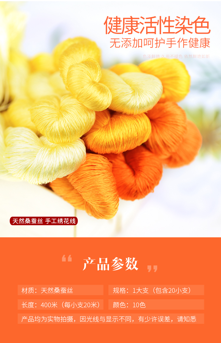 Other embroidery craftsmen No. 08 Su embroidery thread commonly used embroidery thread entangled mulberry silk thread silk hand embroidery embroidery thread yellow embroidery thread 10 colors each 1 small