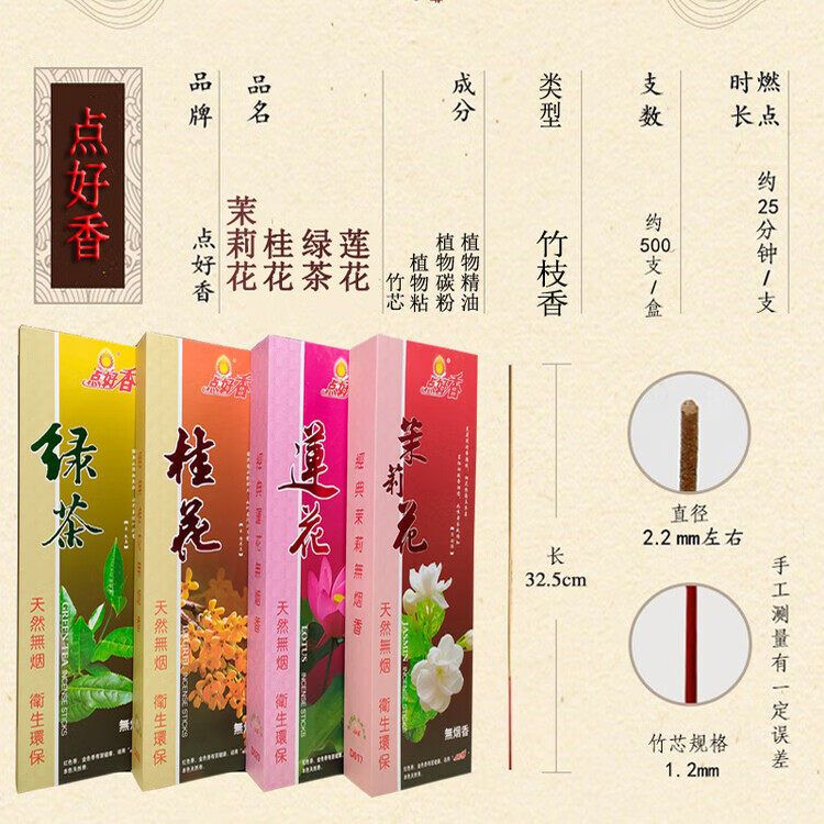 Light up the incense, natural sandalwood for Buddha fragrance, smoke-free fragrance, green tea, lotus, jasmine and osmanthus fragrance, home worship incense, osmanthus fragrance 32 cm