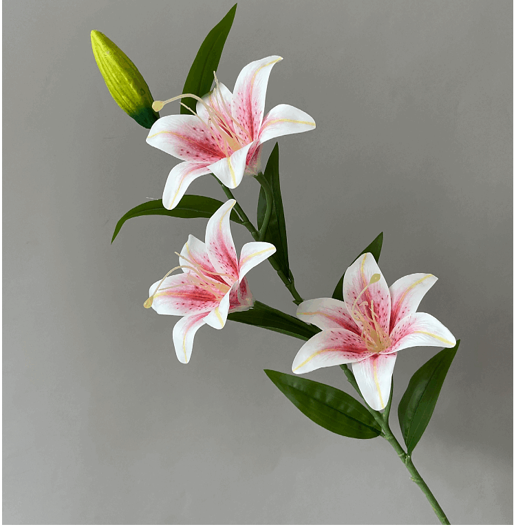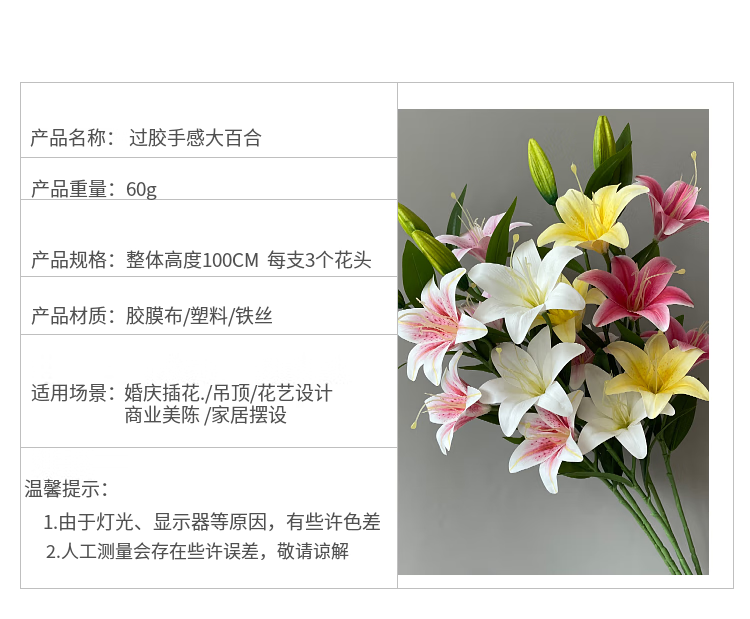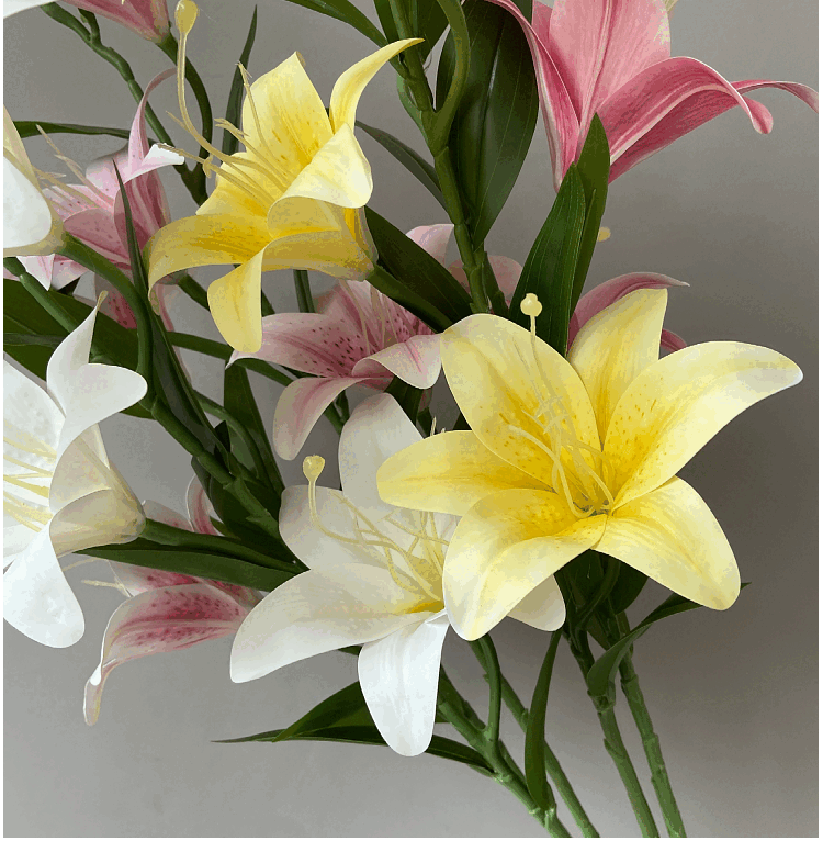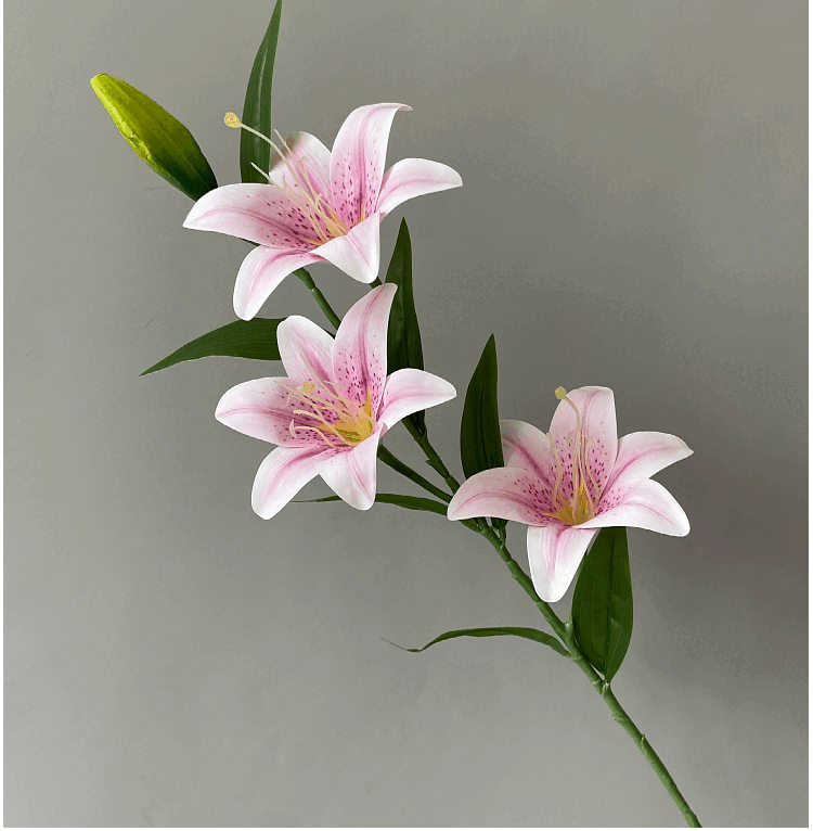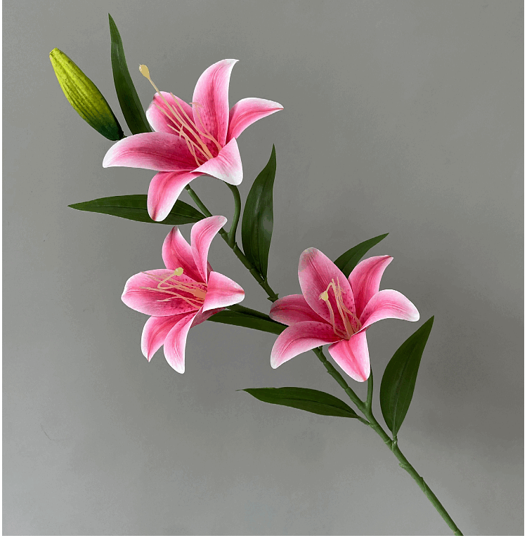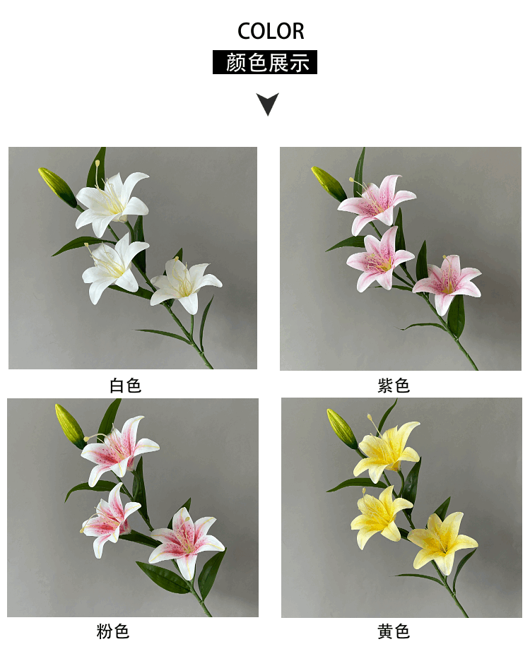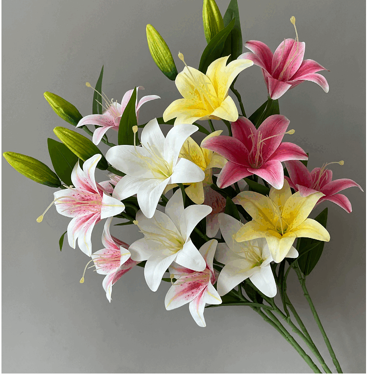 Runlei artificial flower lily artificial flower living room plastic bouquet floor decoration silk flower wedding flower arrangement interior decoration decoration plastic touch large lily-purple